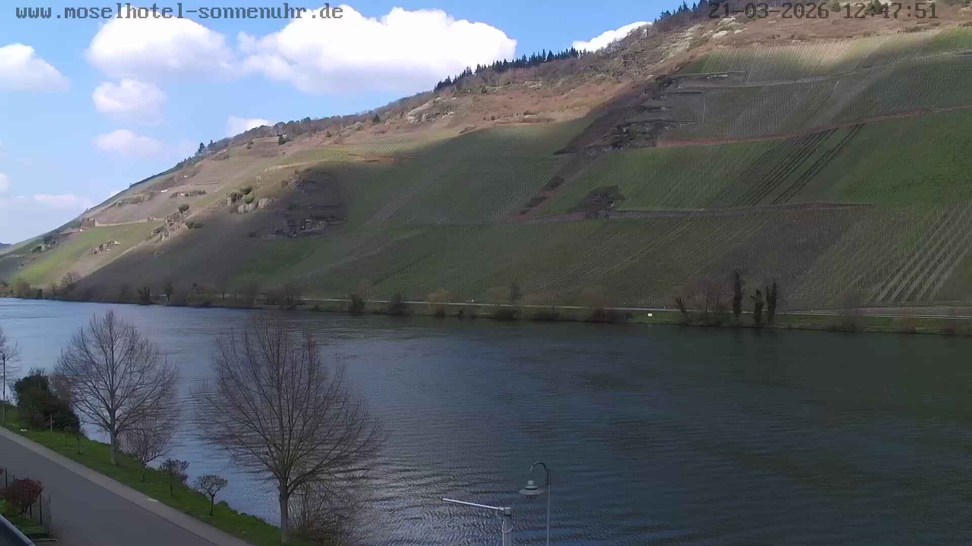 Bernkastel-Wehlen, Deutschland - 55.7 km von Altrier: Mosel Cam - Die HD Live Webcam befindet am Moselhotel Sonnenuhr in Bernkastel-Wehlen direkt am Moselufer. Zu erkennen sind die Weinberge, der Mosel Radweg, der Klettersteig an der Wehlener Sonnenuhr sowie die Staustufe bei Zeltingen-Rachtig. Der Panoramaschwenk führt vom Weinort Zeltingen entlang der Mosel hin zur Wehlener Brücke, danach führt Sie zurück über die weltbekannte Weinlage 'Wehlener Sonnenuhr'.