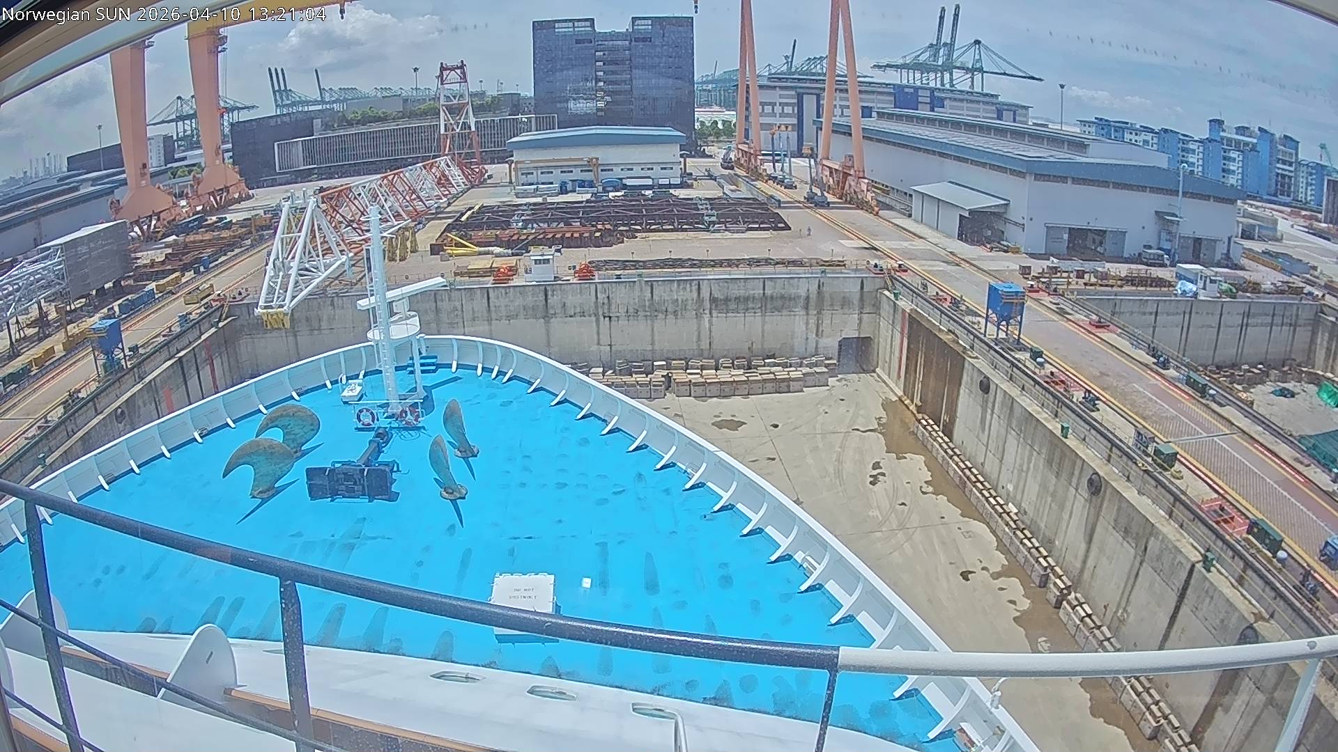 Norwegian Sun, Norwegian Cruise Line - 288.6 km von Permatang Pasir: Live auf See - Werfen Sie einen Blick von der Brücke des Kreuzfahrtschiffes Norwegian Sun auf die See.