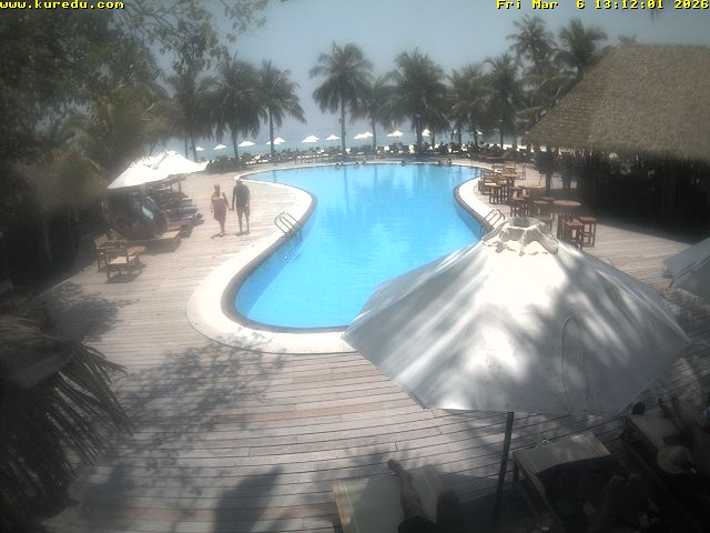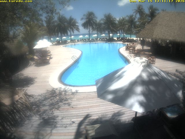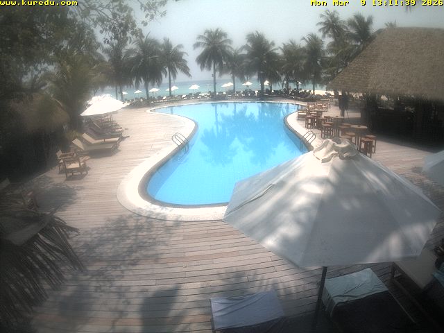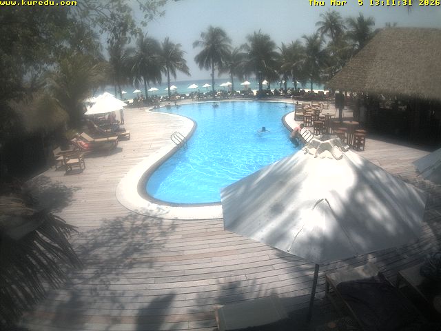 Kuredu Island (Lhaviyani Atoll), Malediven - 68 km von Eydhafushi: Livestream Kuredu Island Resort - Malediven, wunderscöne Aussicht auf den Strand von Kuredu Island Resort.