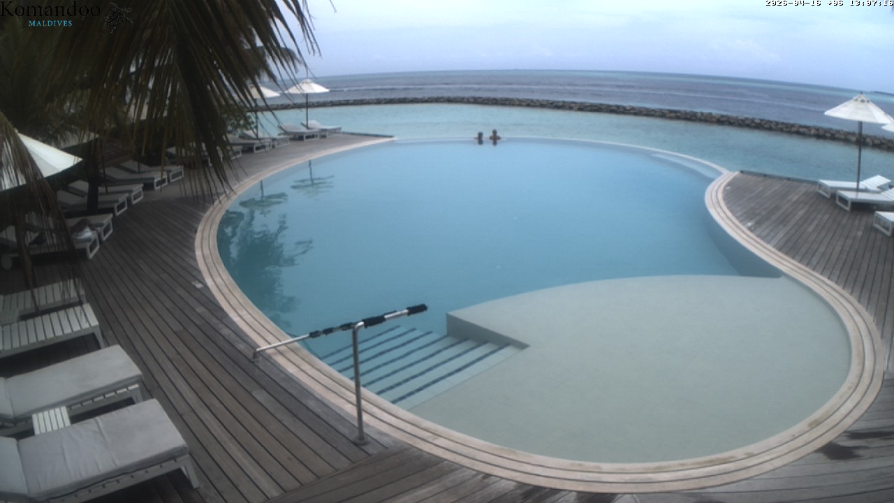 Komandoo (Lhaviyani Atoll), Malediven - 196.8 km von Mahibadhoo: Komandoo Island Resort - Ein Blick über den Infinity Pool des Komandoo Island Resorts.