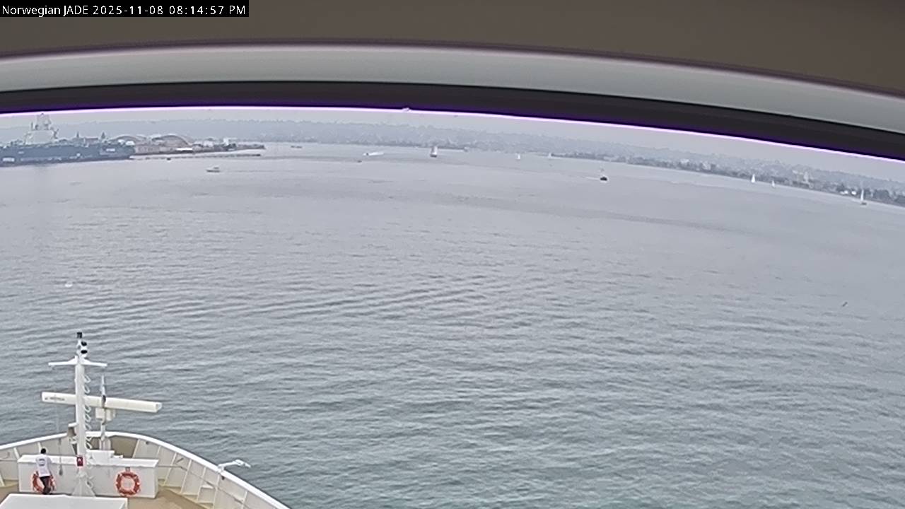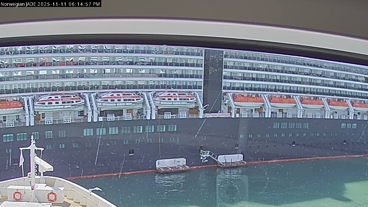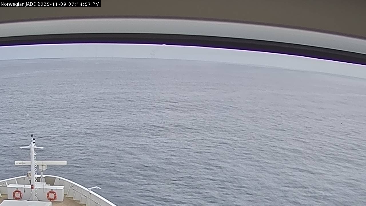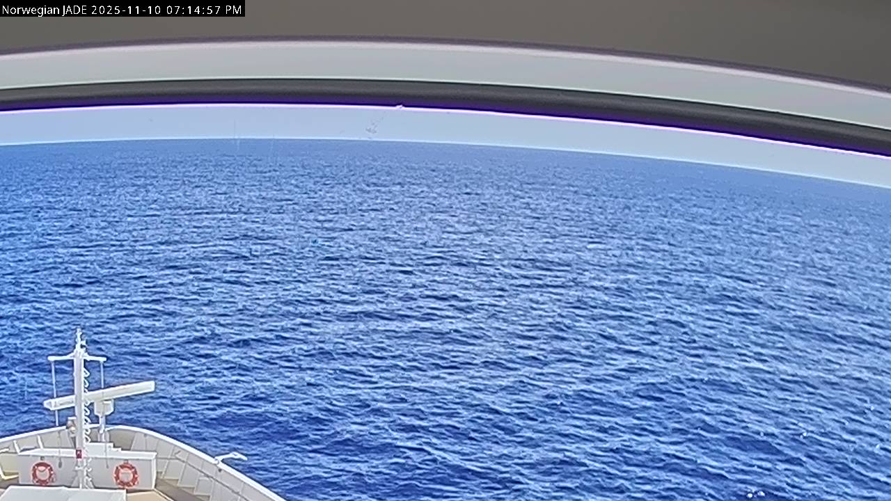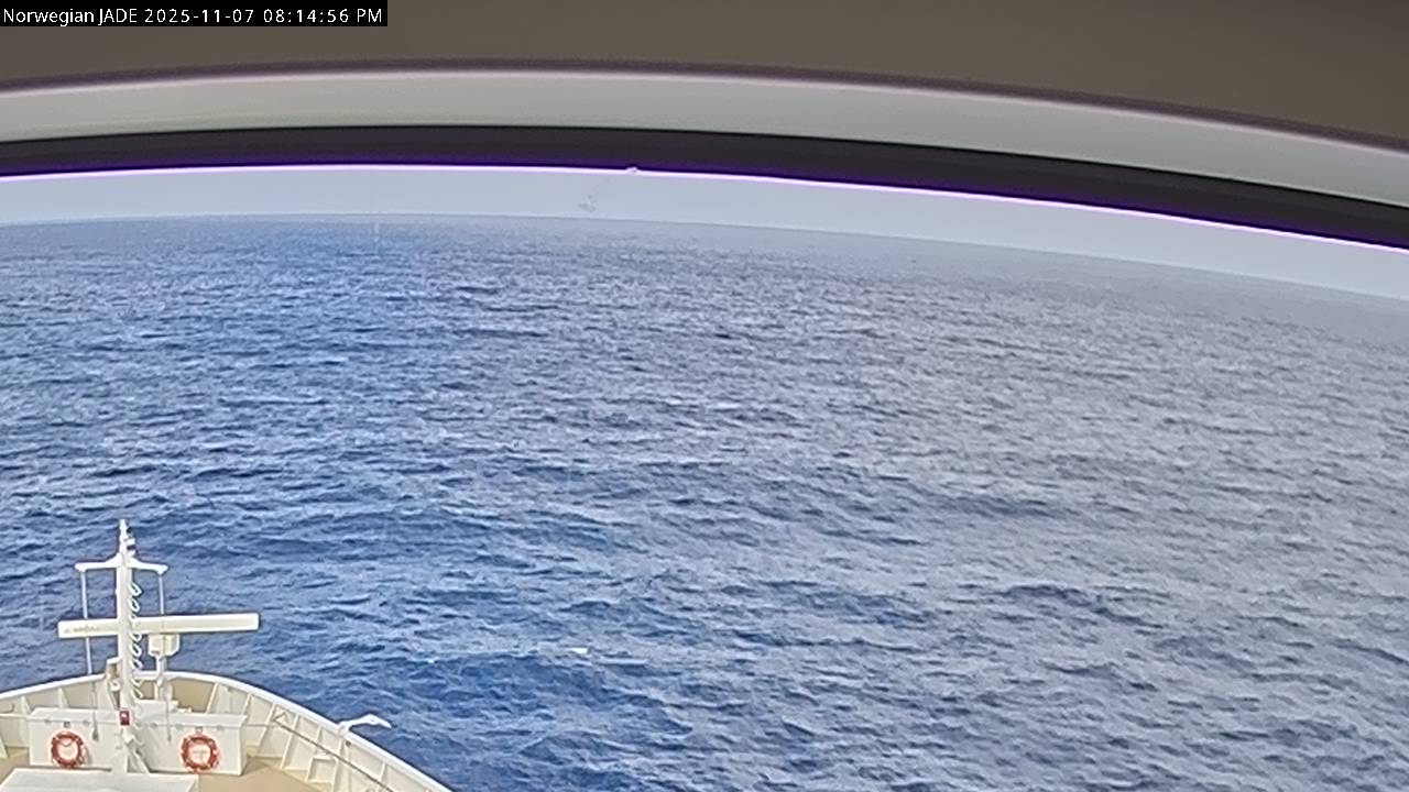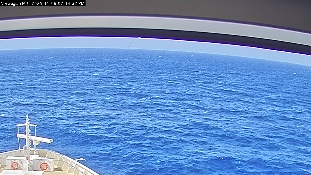 Norwegian Jade, Norwegian Cruise Line - 410.2 km von Atanasio: Live auf See - Werfen Sie einen Blick von der Brücke des Kreuzfahrtschiffes Norwegian Jade auf die See.