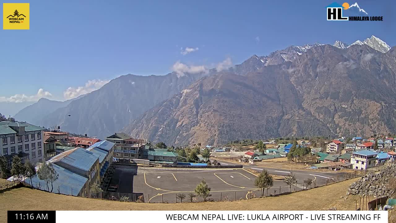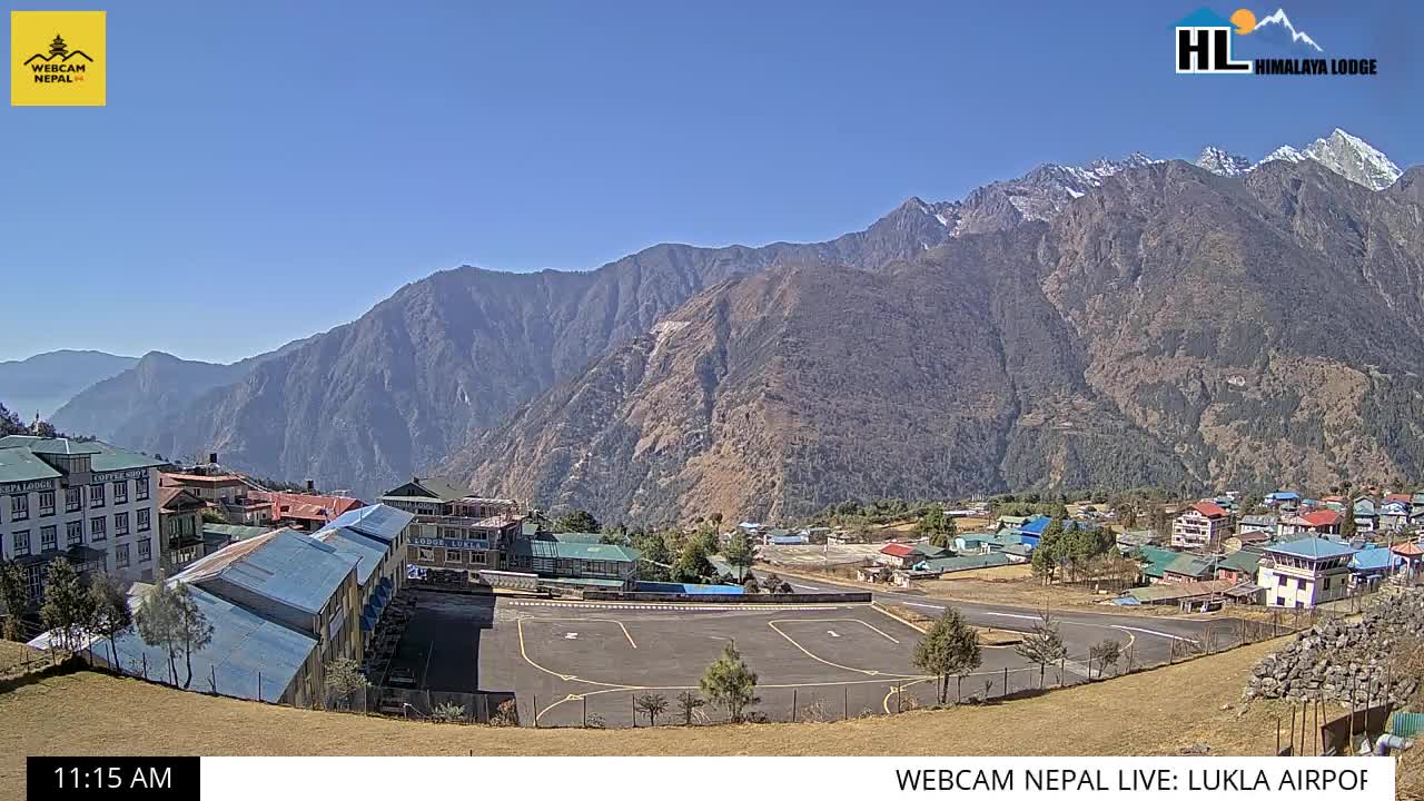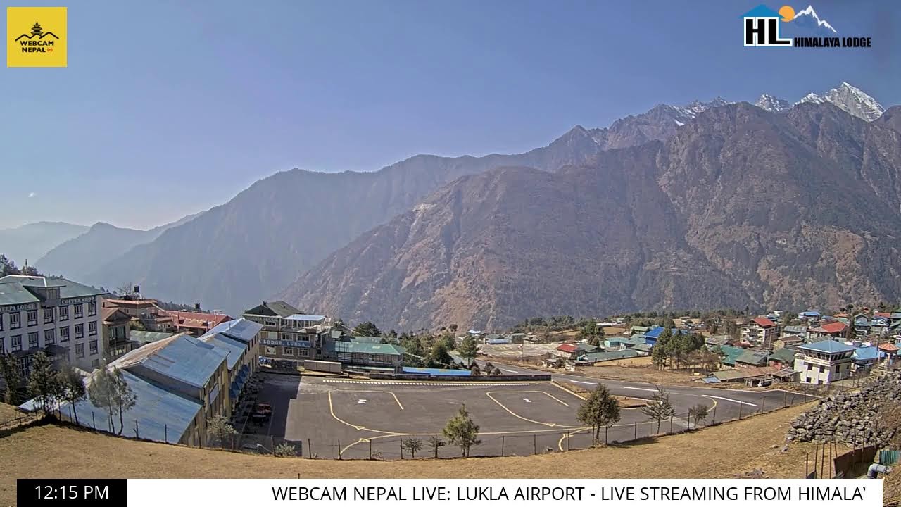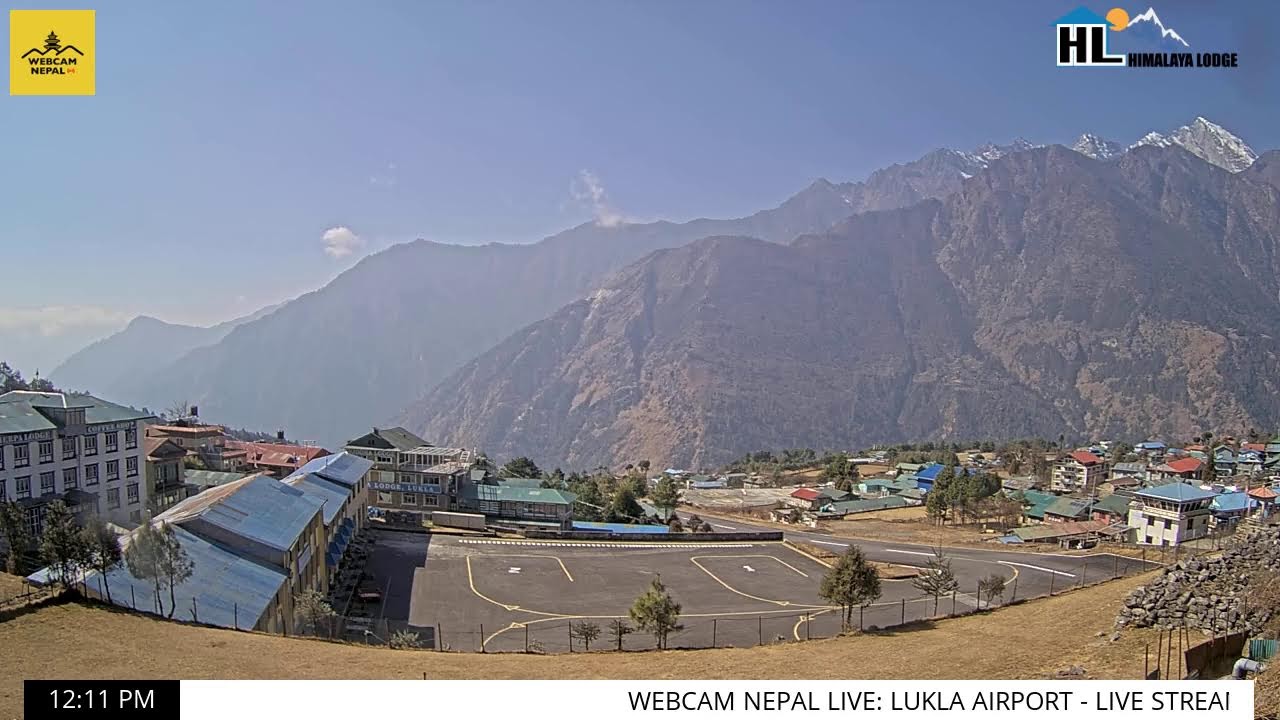 - Ein Blick auf die Runway vom Lukla Airport von der Himalaya Lodge.