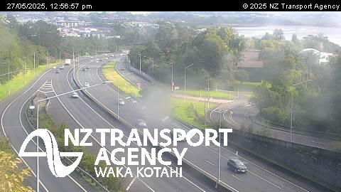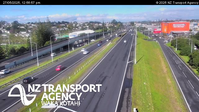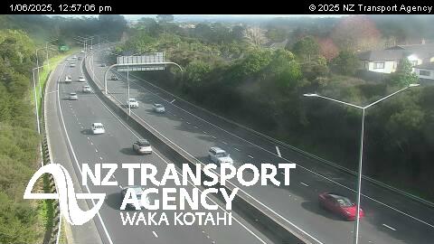 Greenhithe, Neuseeland - 137.1 km von Maropiu: Verkehr SH18, George Deane