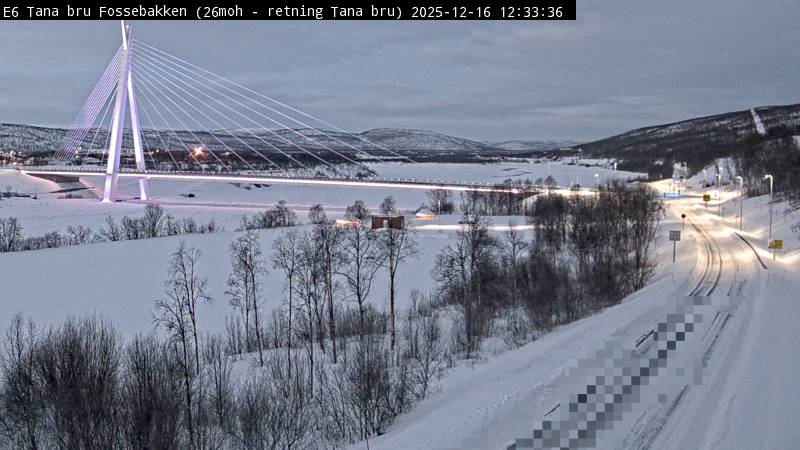 Tana, Norwegen - 22.6 km von Abelsborg: Verkehr E6 bei Tana Bru Fossebakken