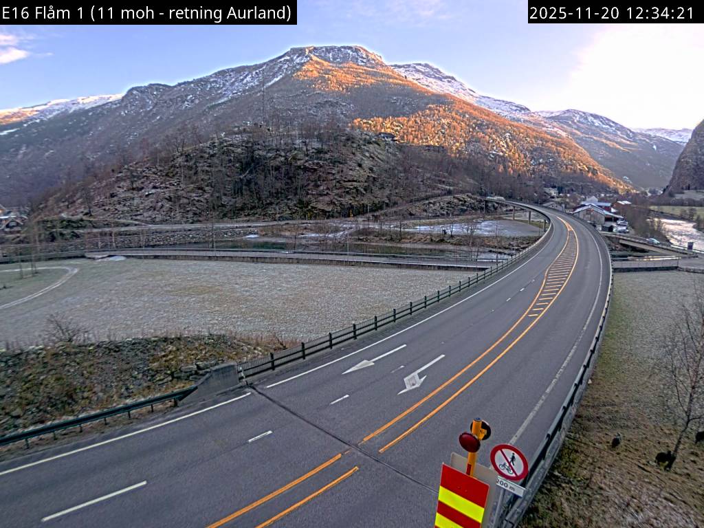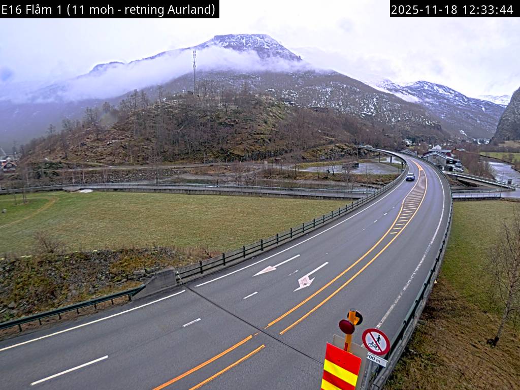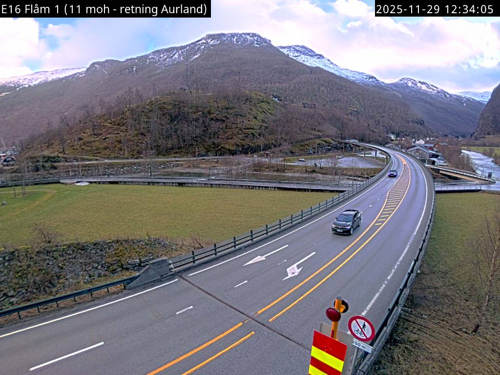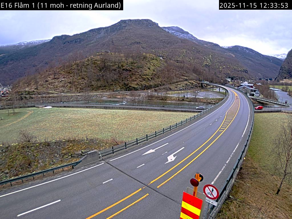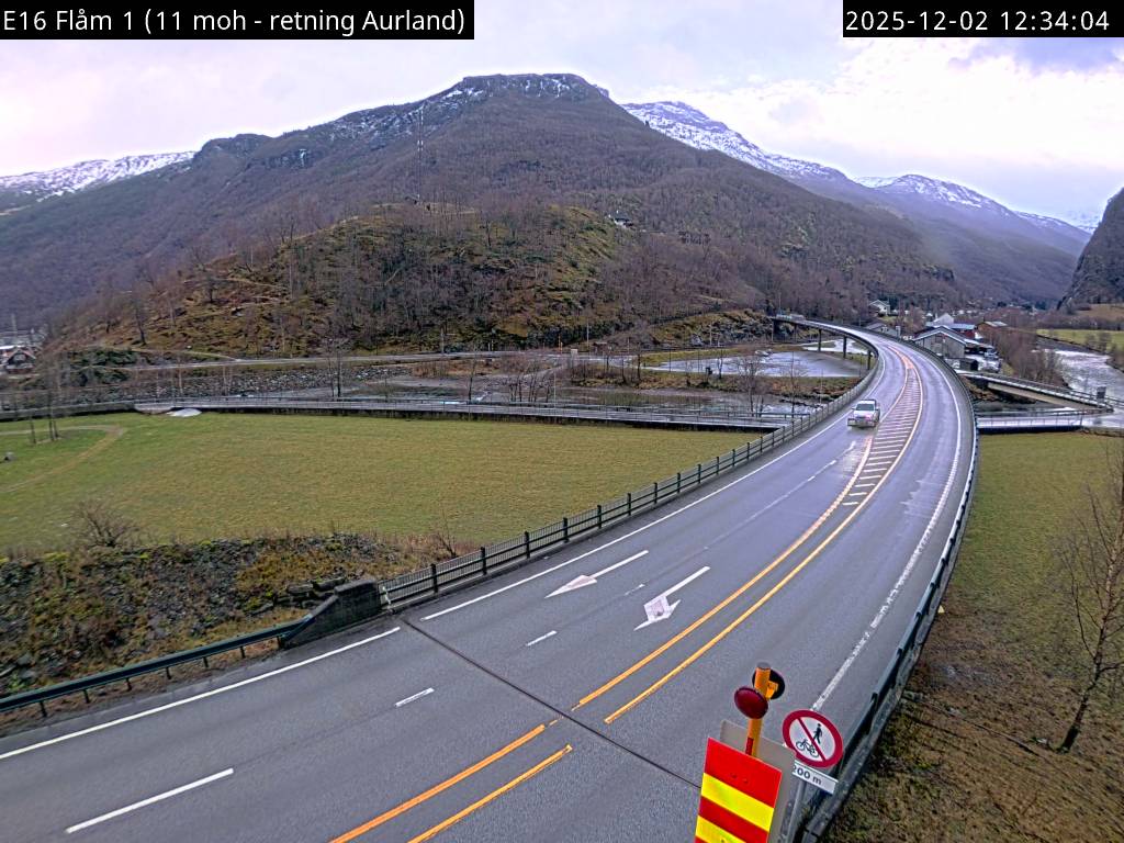 Flåm, Norwegen - 62.9 km von Alvik: Verkehr E16 bei Flåm