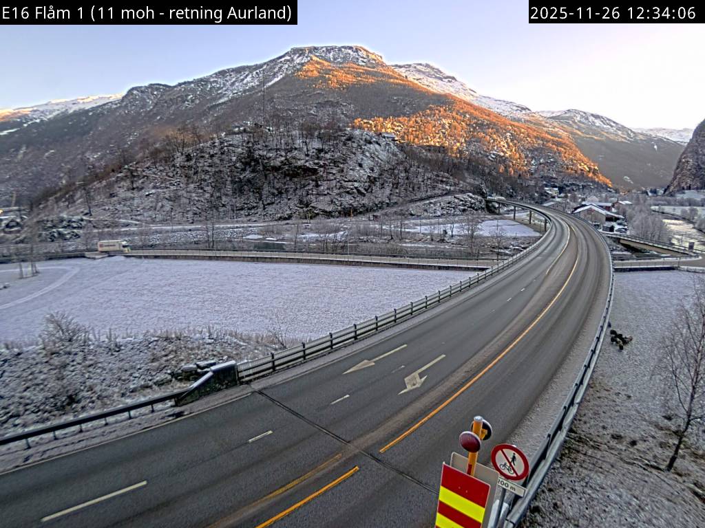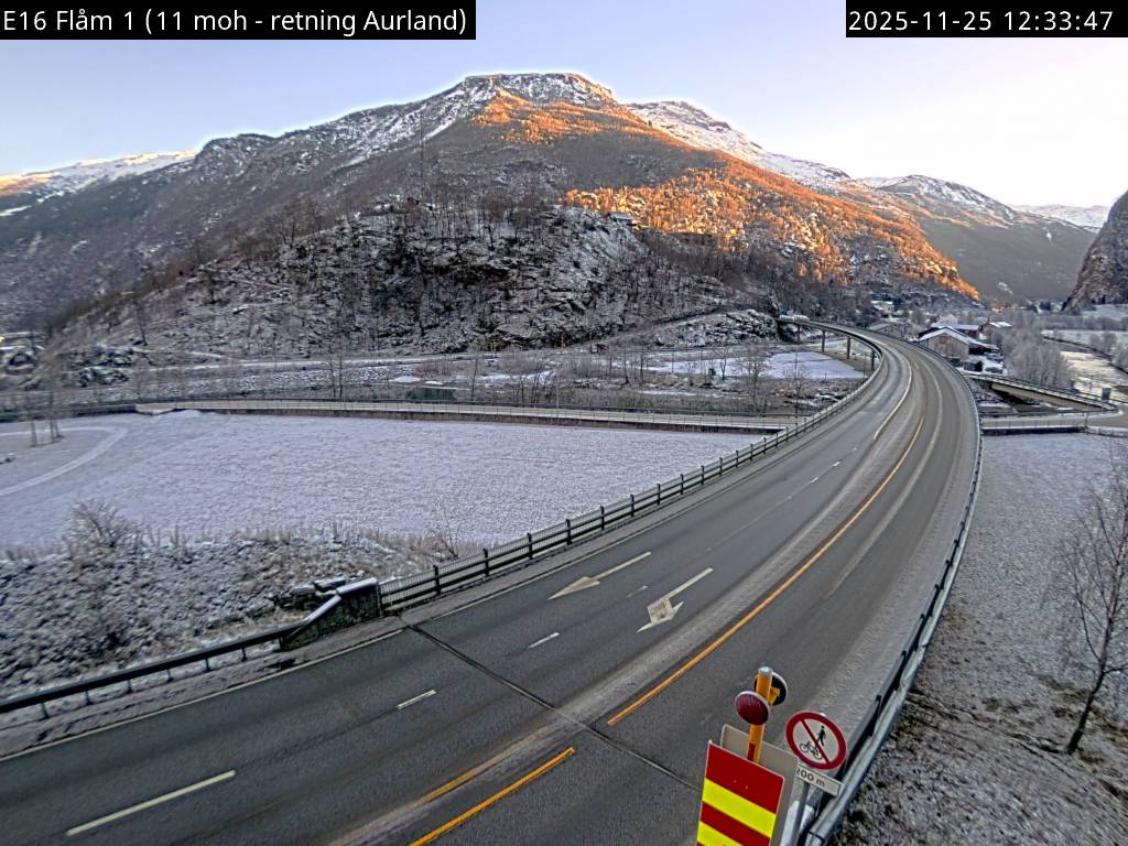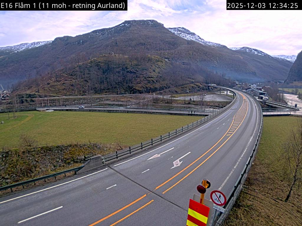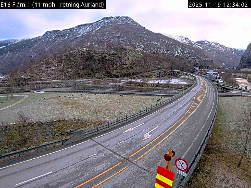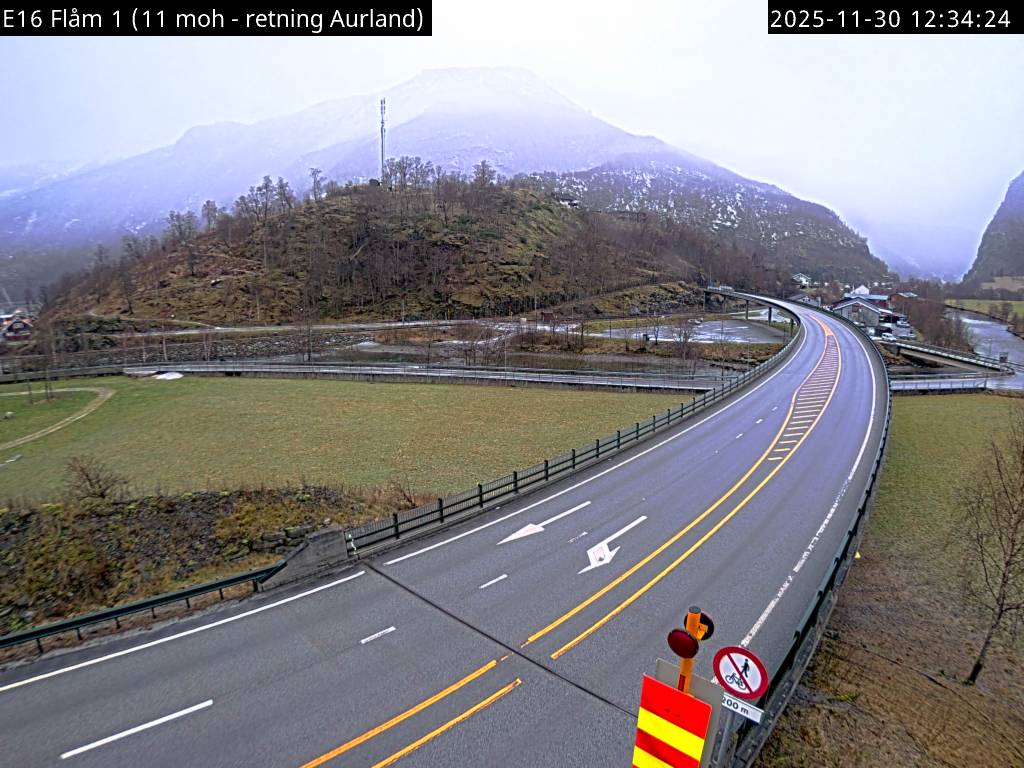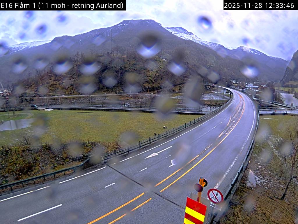 Flåm, Norwegen - 62.9 km von Alvik: Verkehr E16 bei Flåm