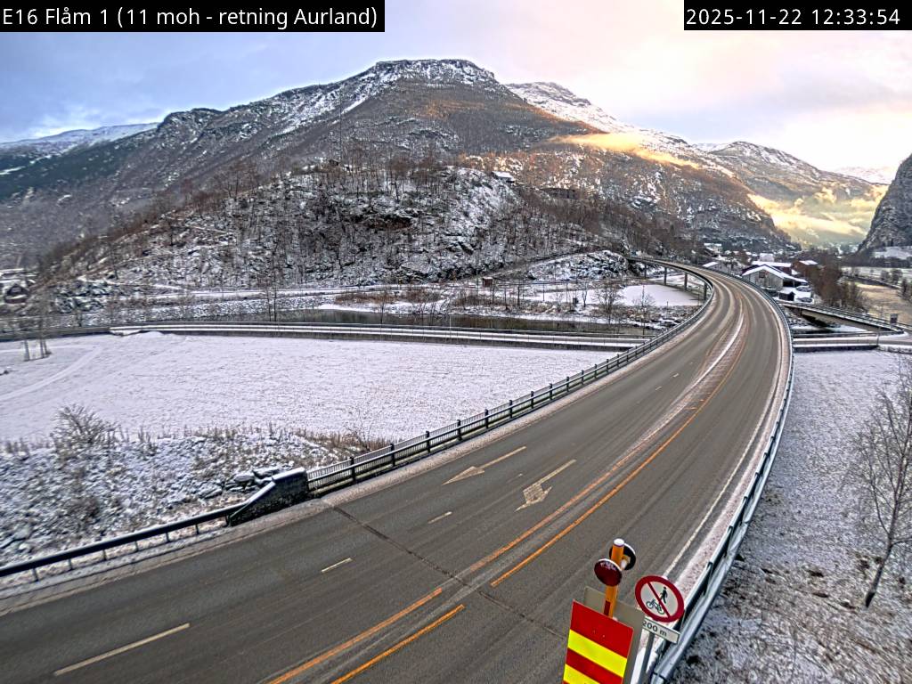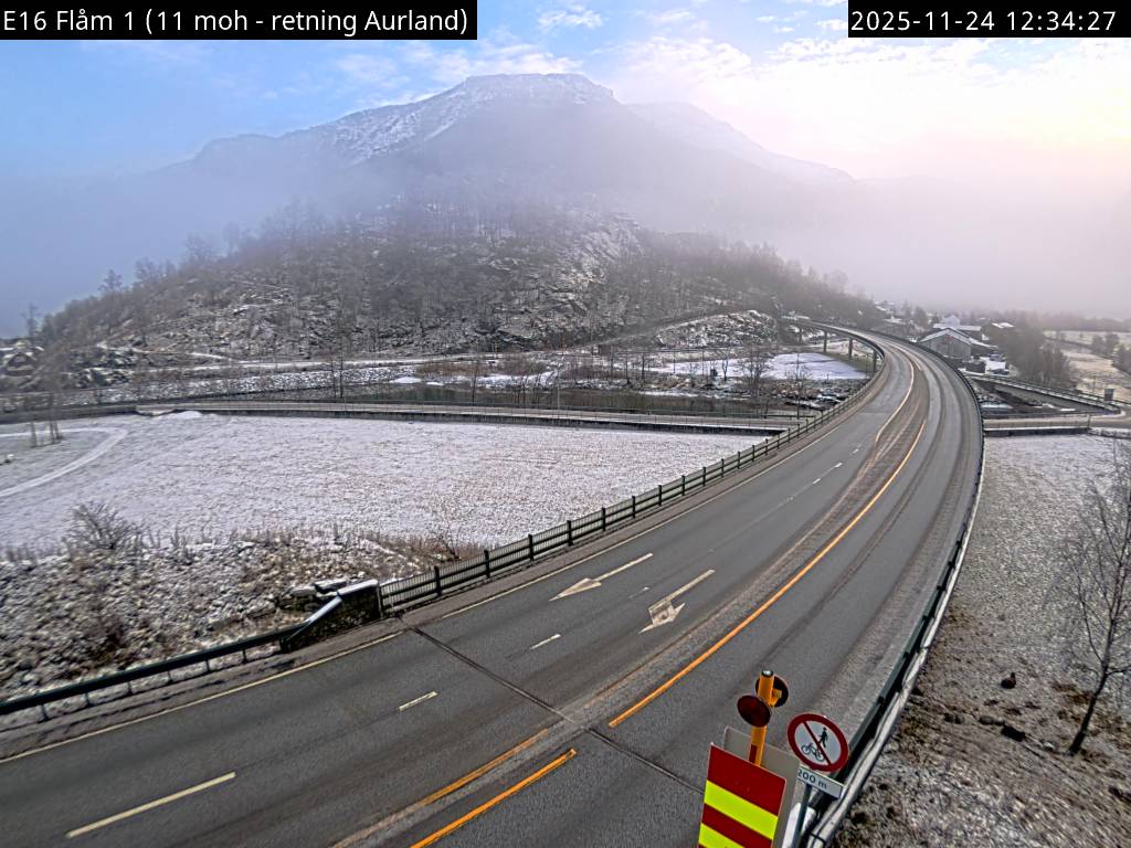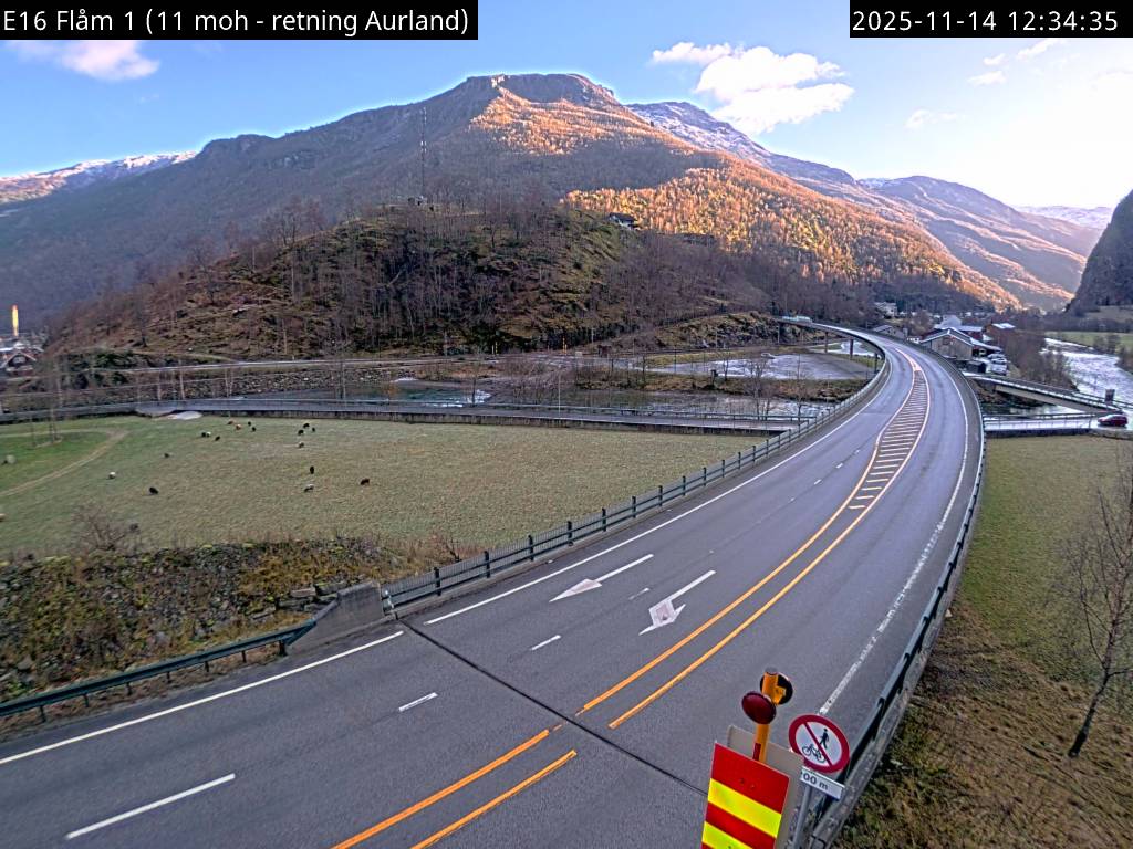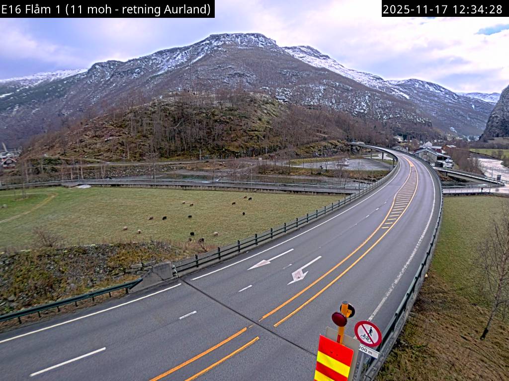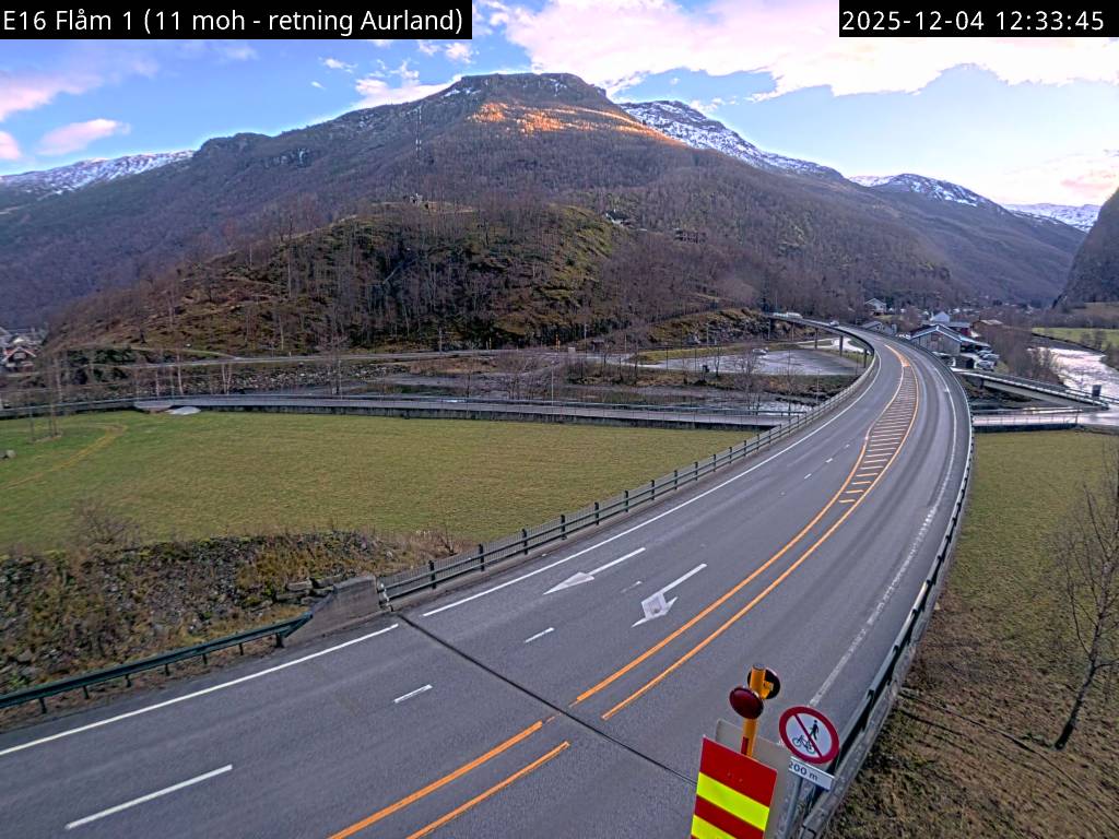 Flåm, Norwegen - 62.9 km von Alvik: Verkehr E16 bei Flåm