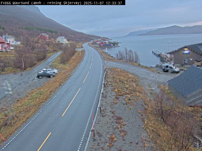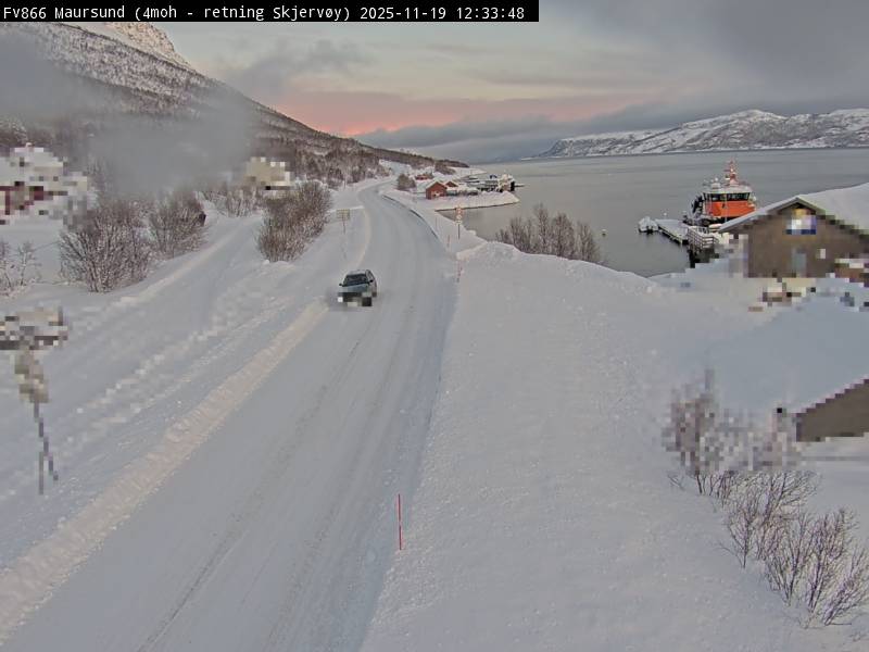 Maursund, Norwegen - 103.5 km von Andsnas: Verkehr F866 bei Maursund