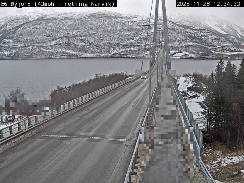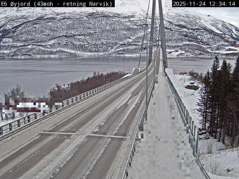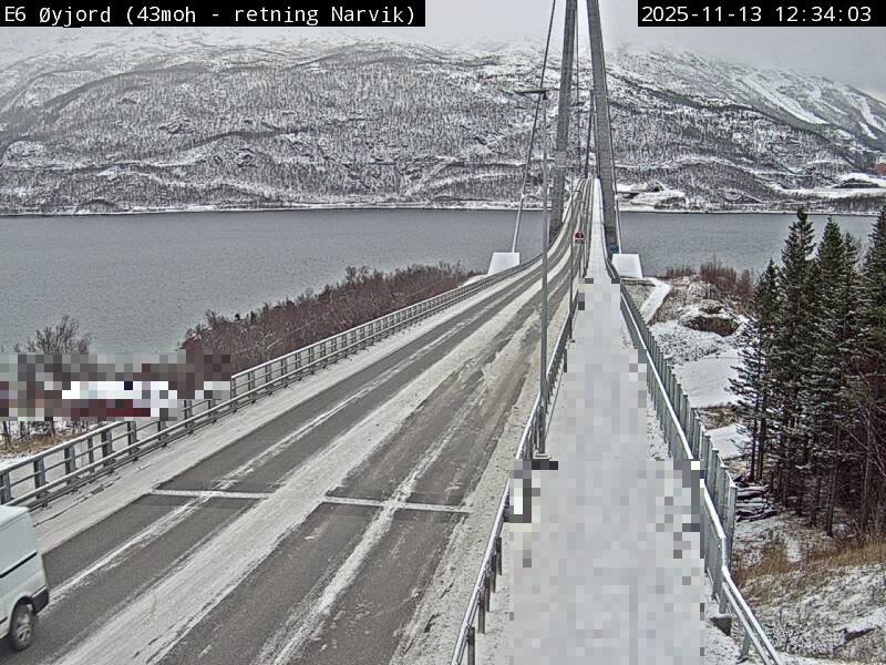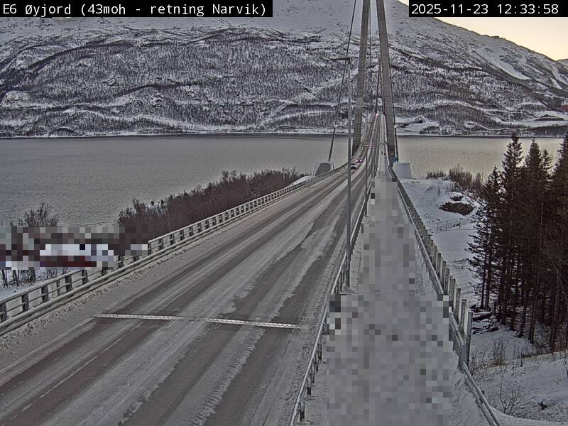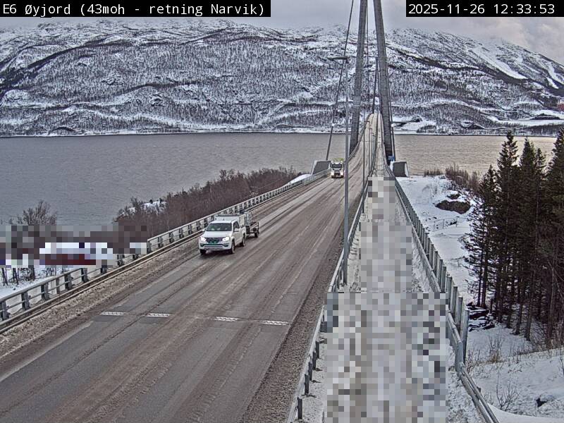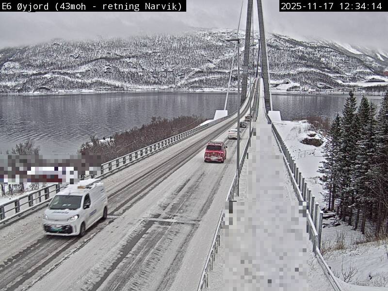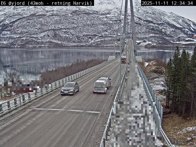 Øyjord, Norwegen - 120.7 km von Andsnas: Verkehr E6 bei Øyjord, Hålogalandsbrua