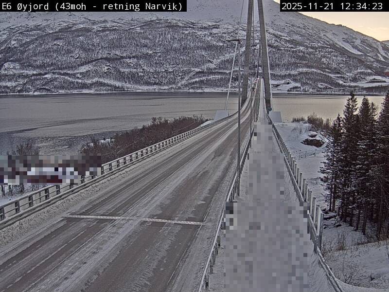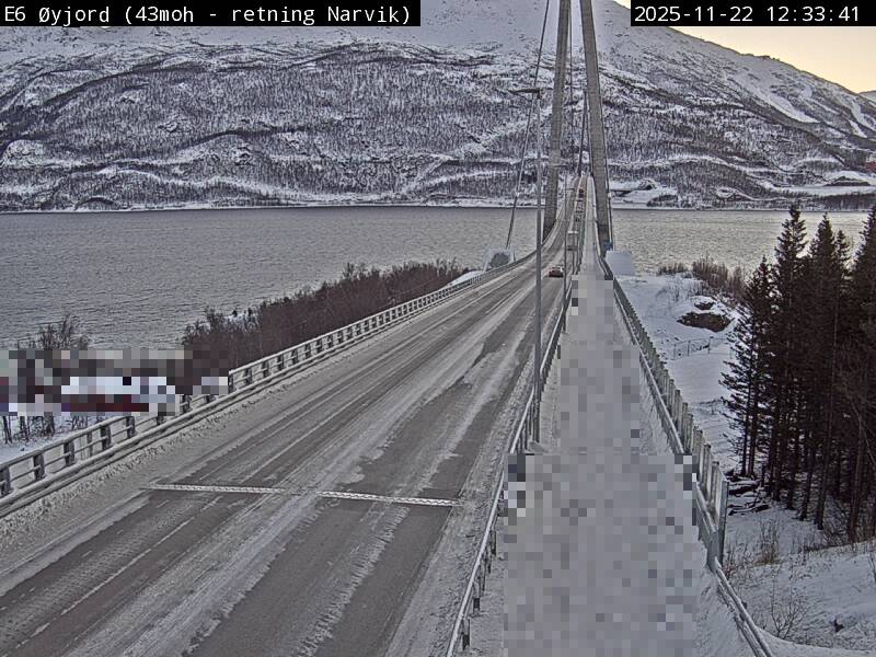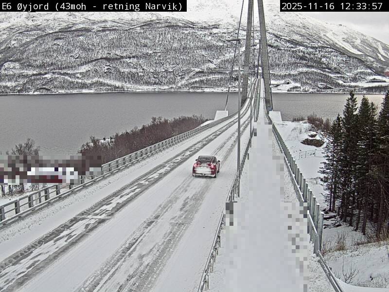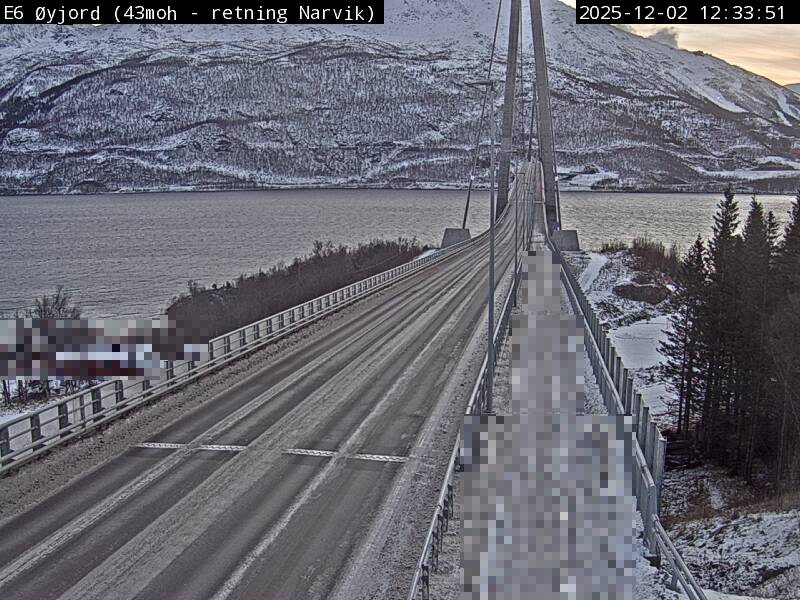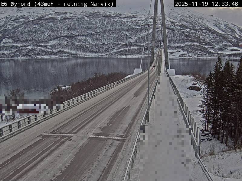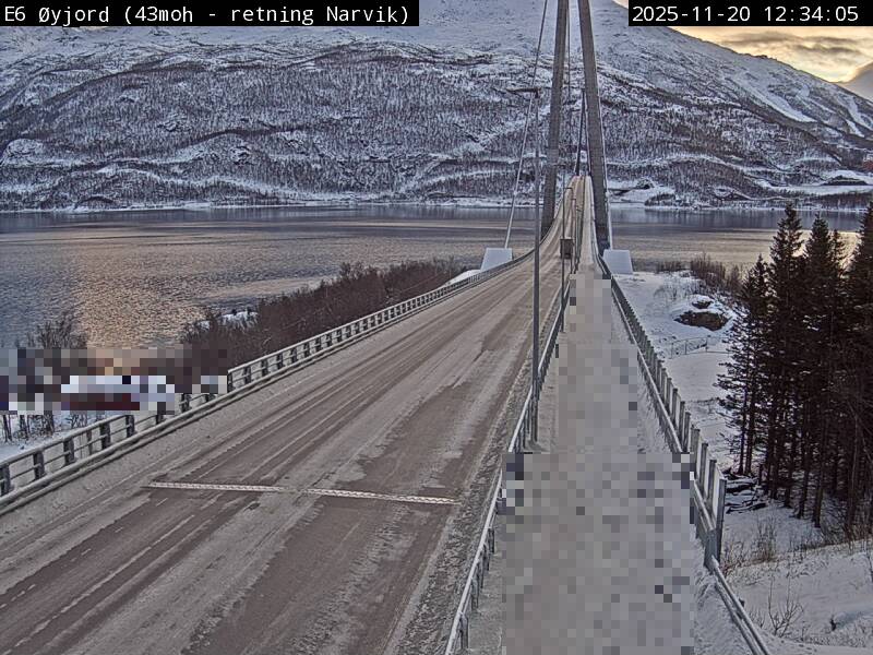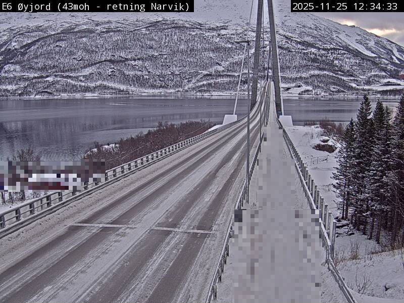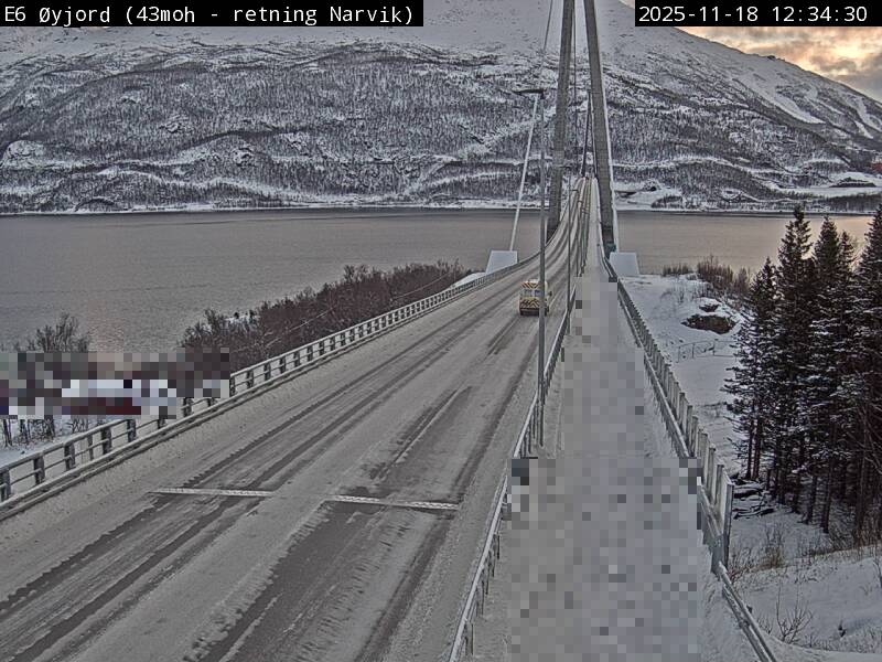 Øyjord, Norwegen - 120.7 km von Andsnas: Verkehr E6 bei Øyjord, Hålogalandsbrua