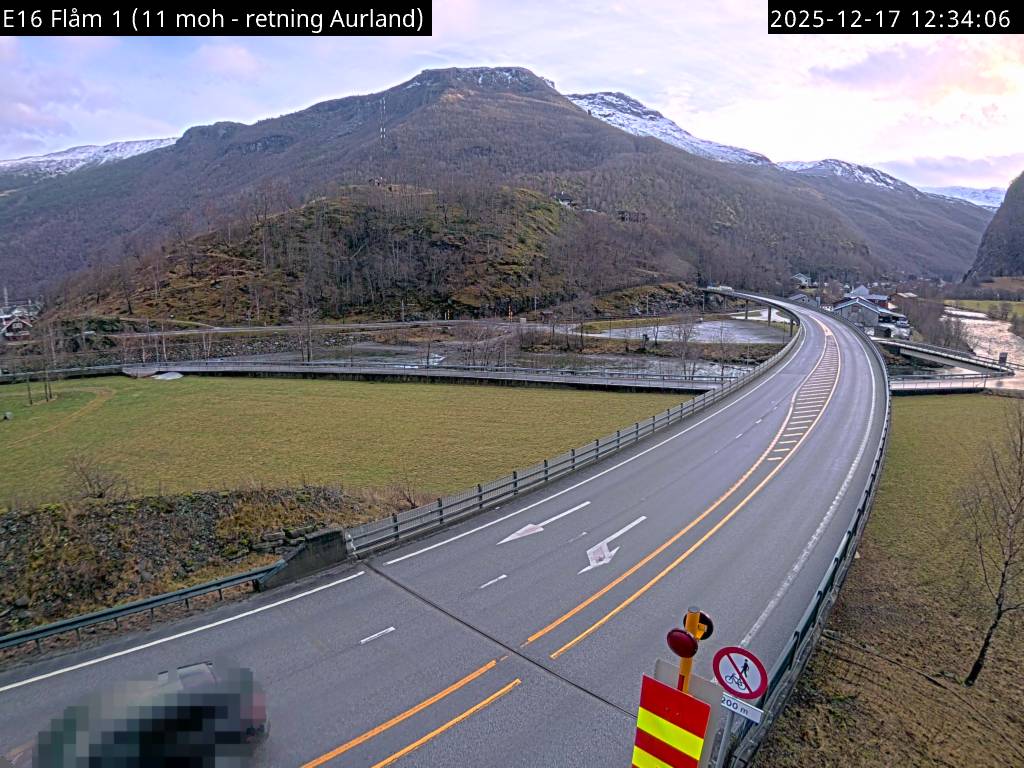 Flåm, Norwegen - 118.8 km von Aras: Verkehr E16 bei Flåm