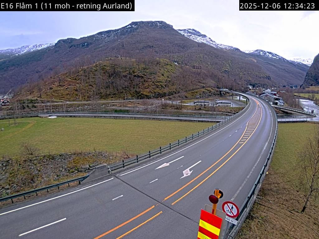 Flåm, Norwegen - 48.9 km von Kinsedal: Verkehr E16 bei Flåm