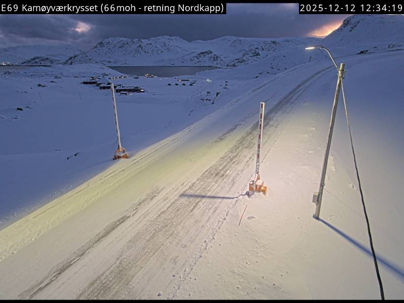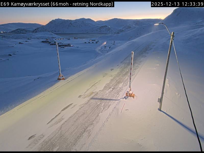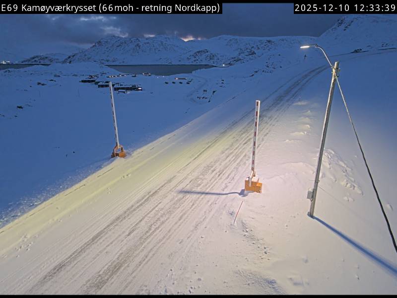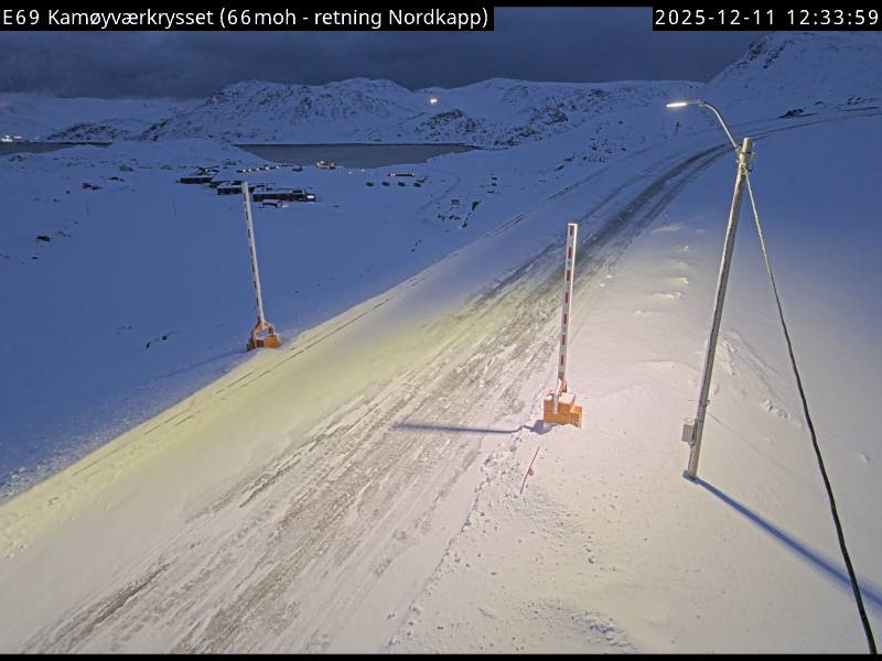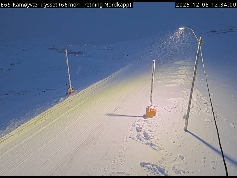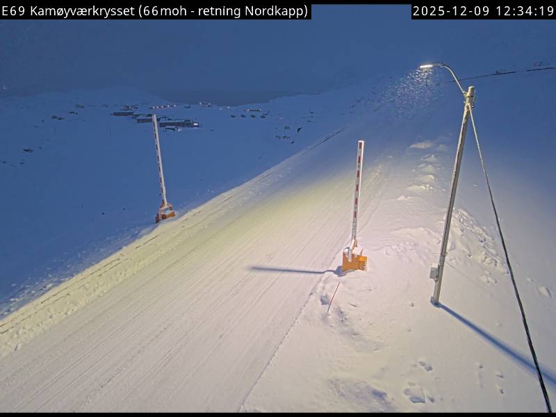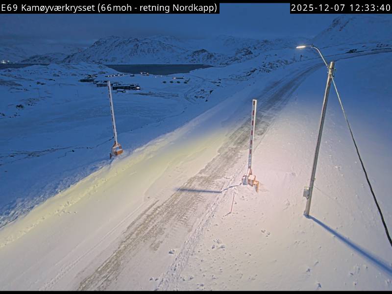 Kamøyvær, Norwegen - 138.5 km von Skoganvarre: Verkehr E69 bei Kamøyværkrysset