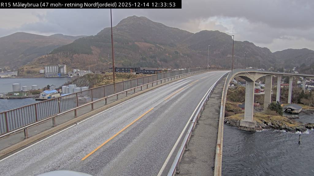 Måløy, Norwegen - 84.4 km von Valderhaug: Verkehr R15 bei der Måløybrua