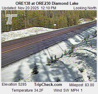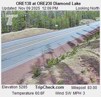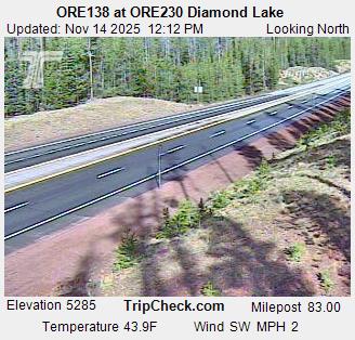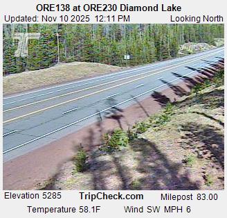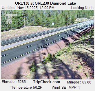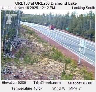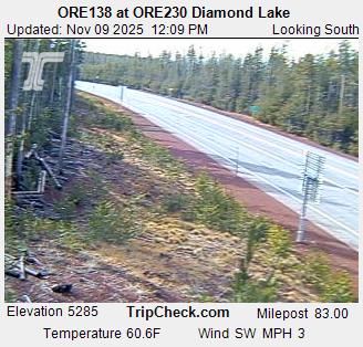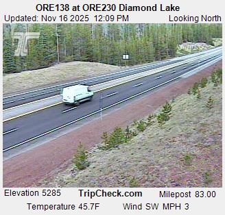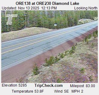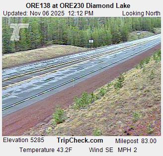 Diamond Lake, Oregon, USA - 67.2 km von Crystal (historical): ORE230 at ORE138 Diamond Lake - Ein Blick auf die aktuelle Verkehrssituation auf der ORE230.