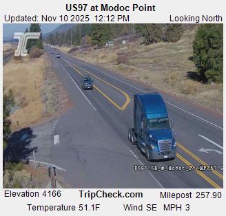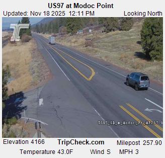 Ashland, Oregon, USA - 66.7 km von Crystal (historical): I-5 at Ashland - Siskiyou Chain Up Area - Ein Blick auf die aktuelle Verkehrssituation auf der I-5.