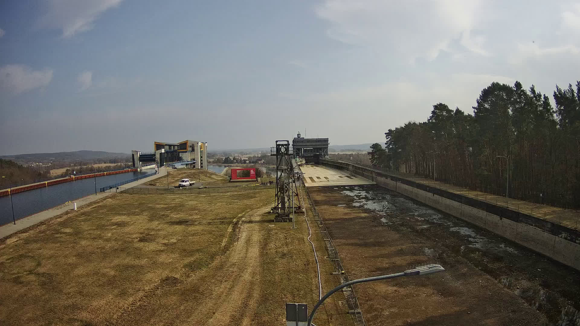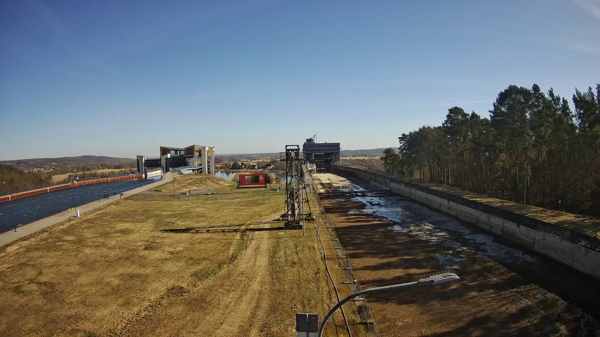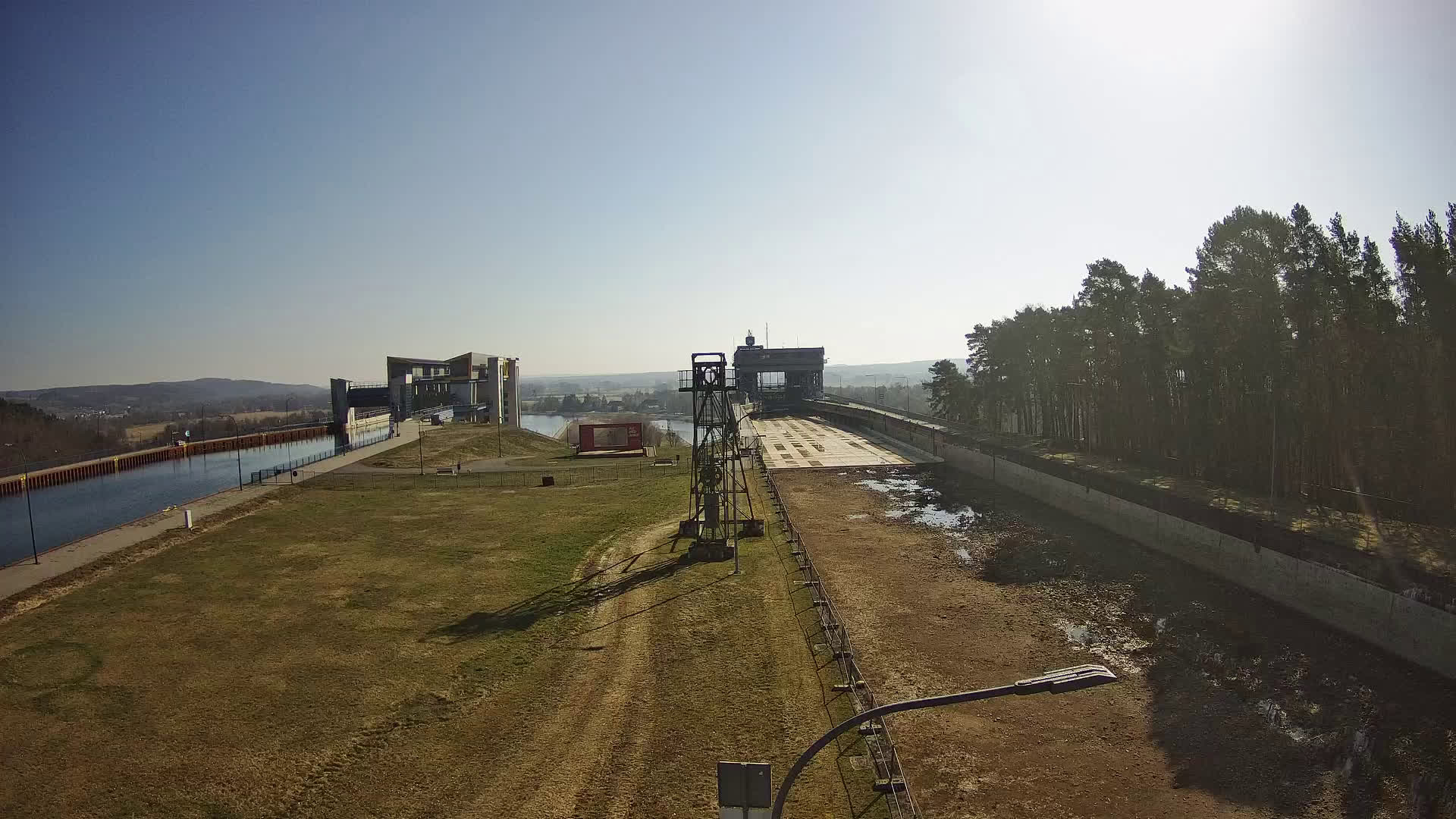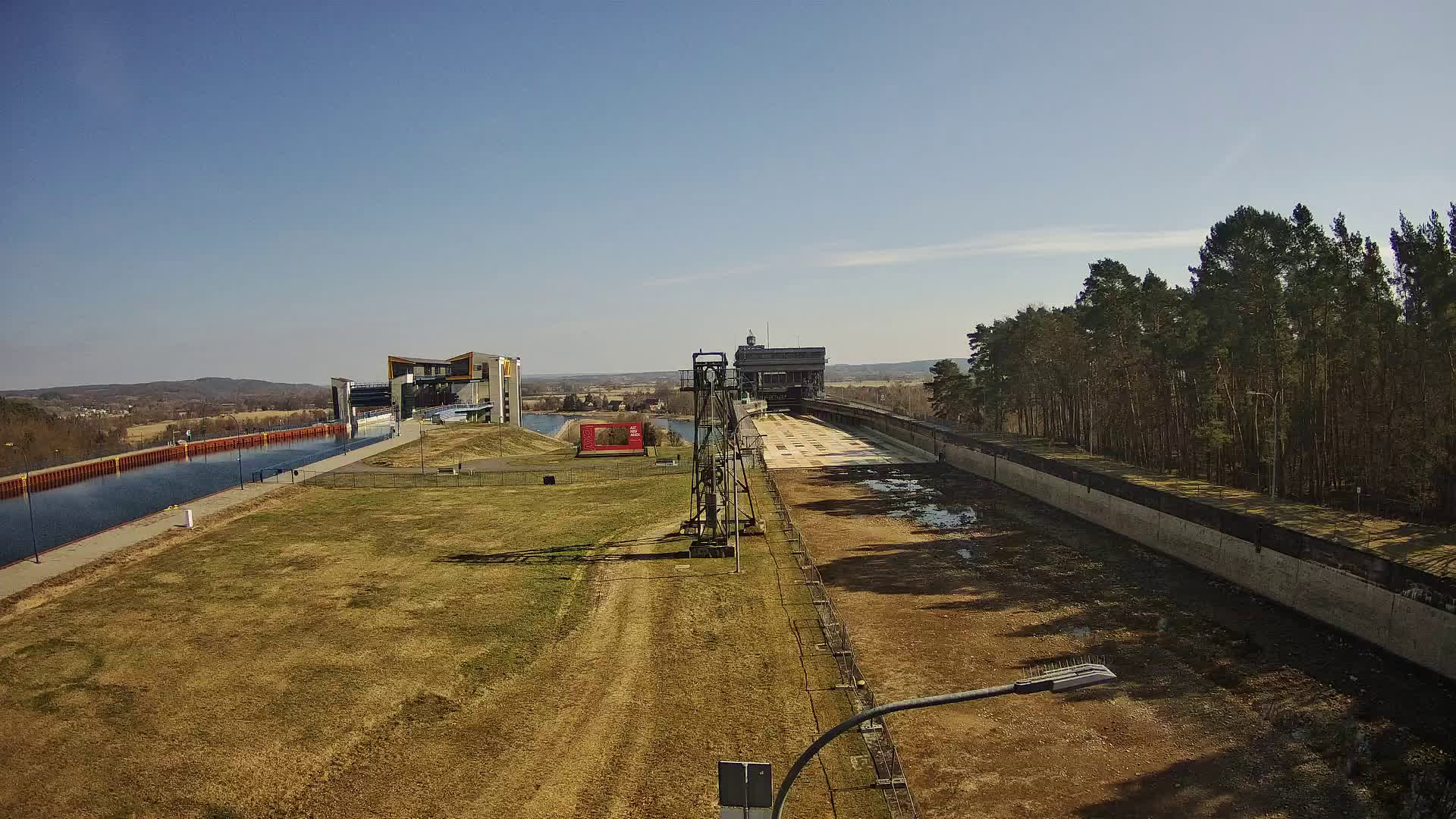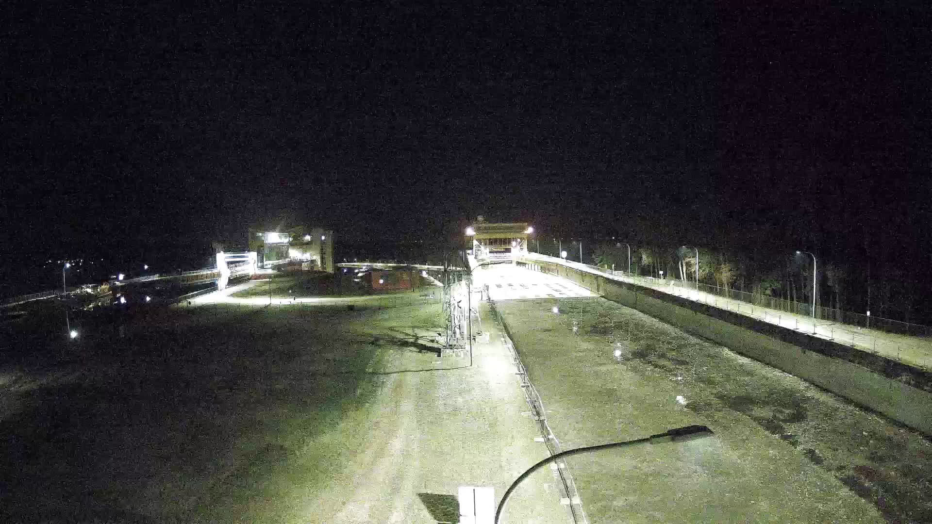 Schwedt (Oder), Deutschland - 112.5 km von Alt Beelitz: Schwedt, Kreuzung Lindenallee/Berliner Straße - Die Kamera befindet sich in 25 Metern Höhe auf dem Dach der Uckermärkischen Bühnen Schwedt und blickt auf die Kreuzung Lindenallee/Berliner Straße, über die Stadt Schwedt bis zur PCK Raffinerie GmbH am Horizont.