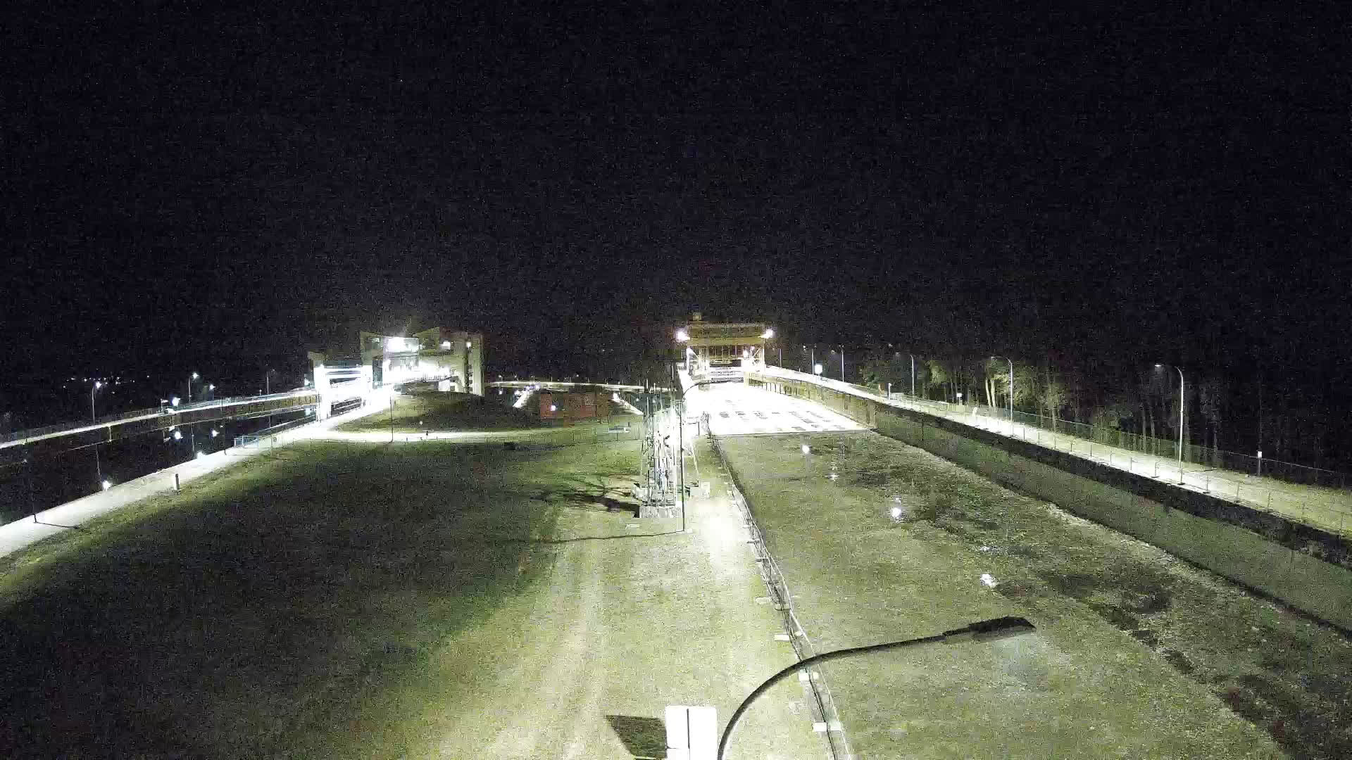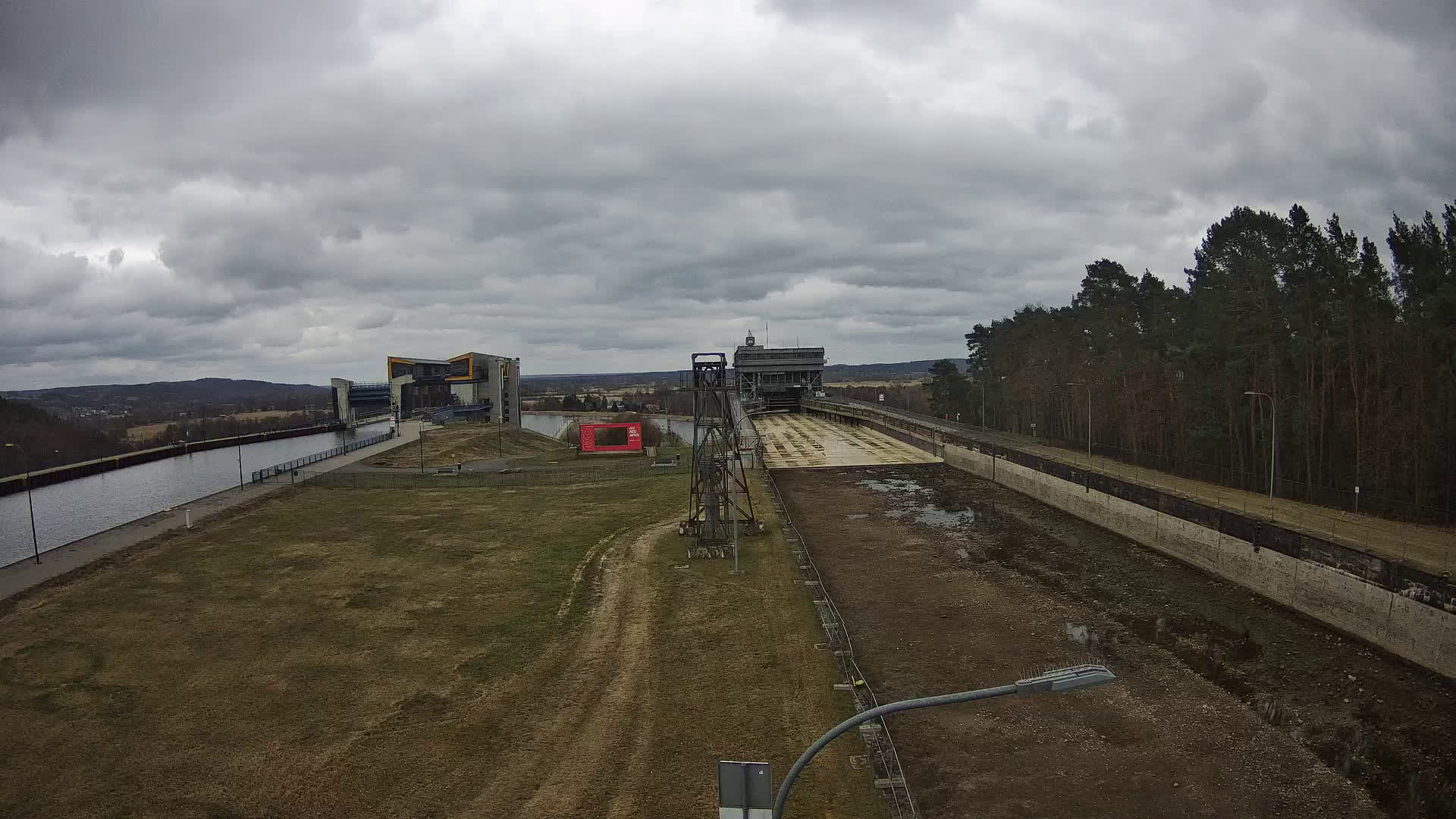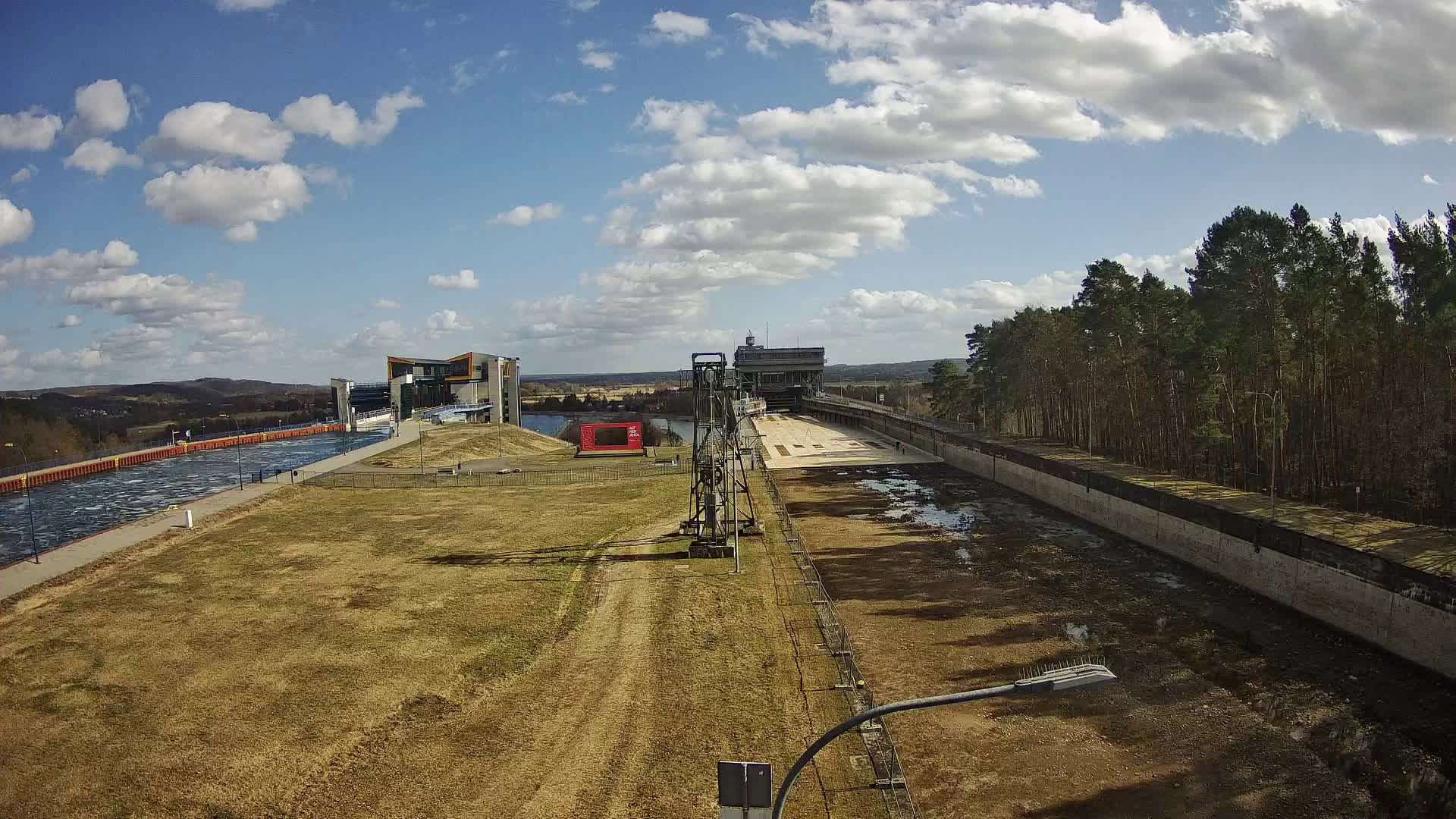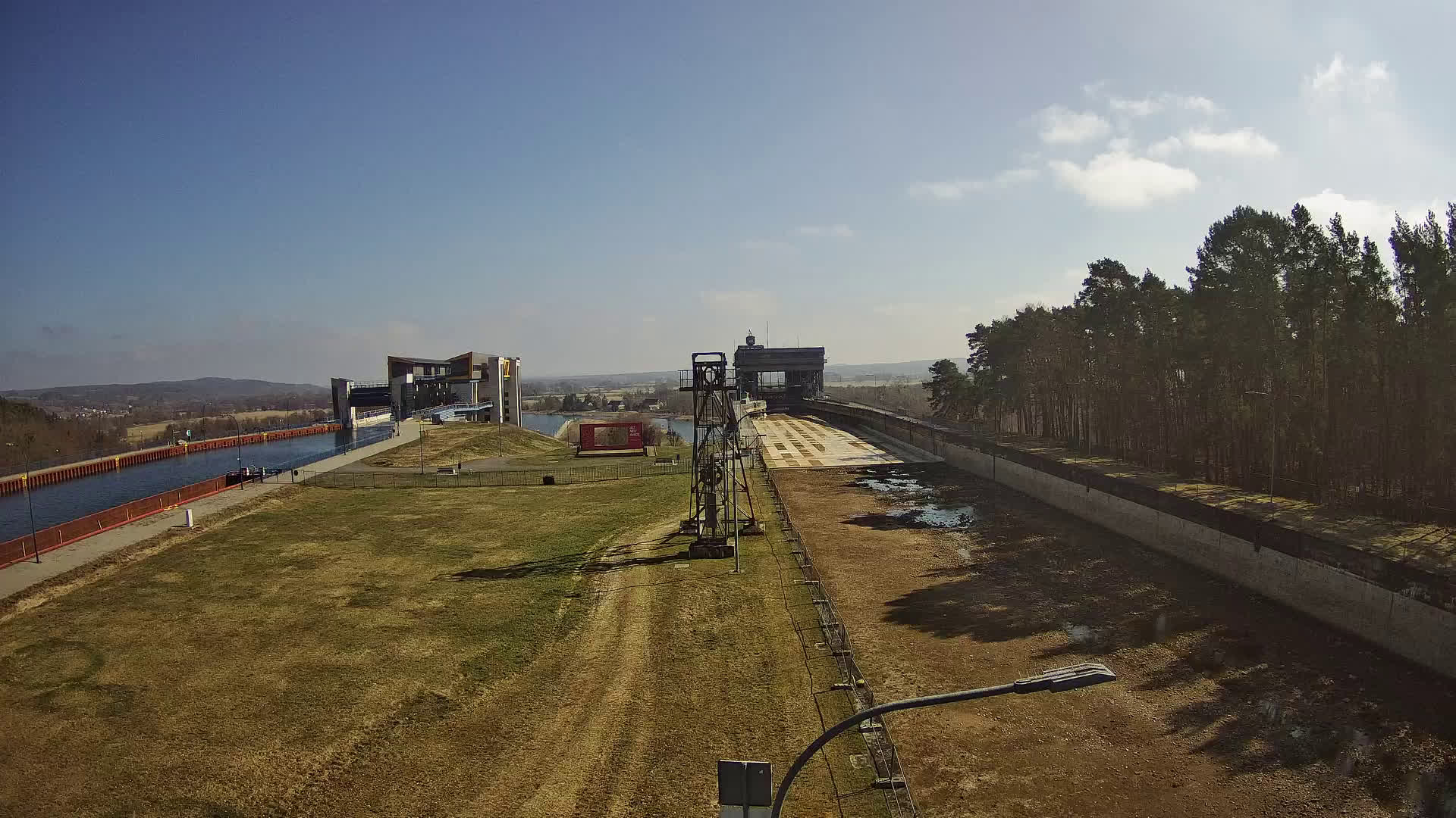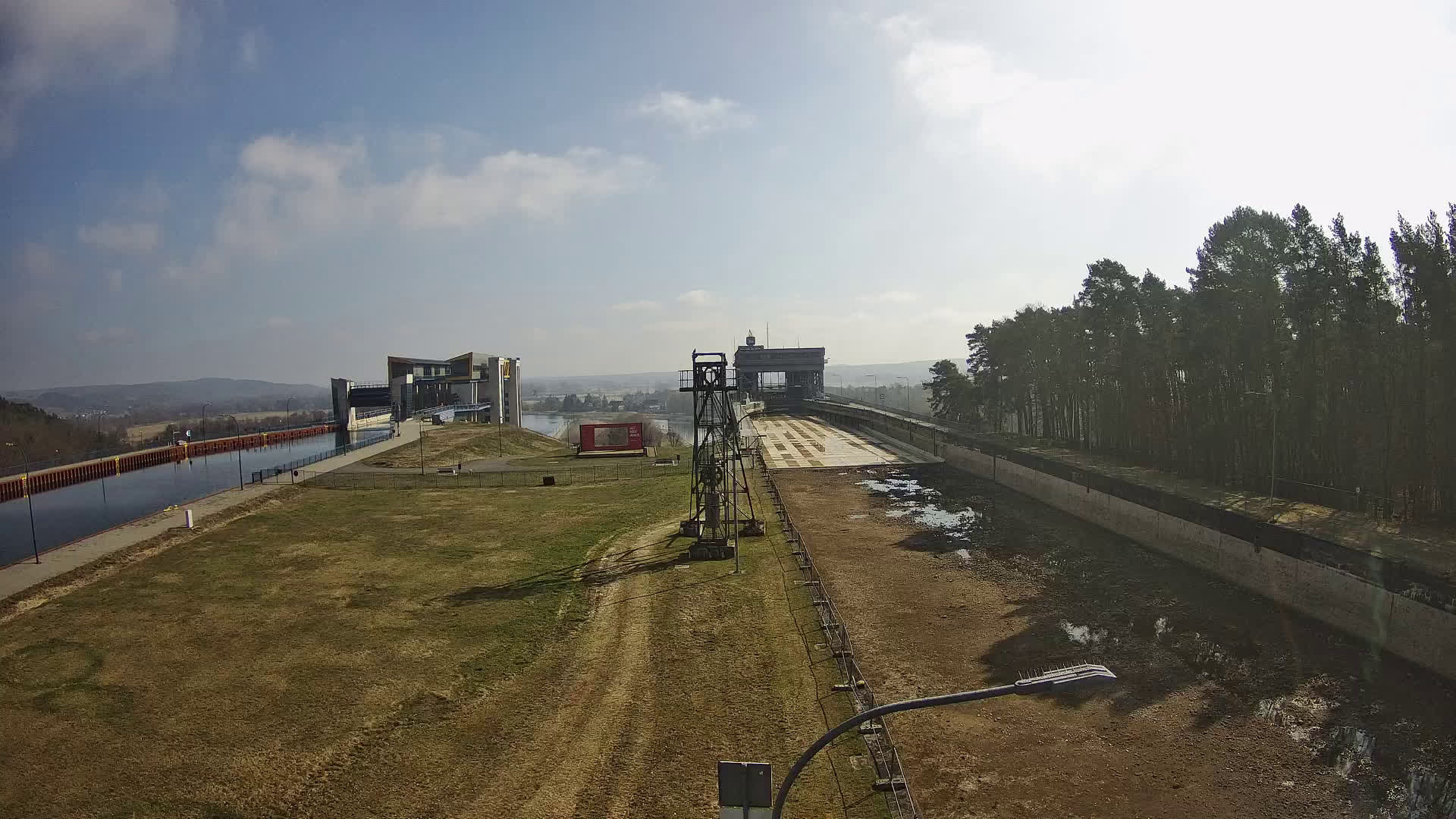 Schwedt (Oder), Deutschland - 112.5 km von Alt Beelitz: Schwedt, Kreuzung Lindenallee/Berliner Straße - Die Kamera befindet sich in 25 Metern Höhe auf dem Dach der Uckermärkischen Bühnen Schwedt und blickt auf die Kreuzung Lindenallee/Berliner Straße, über die Stadt Schwedt bis zur PCK Raffinerie GmbH am Horizont.