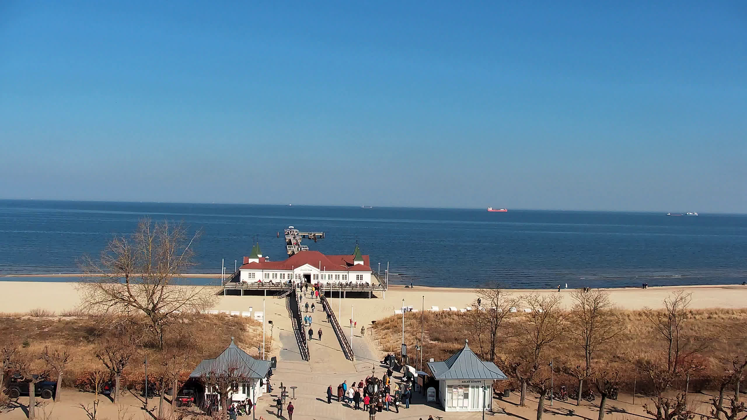 Heringsdorf (Usedom), Deutschland - 36.1 km von Koniewo: Ausblick Heringsdorf Seebrücke - Ausblick Heringsdorf auf die Seebrücke des Ostseebades vom Strandhotel Heringsdorf auf der Insel Usedom.