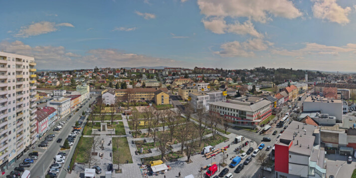 Feldbach, Österreich - 31.1 km von Andorhaza: Zwei Webcams - Kamera 1 befindet sich direkt am Gemeindeamt und ist in Richtung Bahnhof ausgerichtet. Kamera 2 wurde unter dem Dachvorsprung der Südoststeirischen Sparkasse moniert und ist schwenkbar zwischen Hauptplatz und Bahnhof.