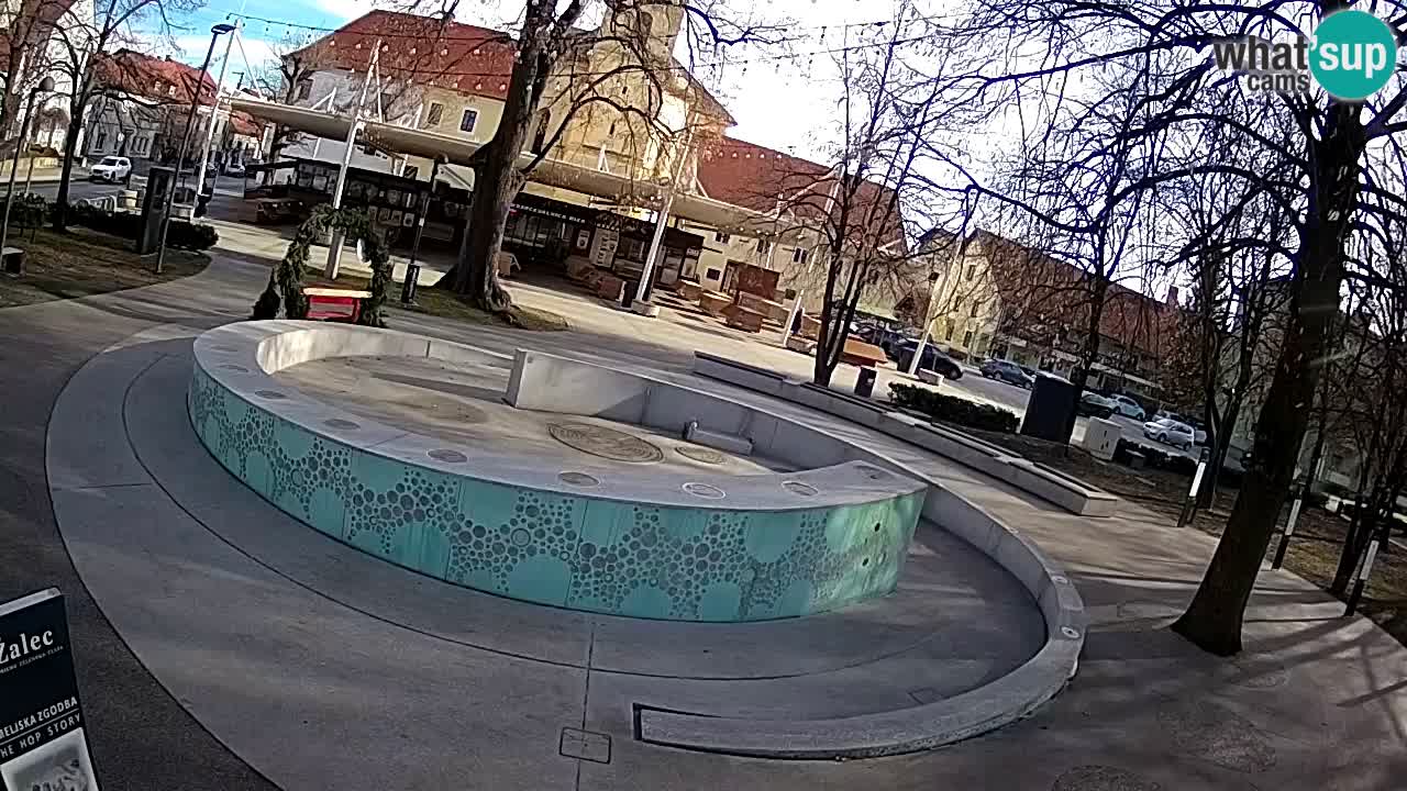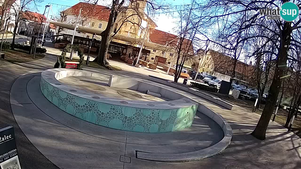 Žalec, Slowenien - 17.2 km von Breze pri Celje: Bier-Springbrunnen Grünes Gold