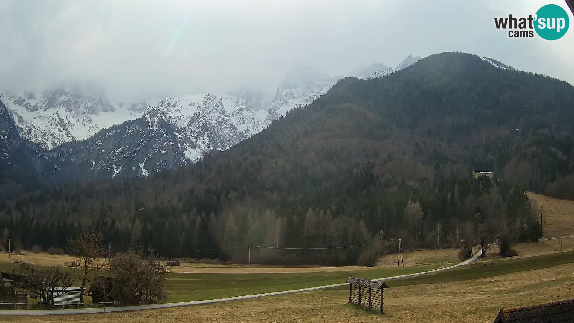 Ludmannsdorf, Österreich - 13.3 km von Jesenice: Blick auf die Karawanken vom Gasthaus Ogris - Die Webcam ist in 9072 Ludmannsdorf mit Aussicht auf die Karawanken (Süd-Ost) vom Gasthaus Ogris in Ludmannsdorf - Carnica Region Rosental - Kärnten.