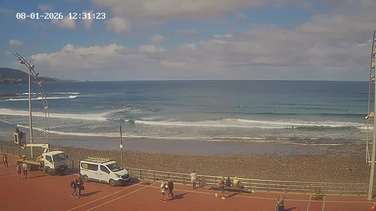 Las Palmas de Gran Canaria, Spanien - 21.3 km von Aguatona: La Cicer in Las Canteras - Wetter Surf - Herrliche Live-Bilder vom Strand von Las Canteras, ein Traumziel für Surfer.