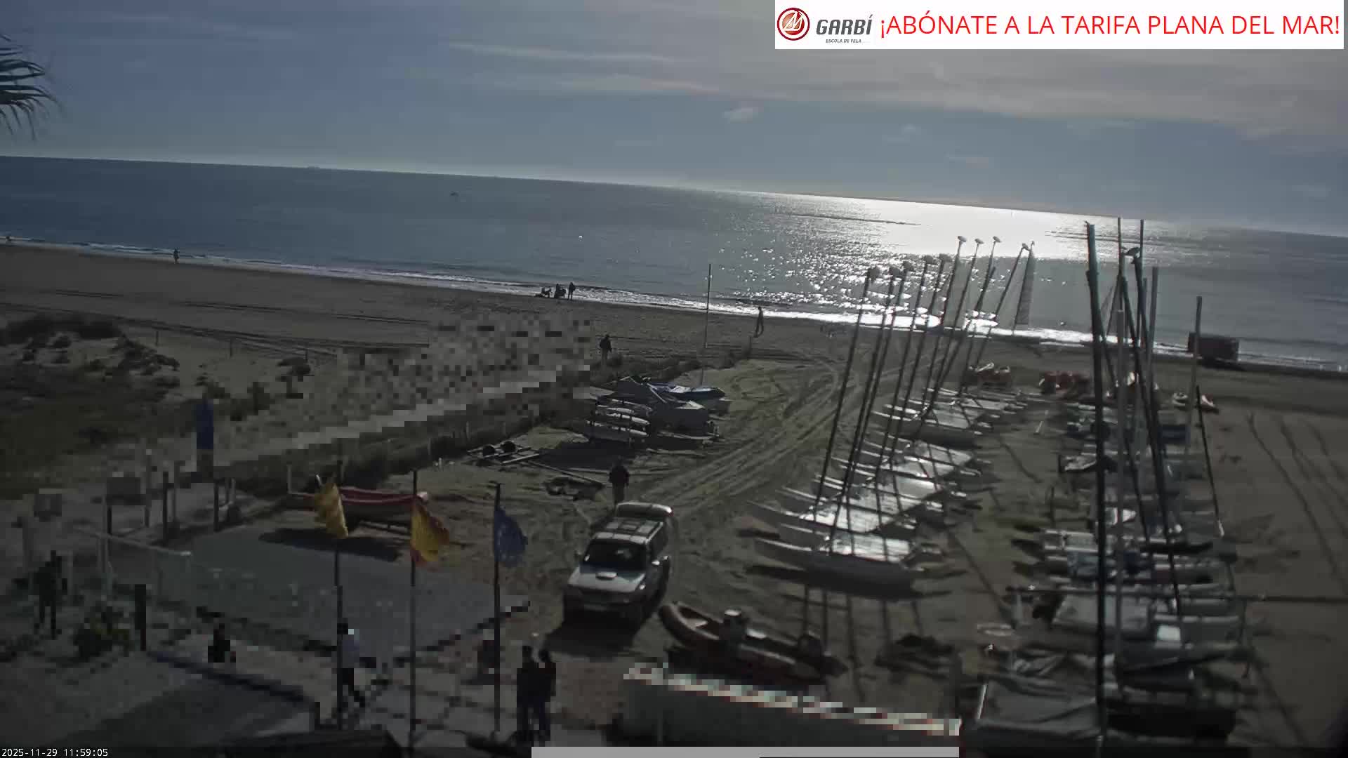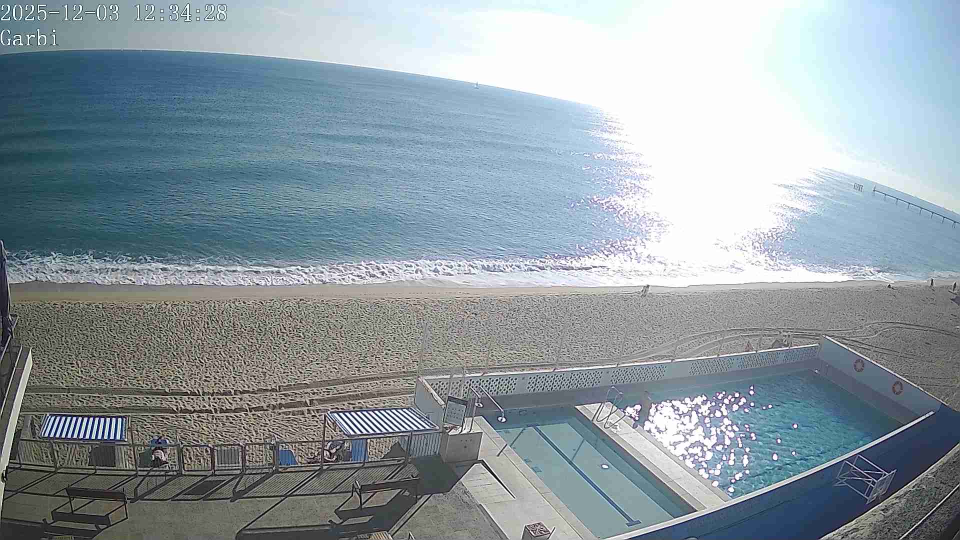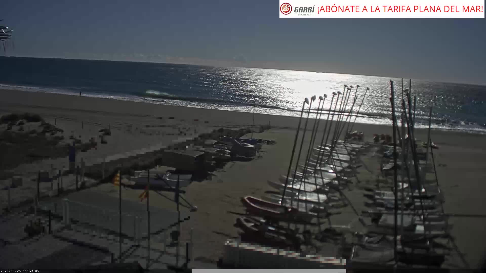- Live-Panoramablick über den Strand von der Strandpromenade von Barceloneta.
