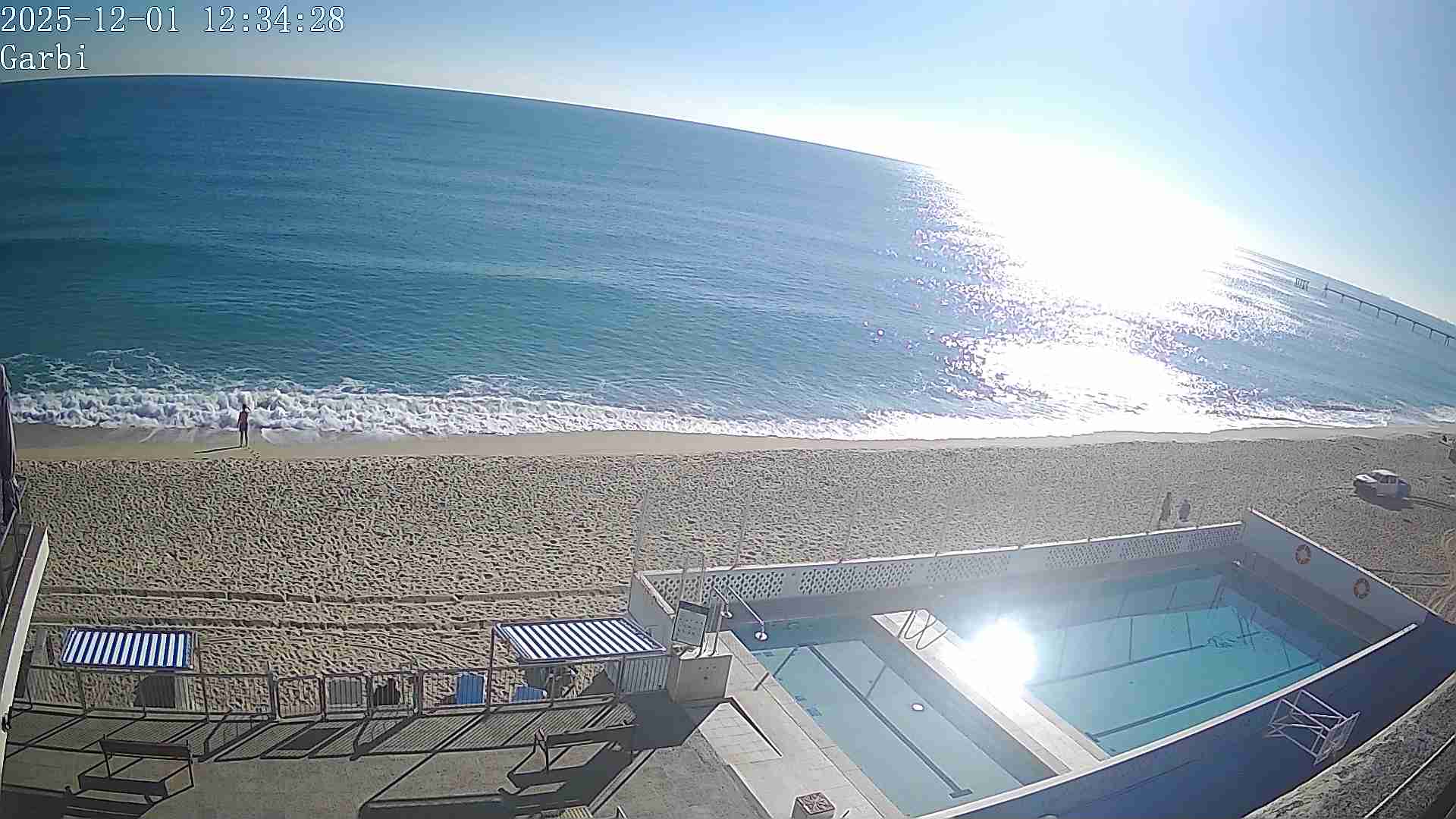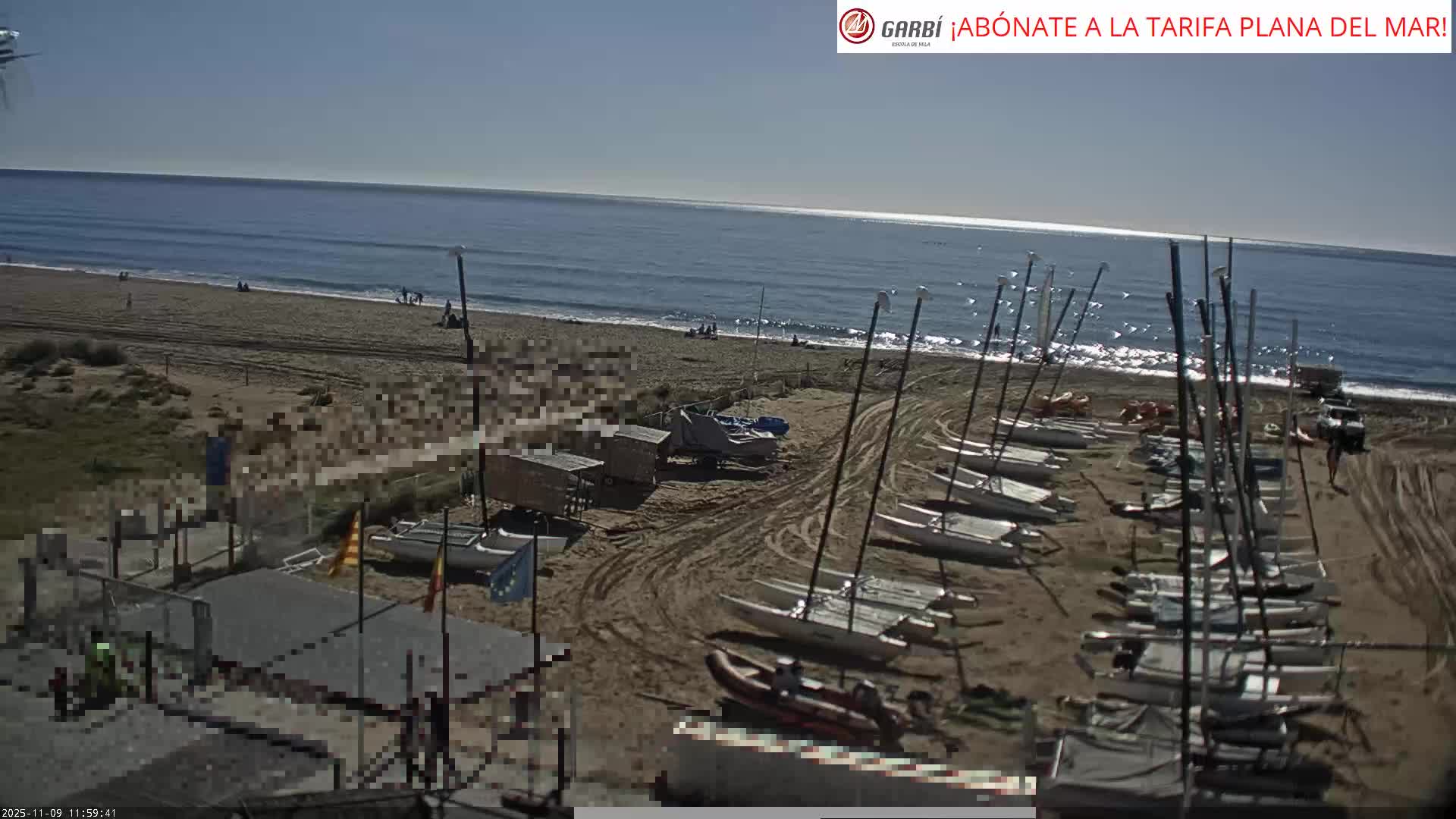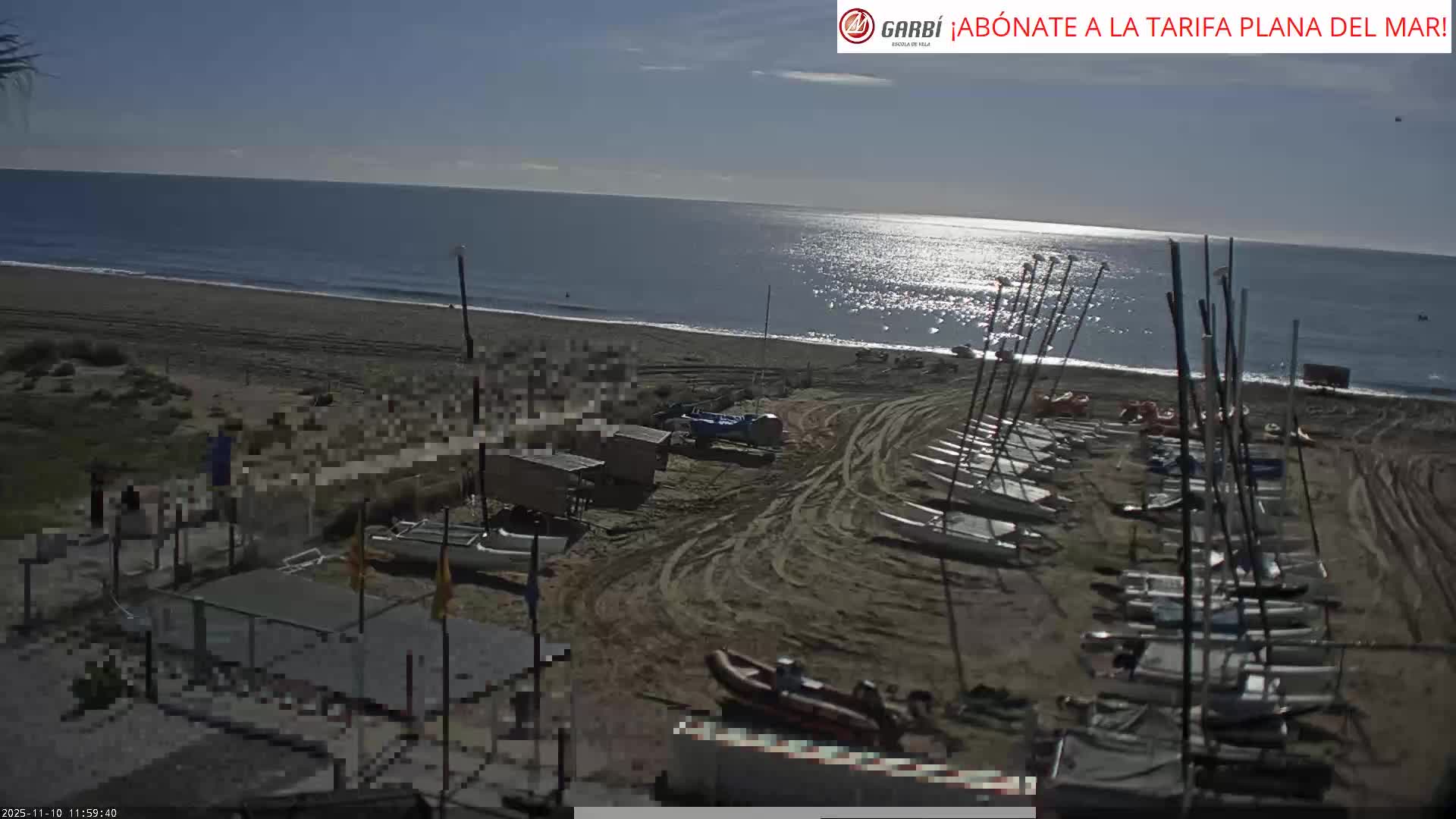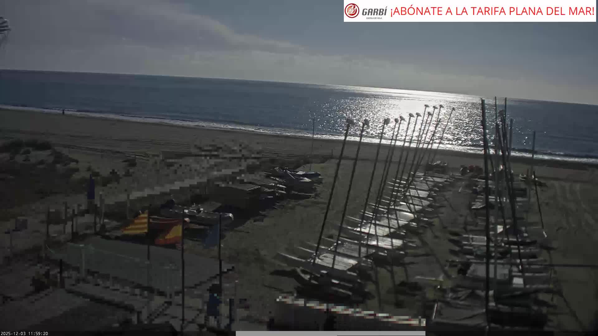 - Live-Panoramablick über den Strand von der Strandpromenade von Barceloneta.