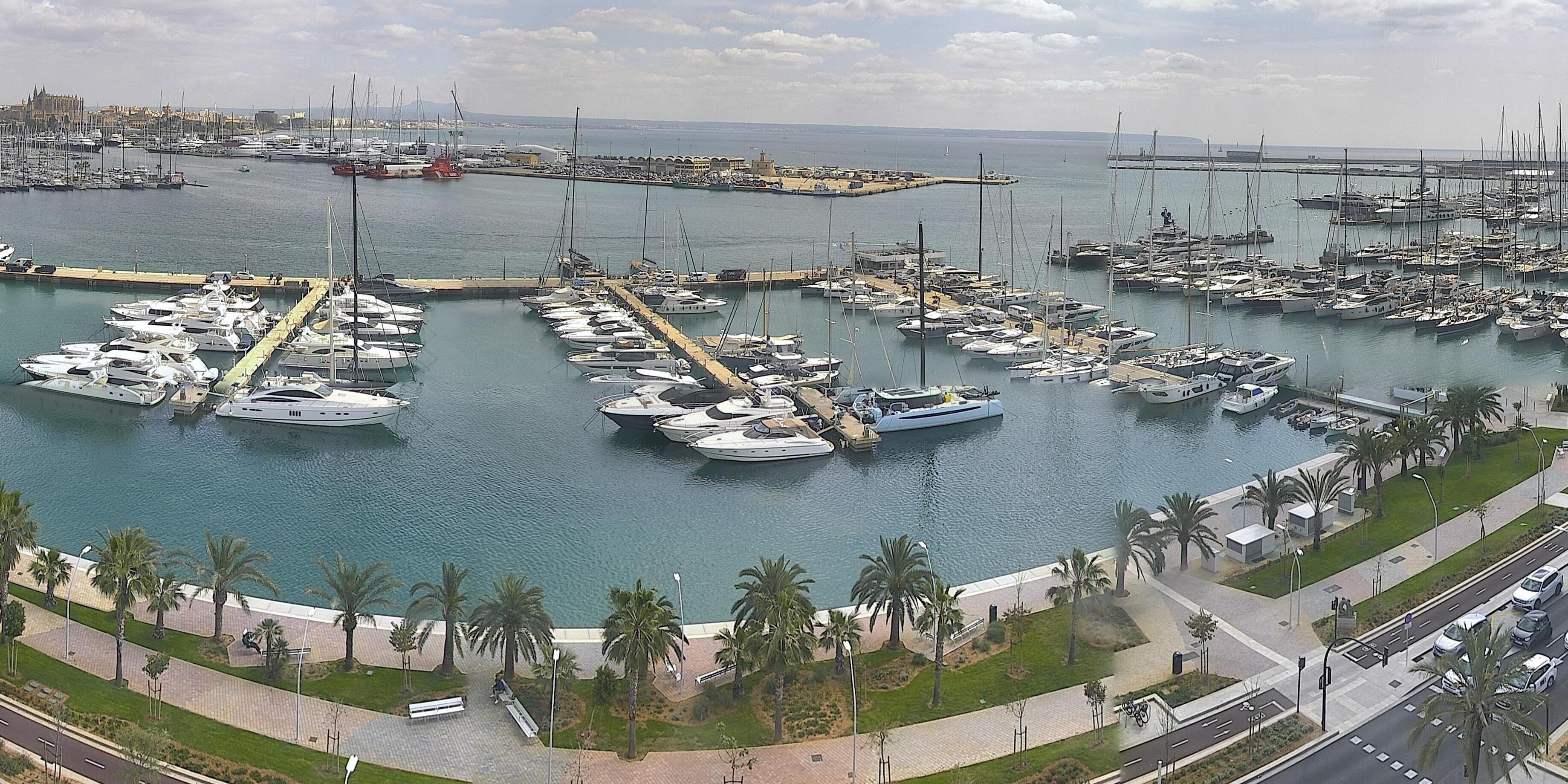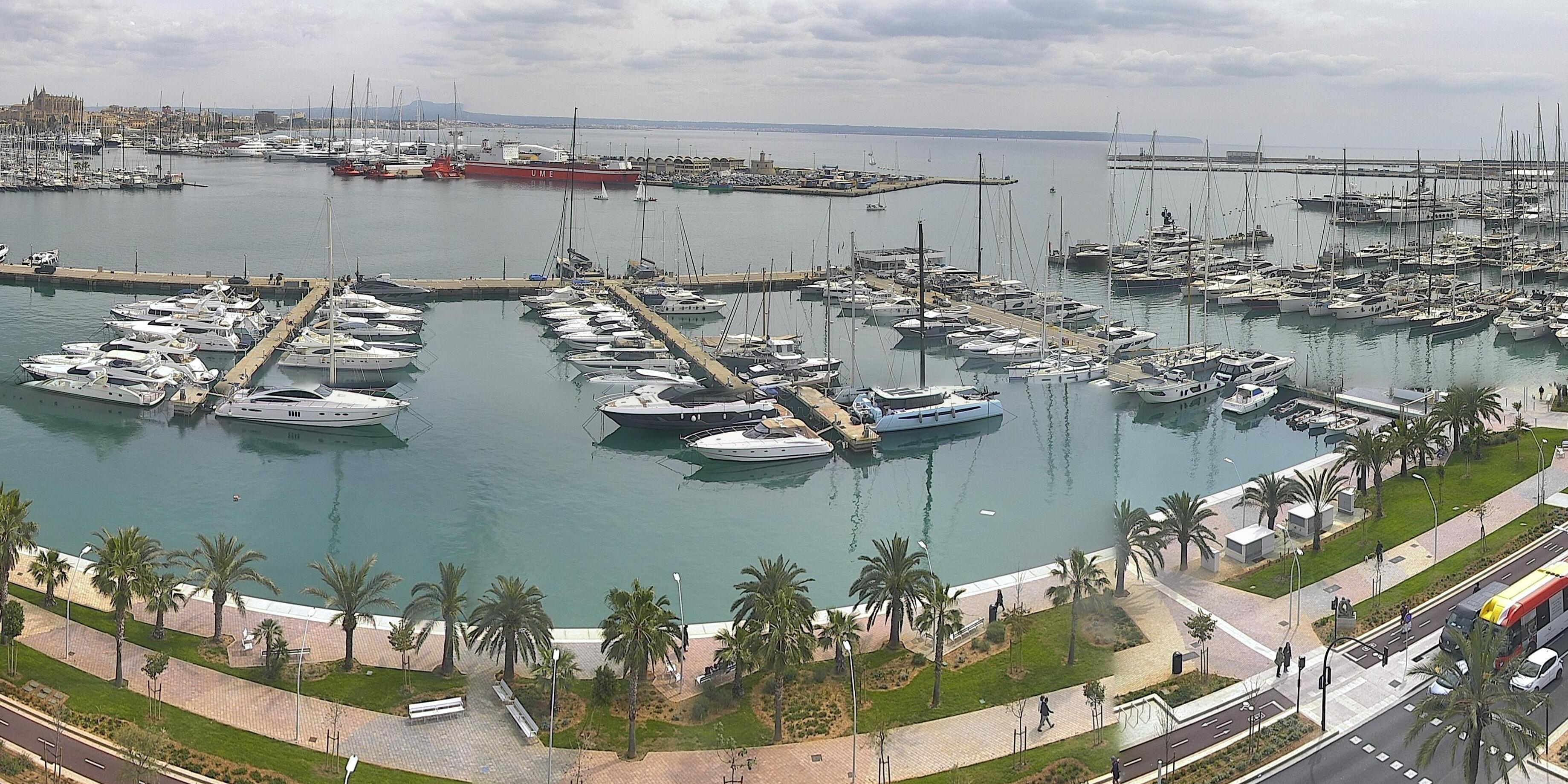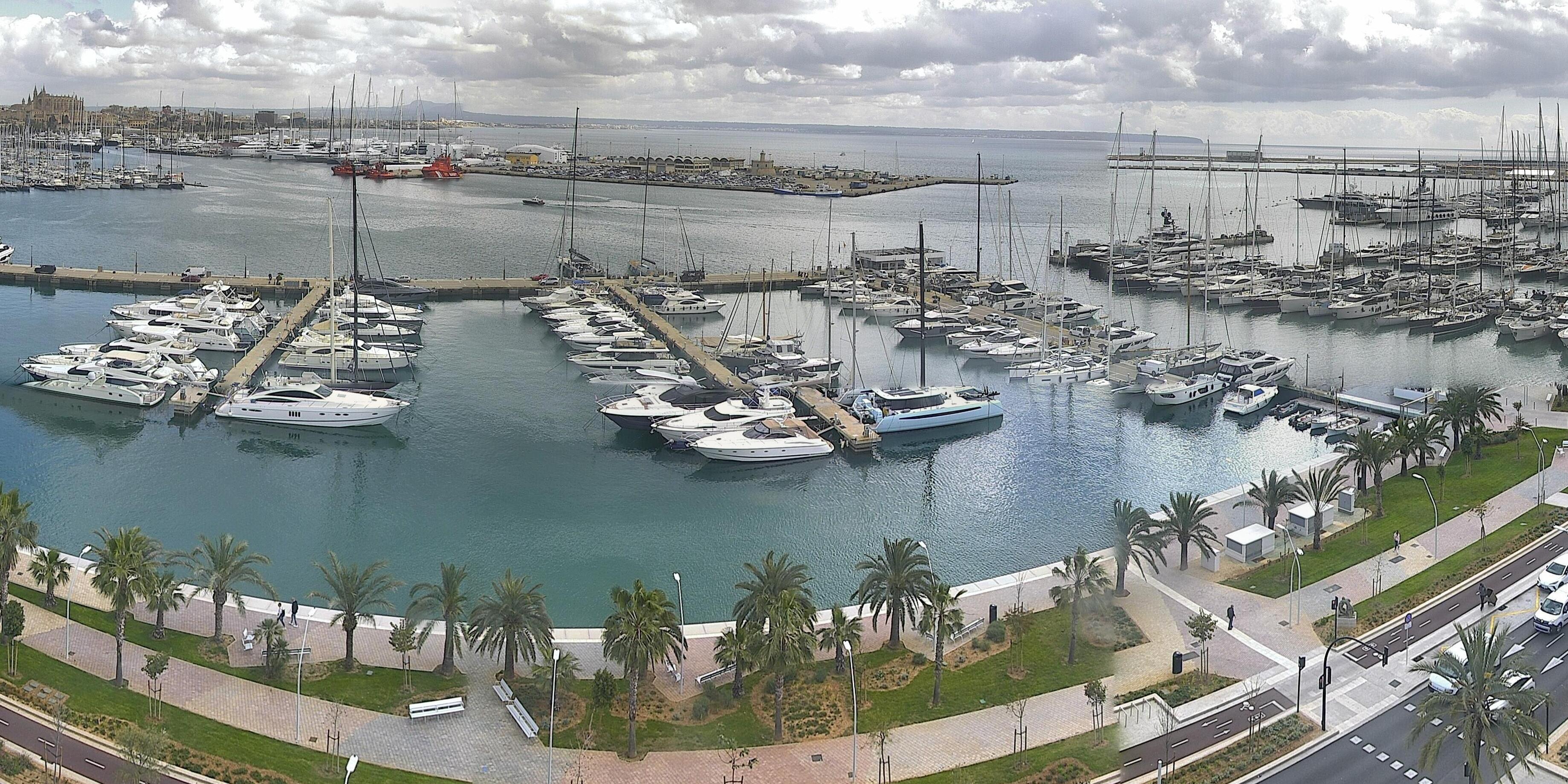 - Dies ist ein schöner Panoramablick über die Marina von Palma de Mallorca mit der Avinguda de Garbriel Roca im Vordergrund, besser bekannt als Passeig Maritime.