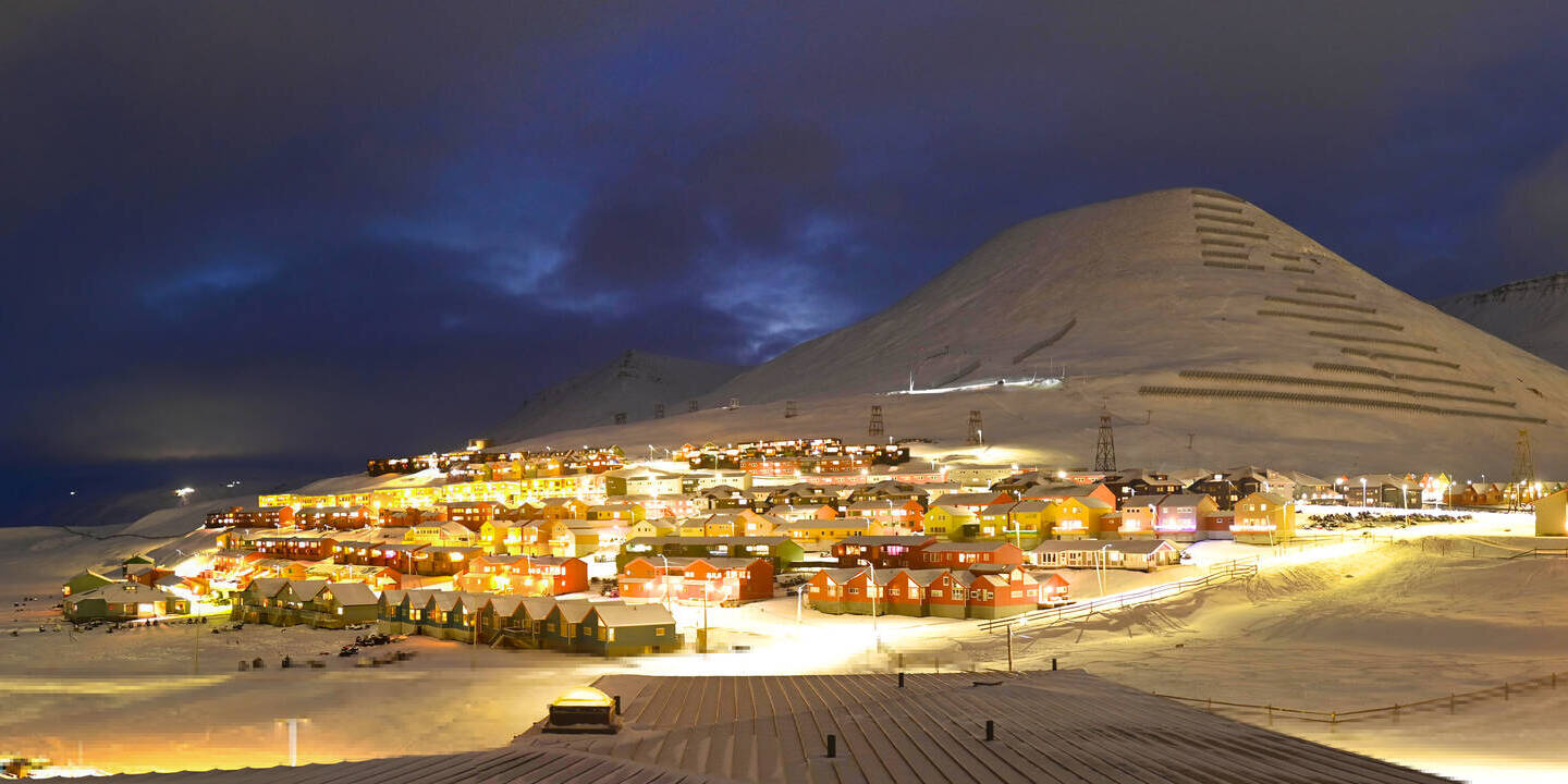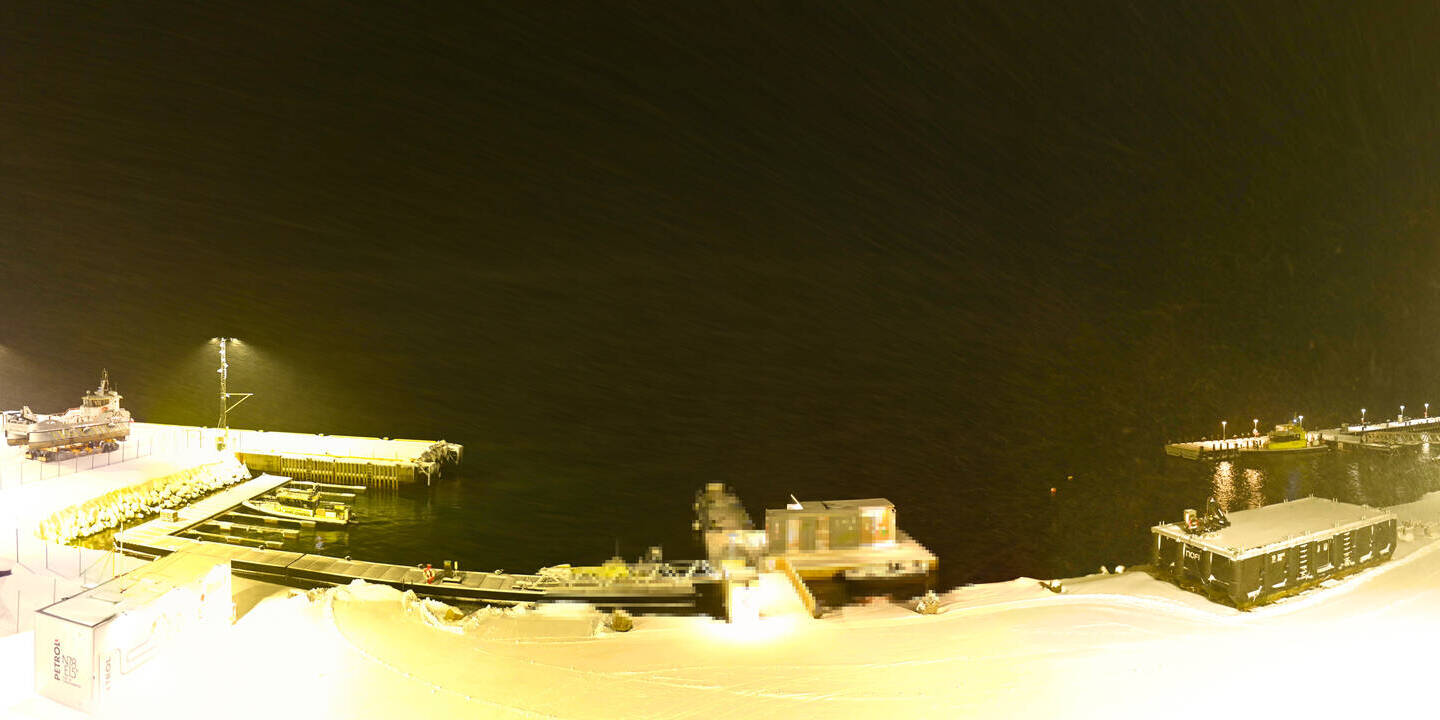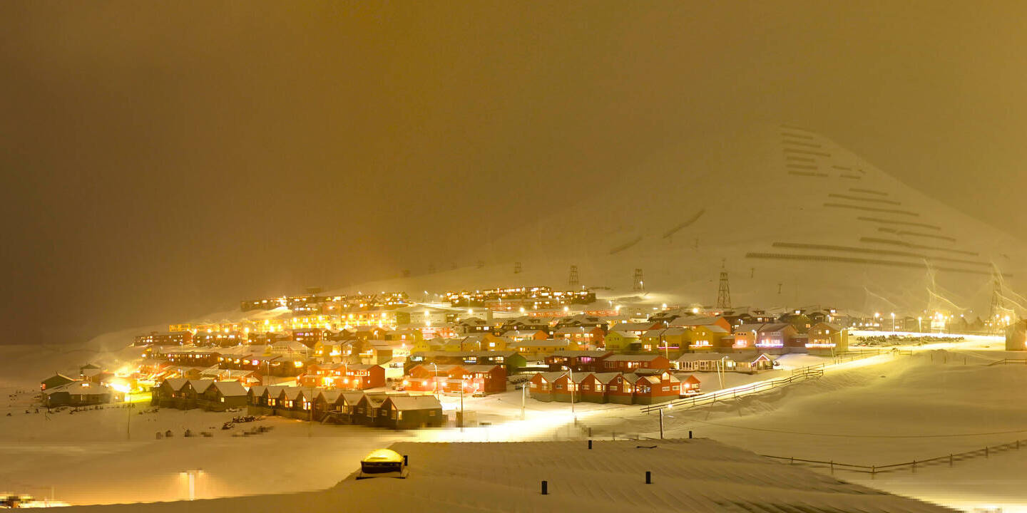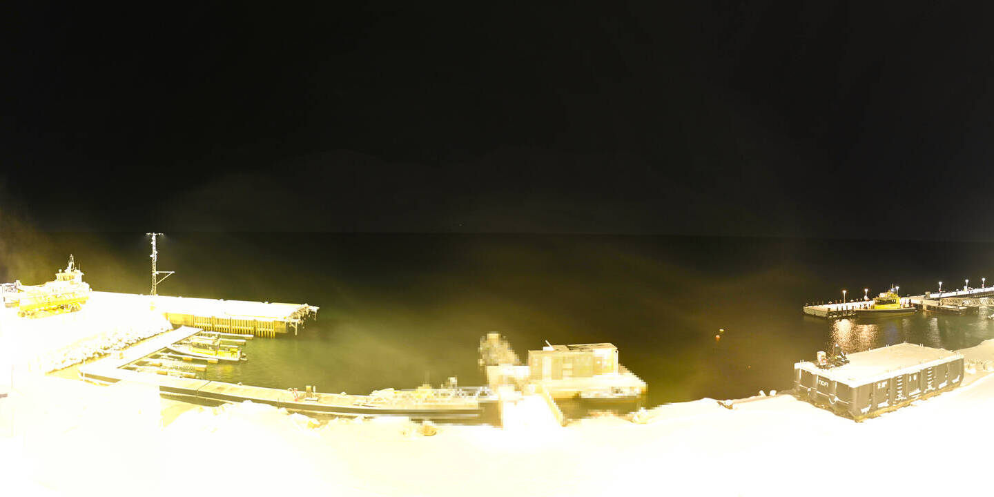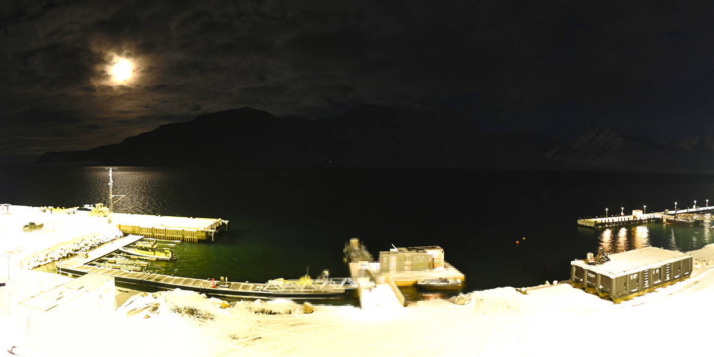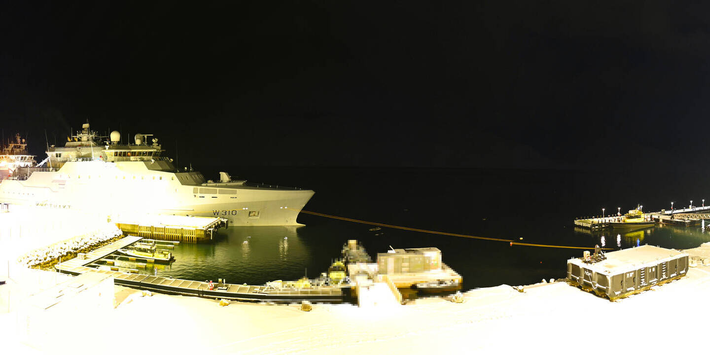 Longyearbyen (Spitsbergen), Norwegen - 36.5 km von Barentsburg: 360°-Panorama Hafen - Ein schöner Panoramablick über den Hafen von Longyearbyen, Spitzbergen.