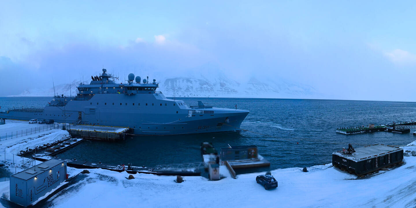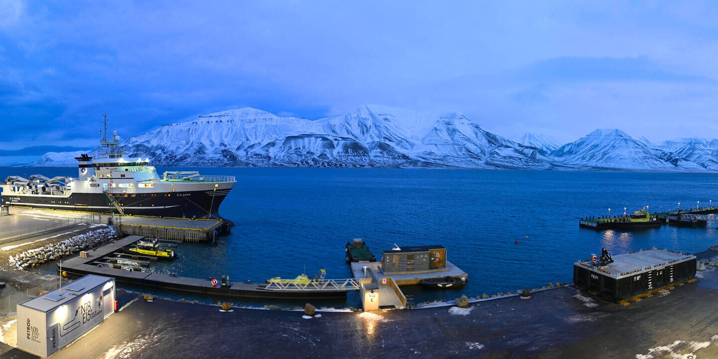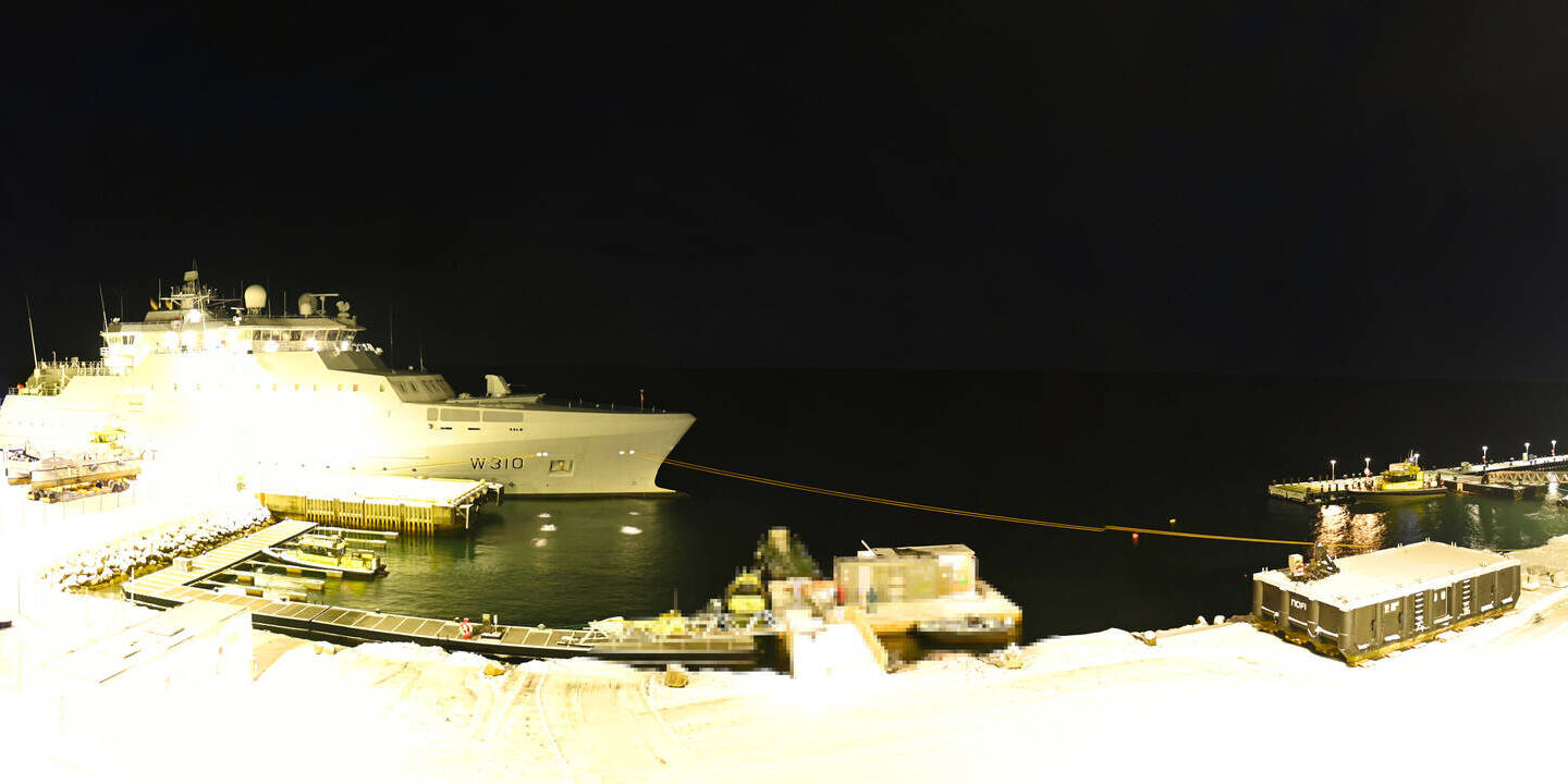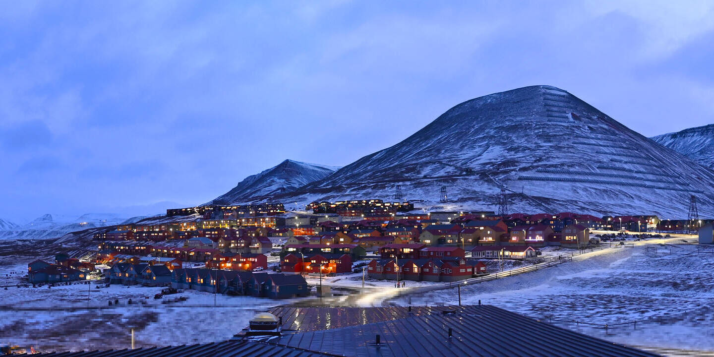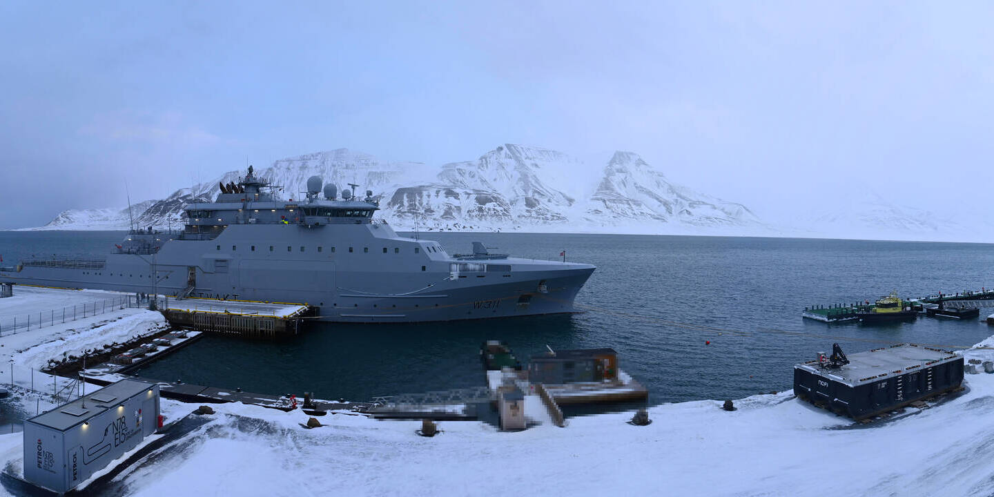 Longyearbyen (Spitsbergen), Norwegen - 36.5 km von Barentsburg: 360°-Panorama Hafen - Ein schöner Panoramablick über den Hafen von Longyearbyen, Spitzbergen.