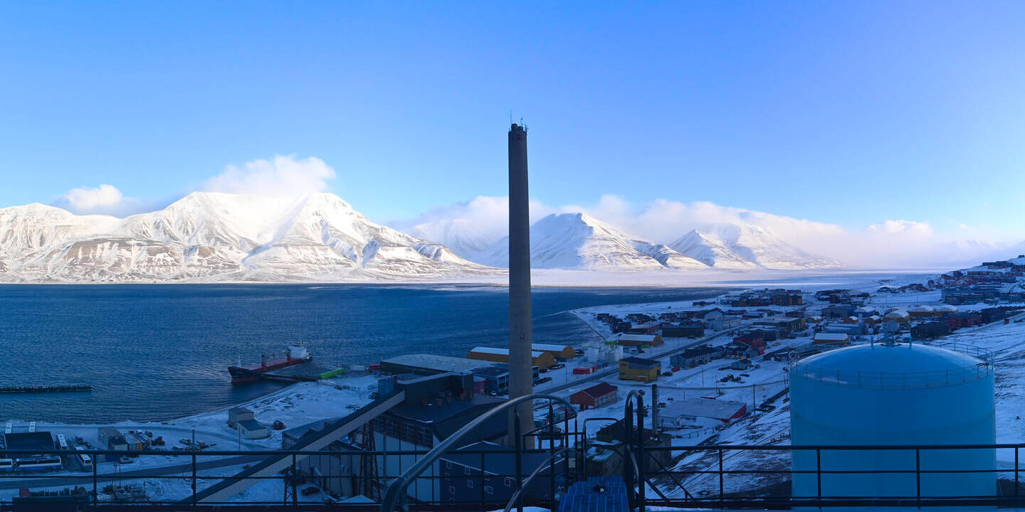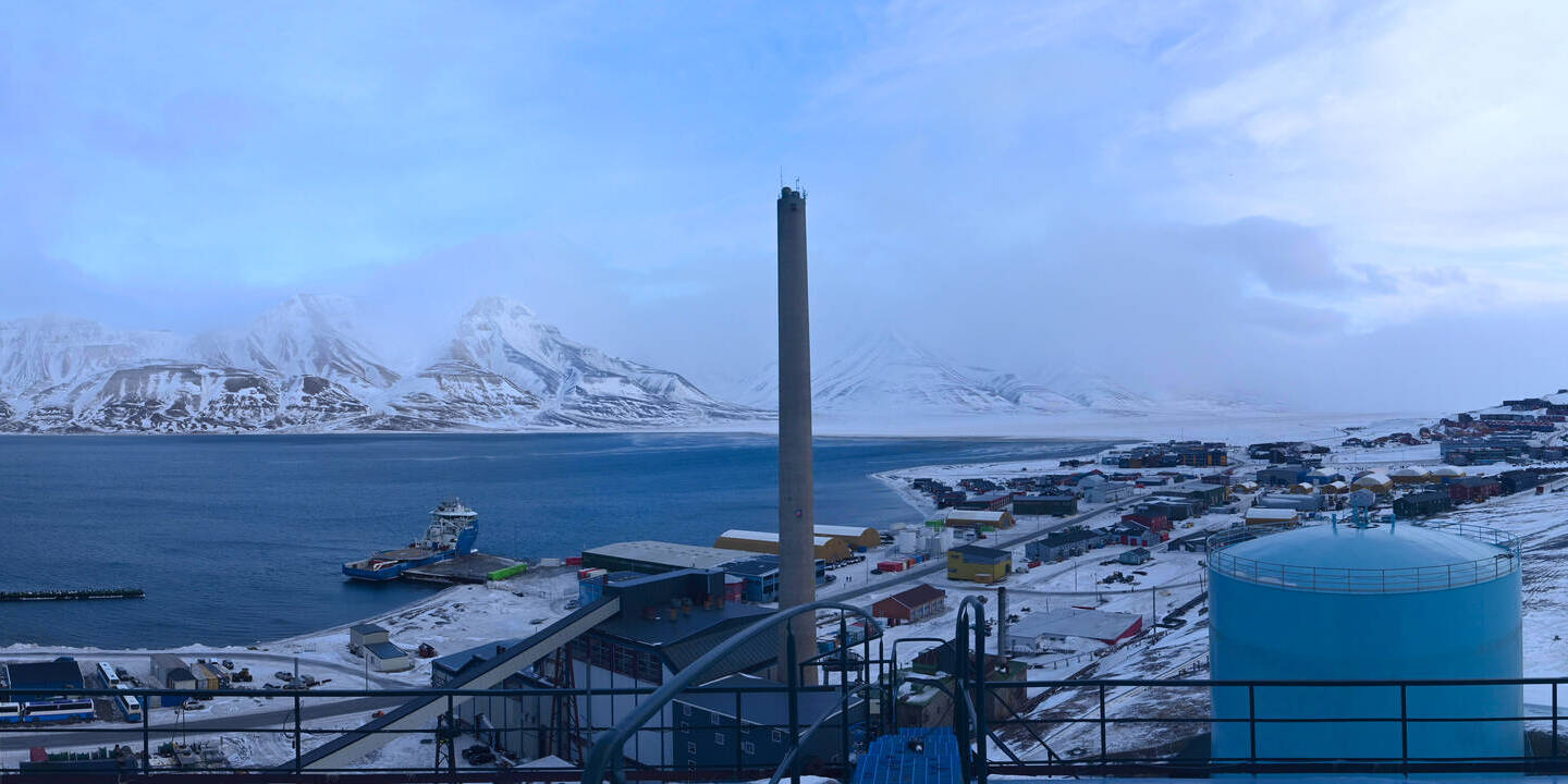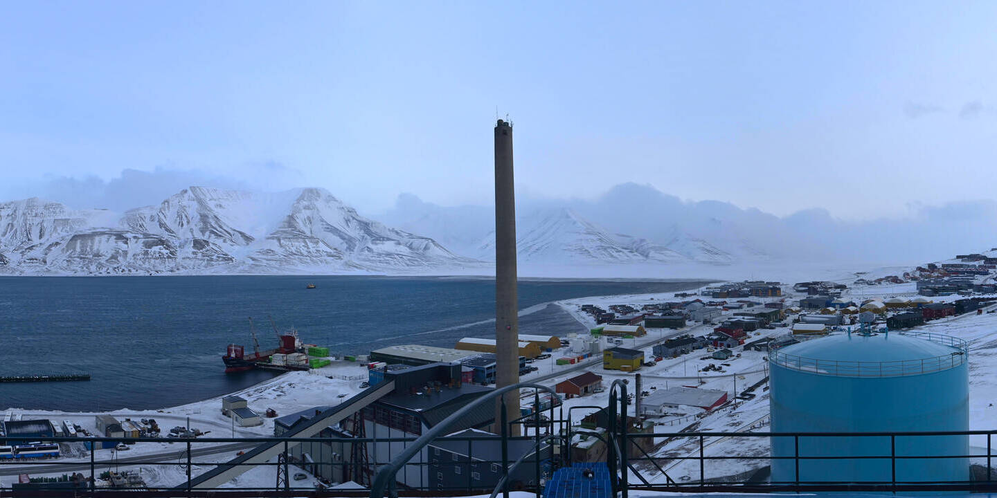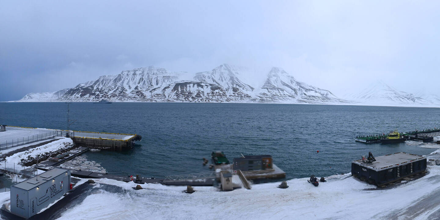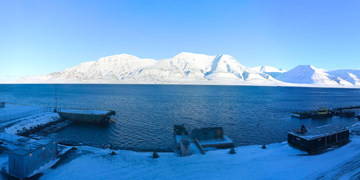 Ny-Ålesund (Spitsbergen), Norwegen - 108.2 km von Barentsburg: Panorama auf Ny-Ålesund - Ein herrlicher Blick von der Zeppelinstation des Norsk Polarinstitutt.