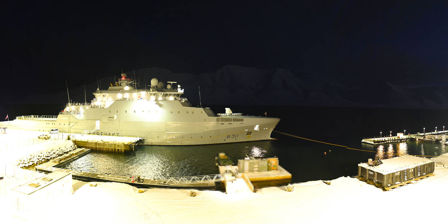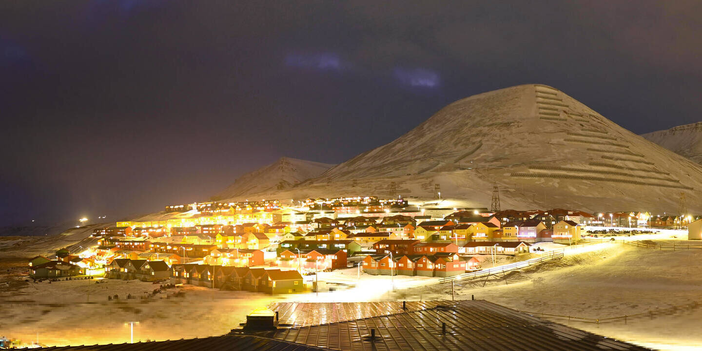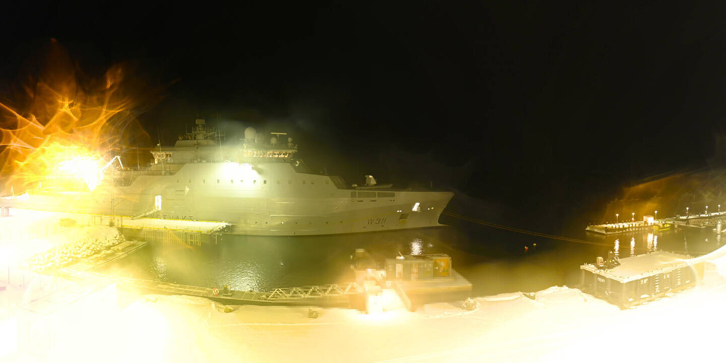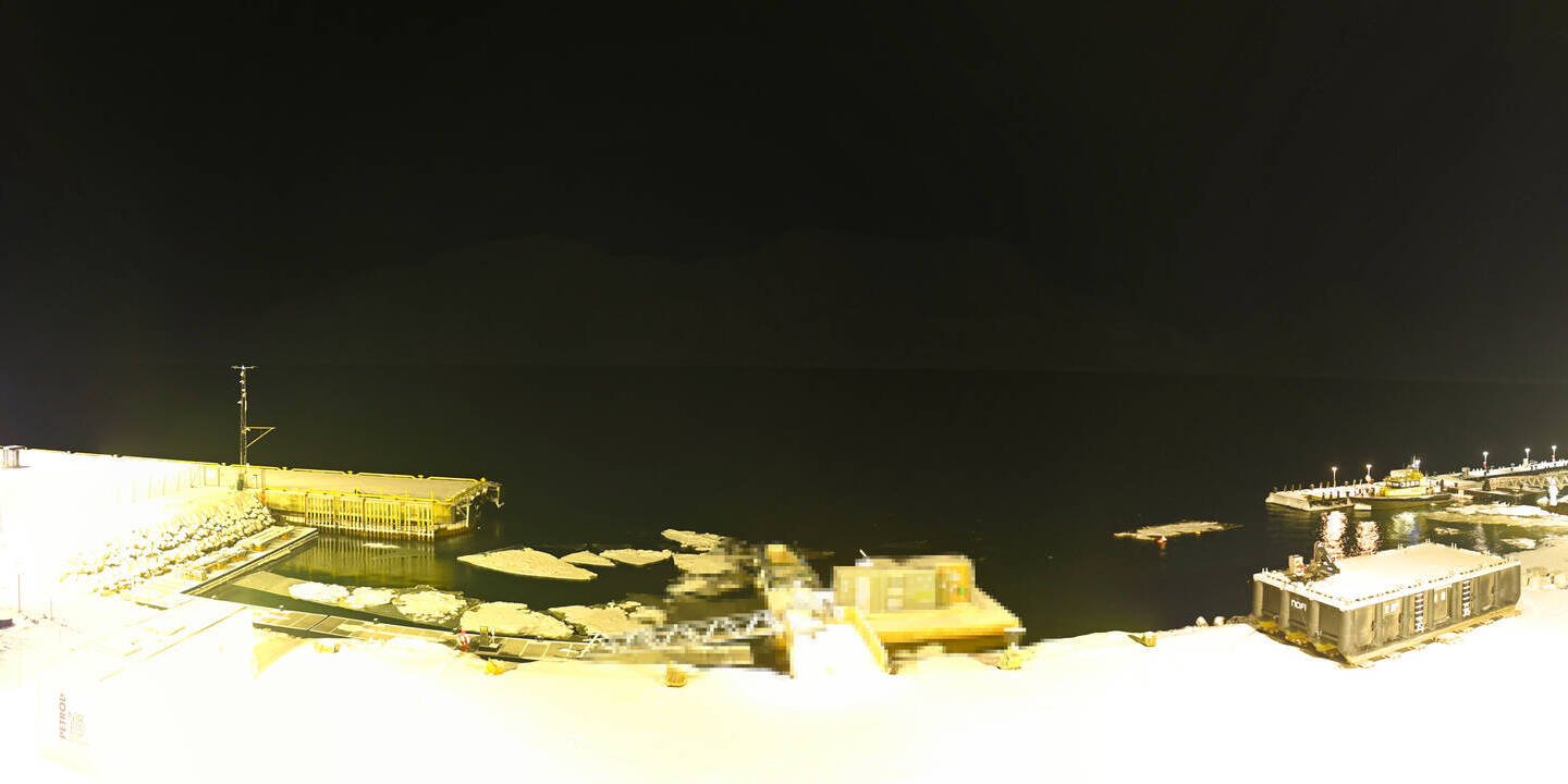 Longyearbyen (Spitsbergen), Norwegen - 0.4 km von Funksjonarbyen: 360°-Panorama Hafen - Ein schöner Panoramablick über den Hafen von Longyearbyen, Spitzbergen.
