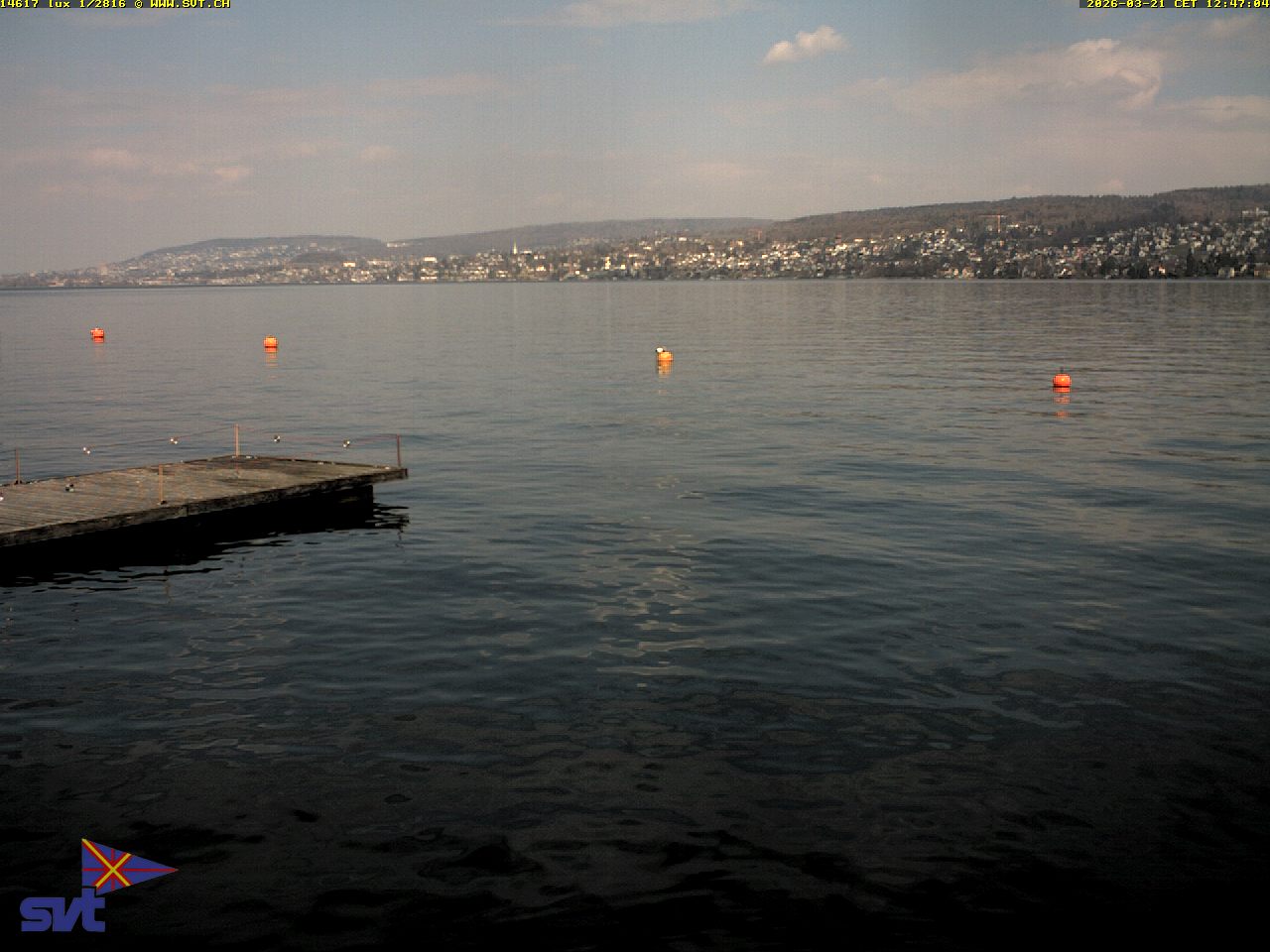 - Ein Blick über den Zürichsee vom Clubhaus der Segler-Vereinigung Thalwil.