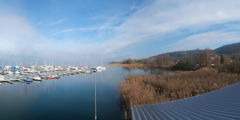 Morges, Schweiz - 23.2 km von Agiez: 250°-Panorama Hafen