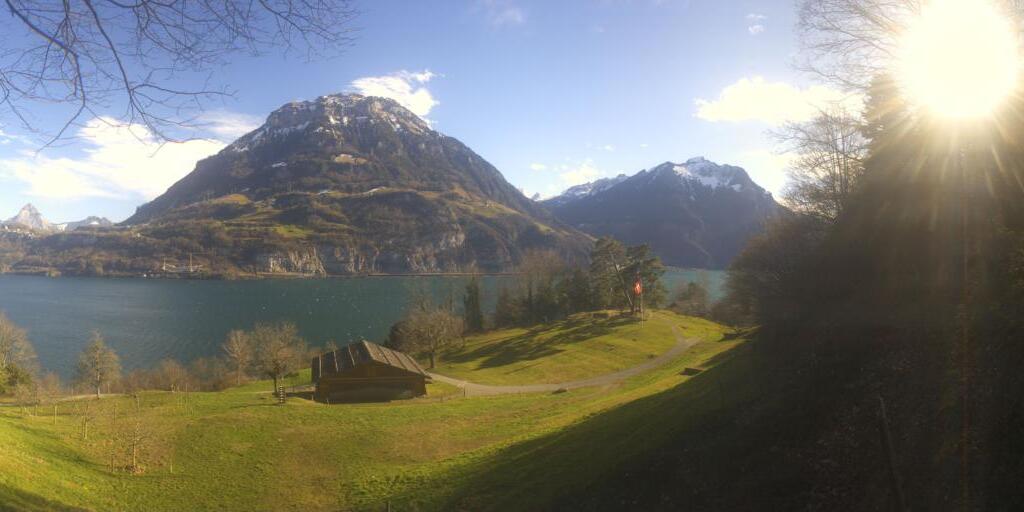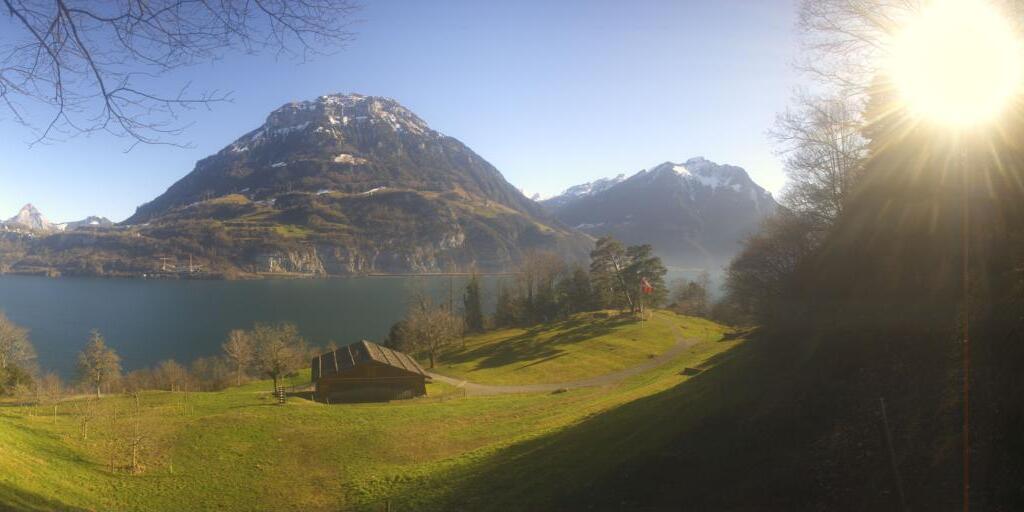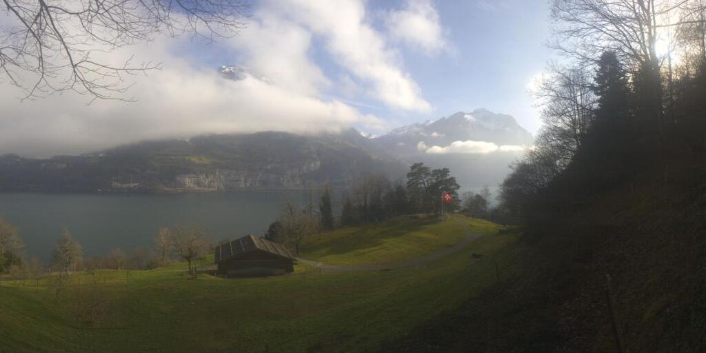 Rütli, Schweiz - 10.4 km von Altdorf: 160°-Panorama Rütliwiese