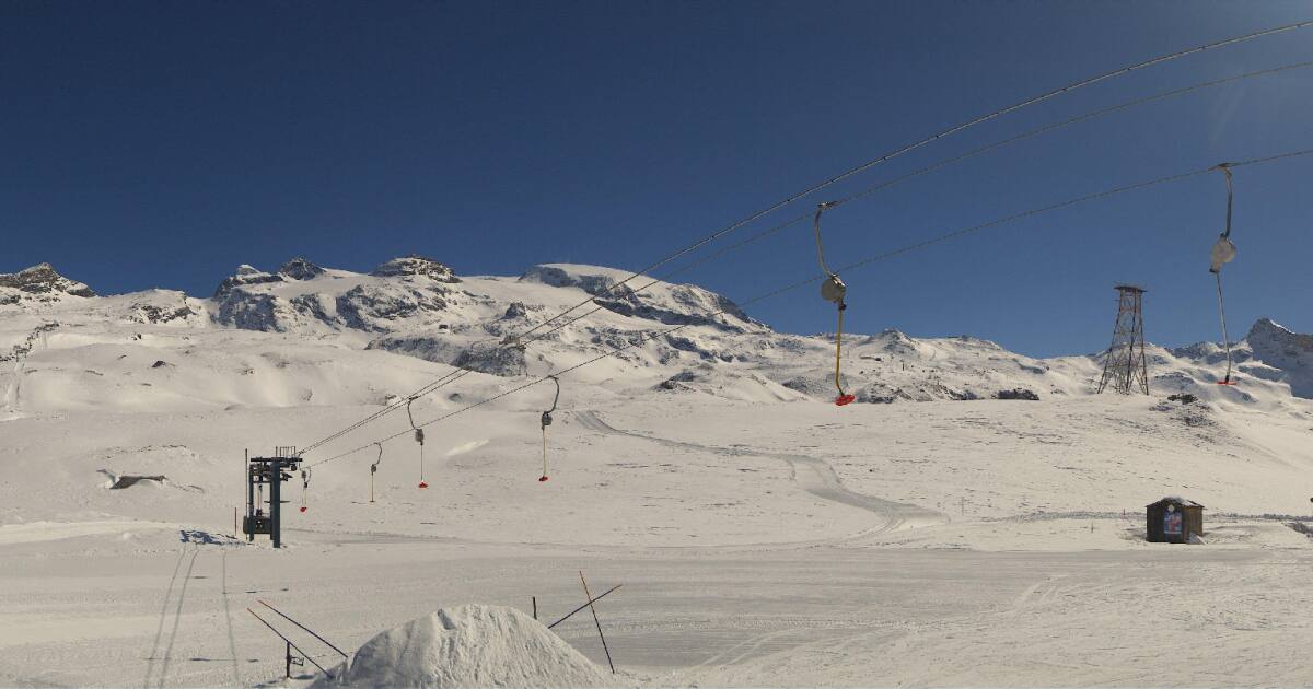 - Blick auf die Skipisten von Cervinia vom Plateau Rosa nach Valtournenche.