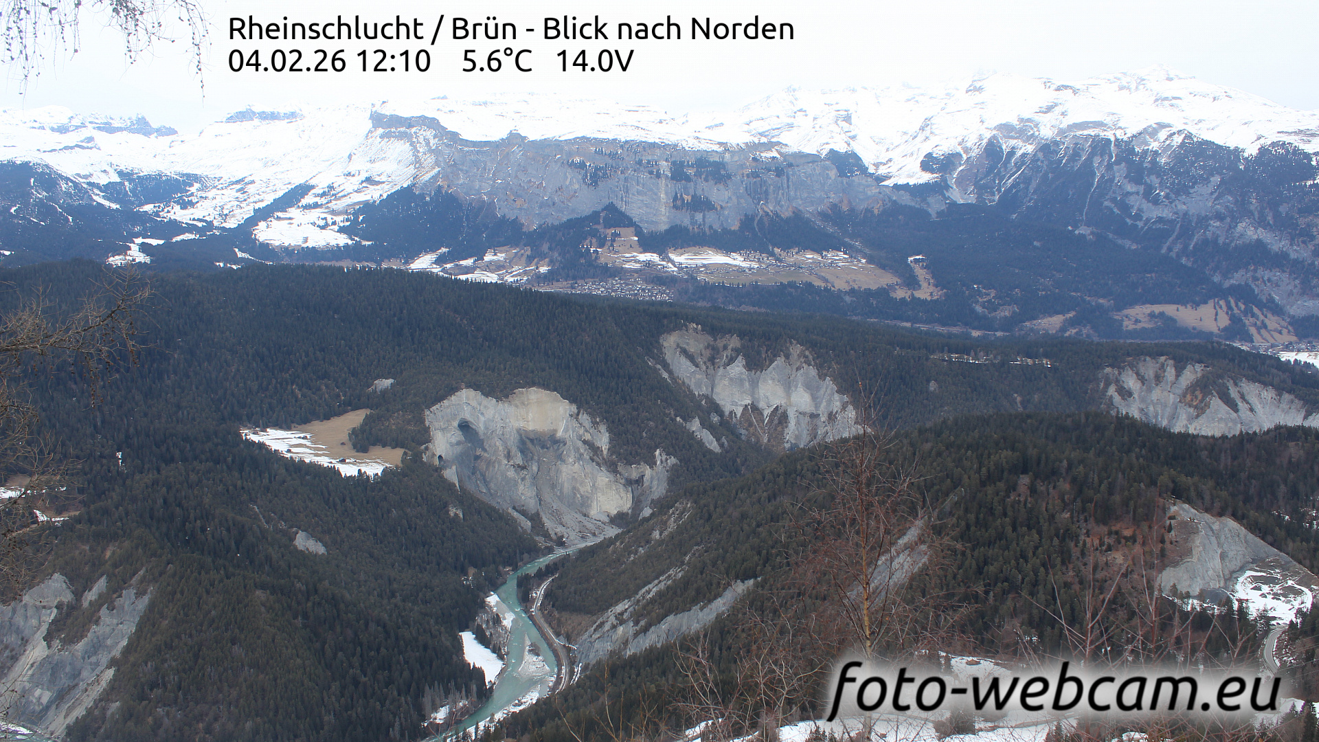 Valendas, Schweiz - 10.9 km von Cumbels: HD Foto-Webcam Rheinschlucht