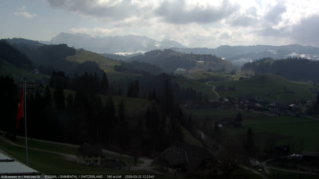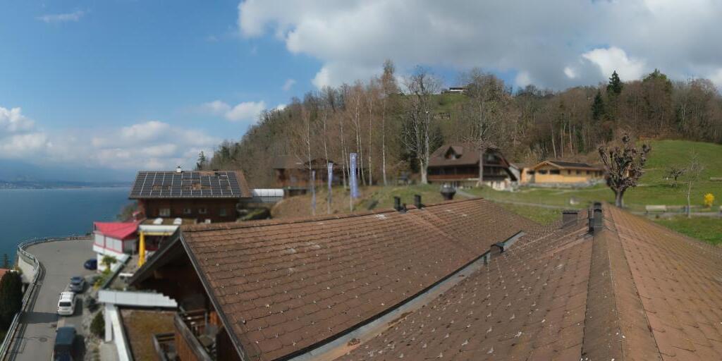 Beatenberg, Schweiz - 9.6 km von Eriz: Webcam Chalet Birkli - Mit dieser Webcam können Sie die wunderbare Aussicht auf Eiger, Mönch und Jungfrau, stündlich aktualisiert, sehen.