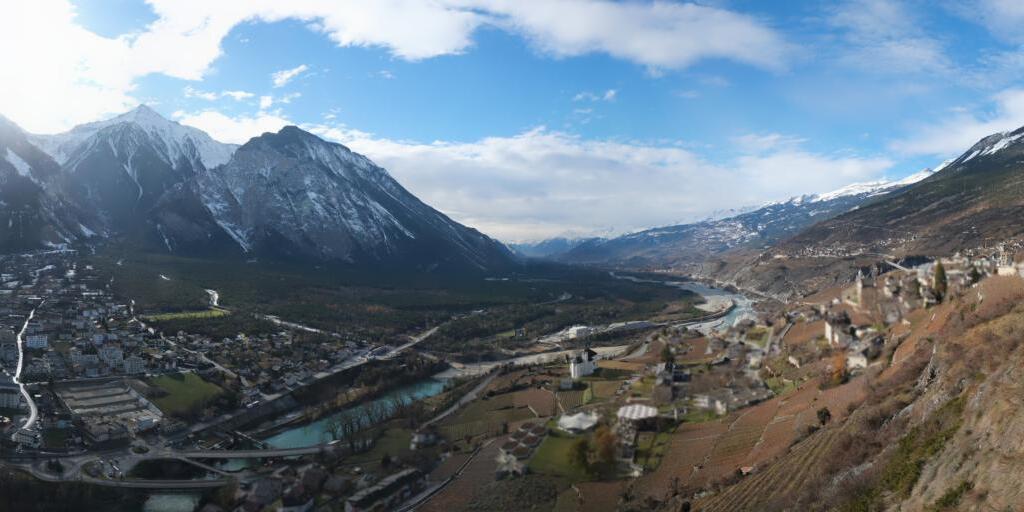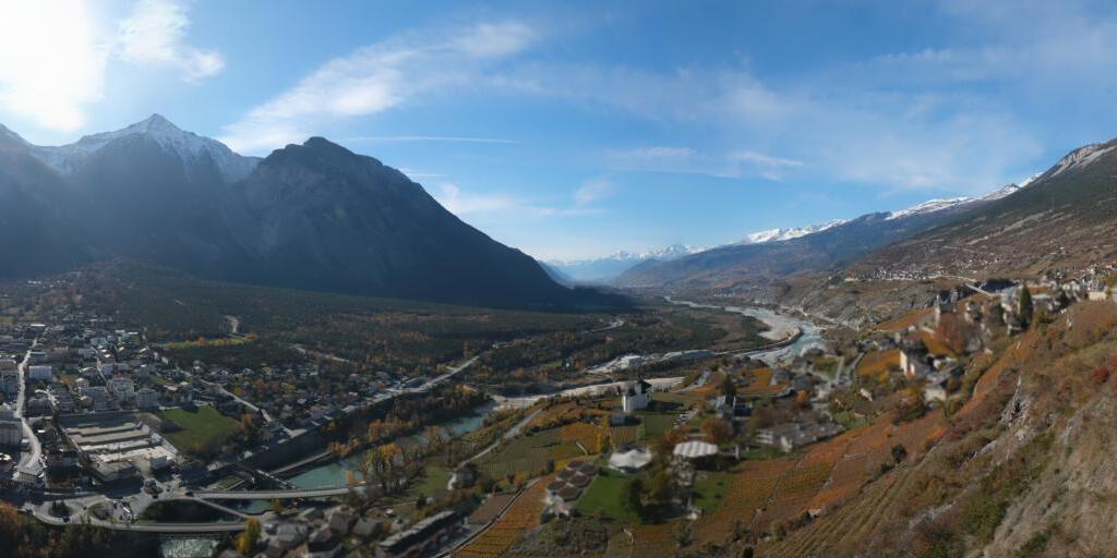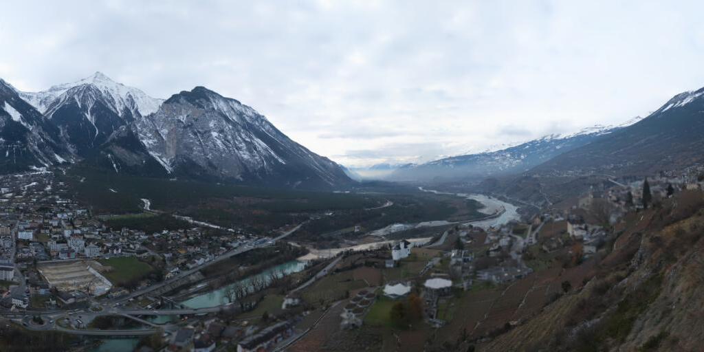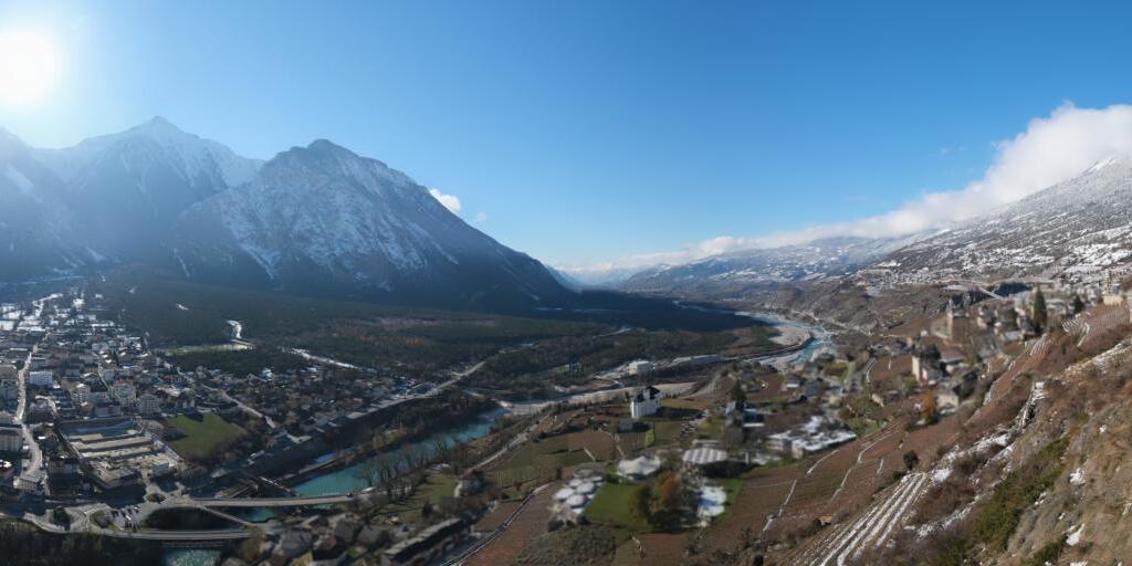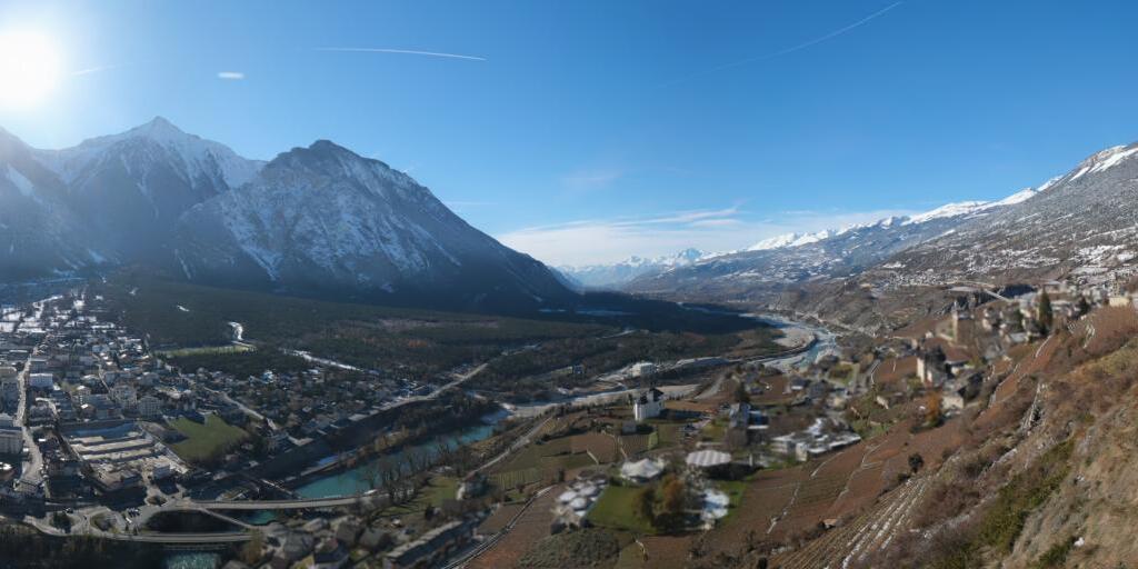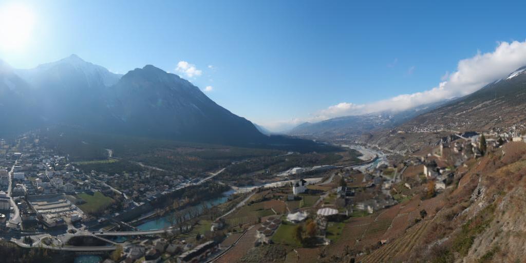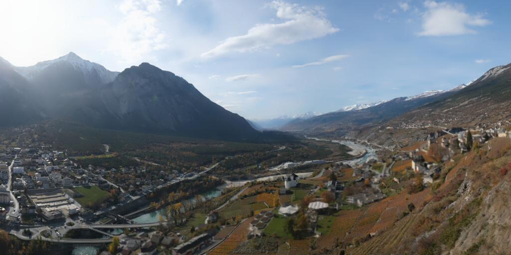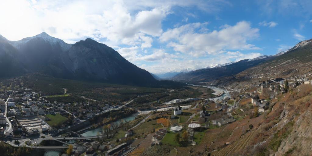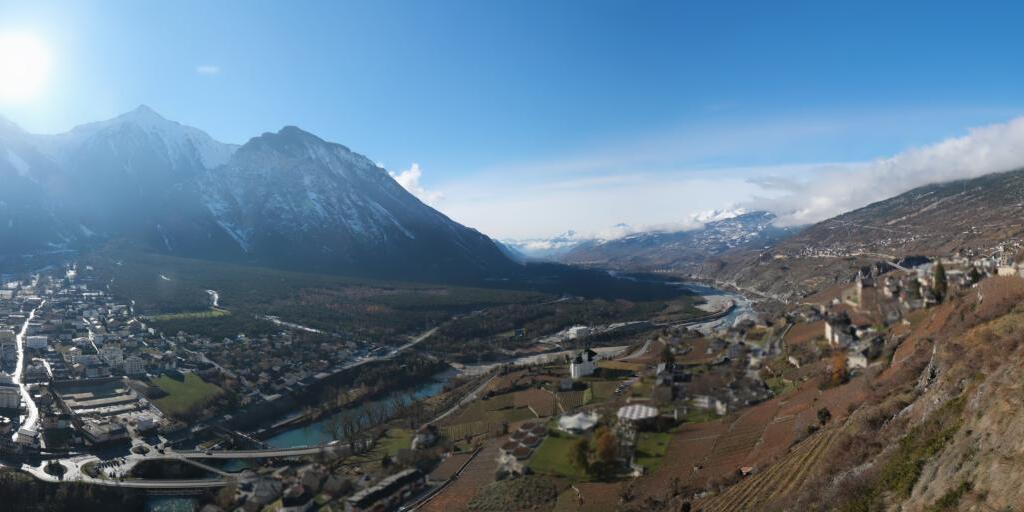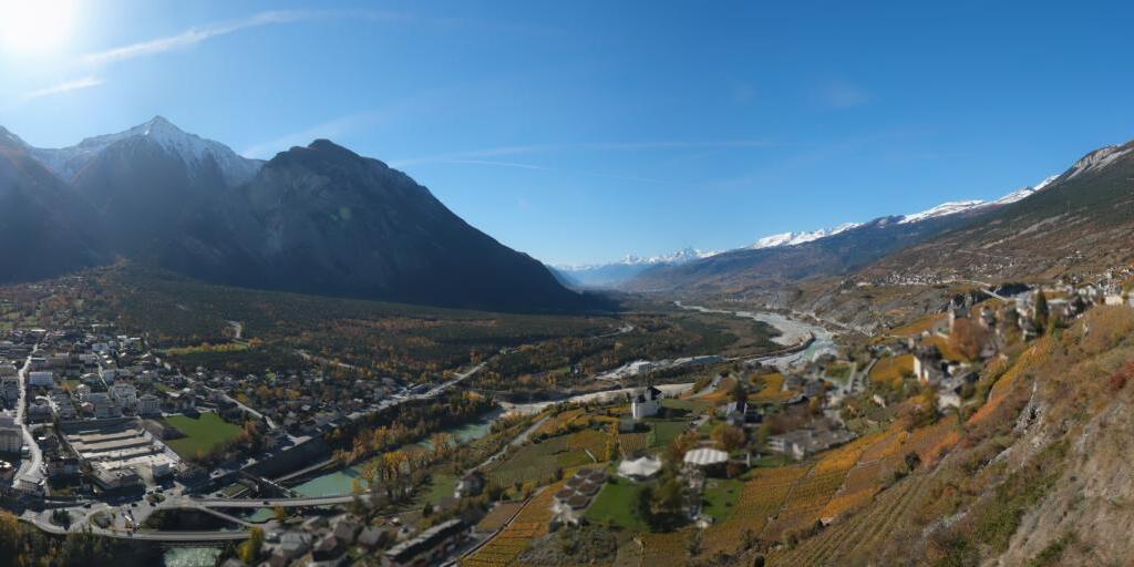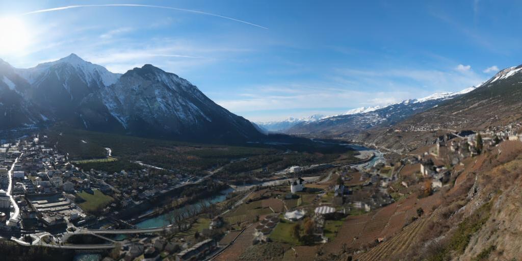 Leuk, Schweiz - 9.6 km von Fluhalp: 360°-Panorama Leuk - Dorf