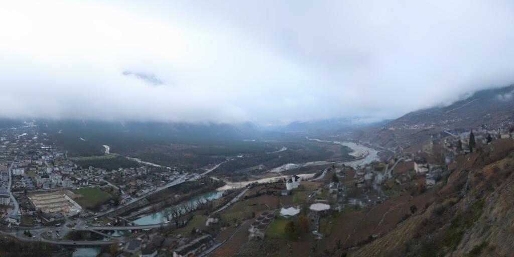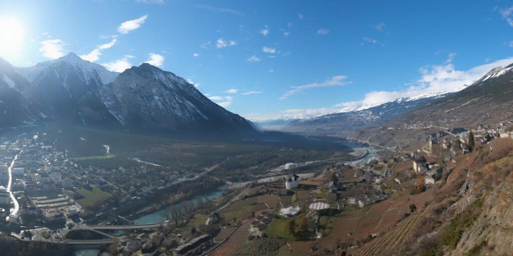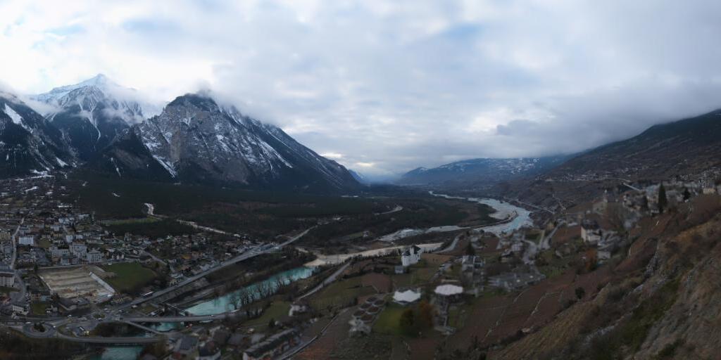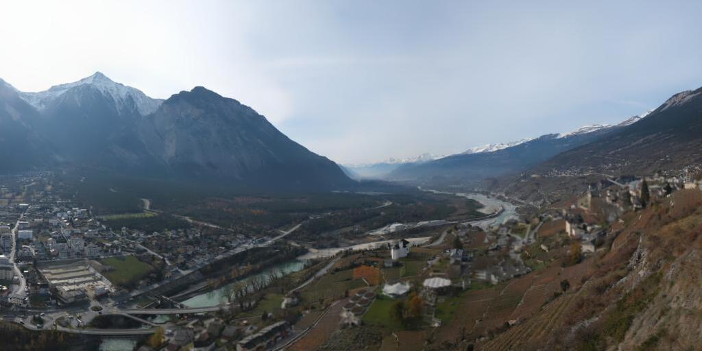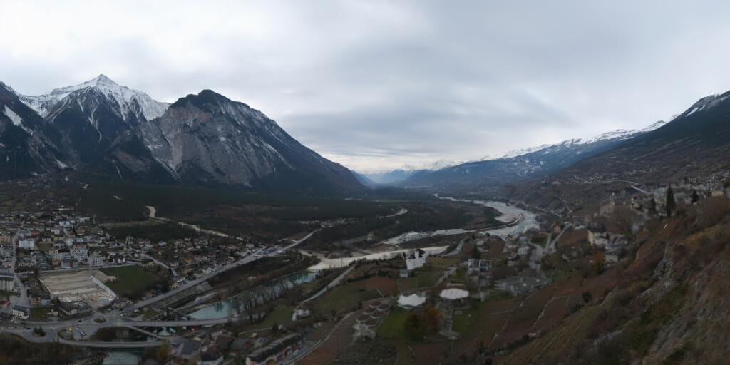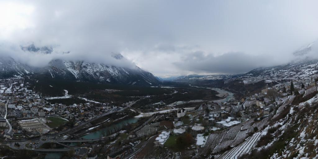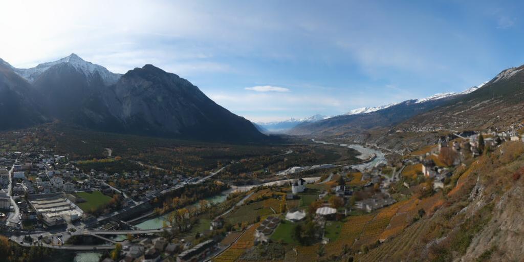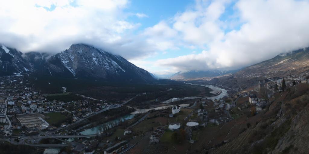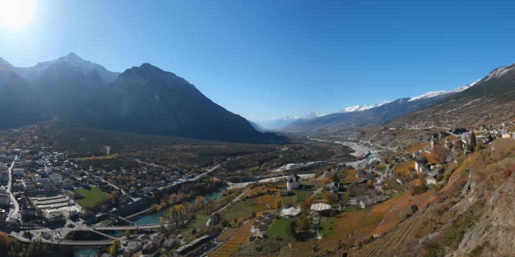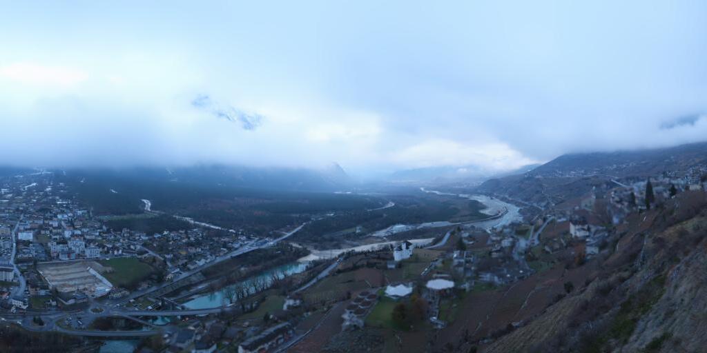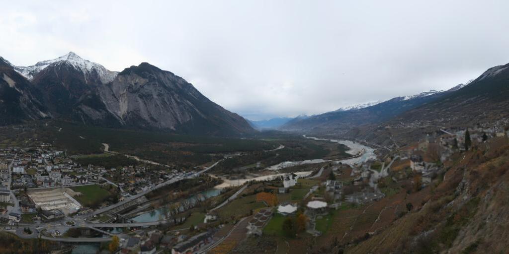 Leuk, Schweiz - 9.6 km von Fluhalp: 360°-Panorama Leuk - Dorf