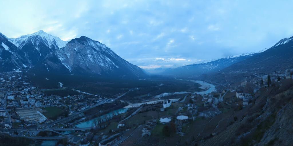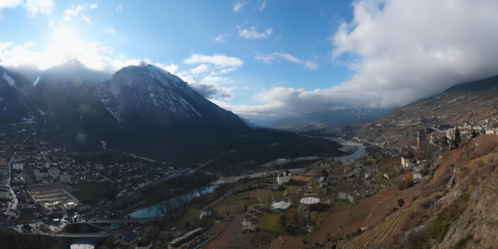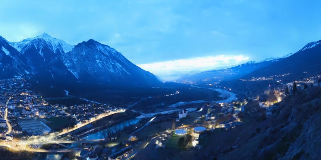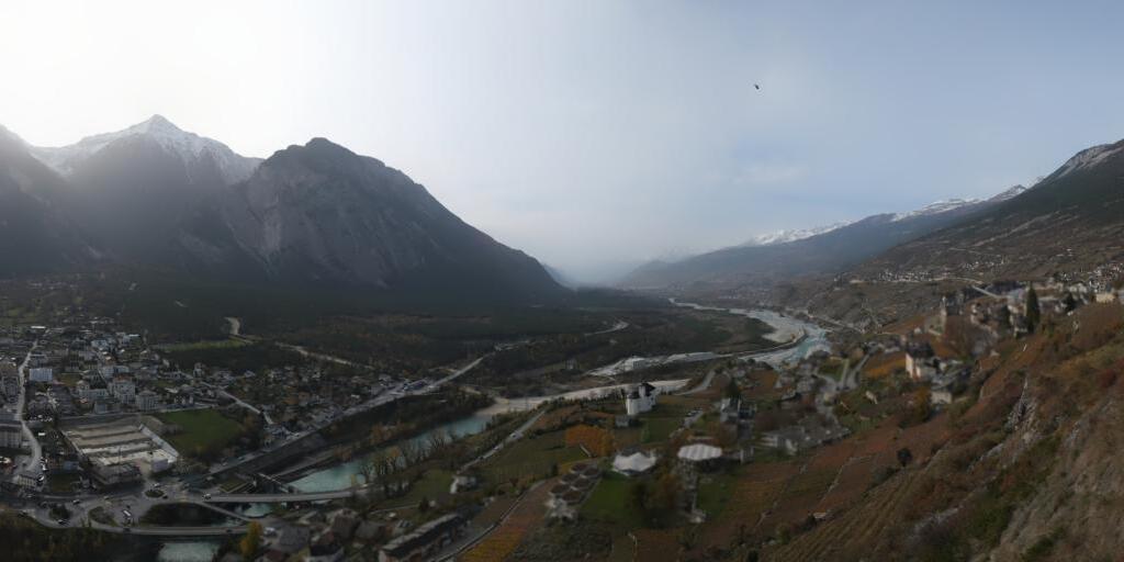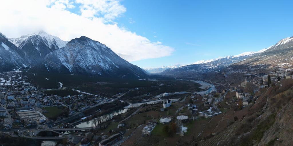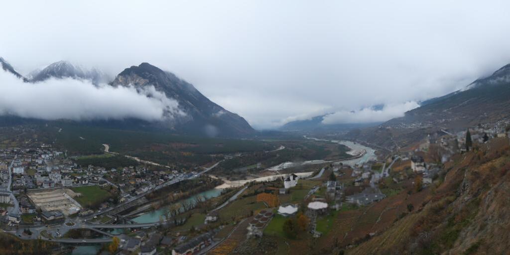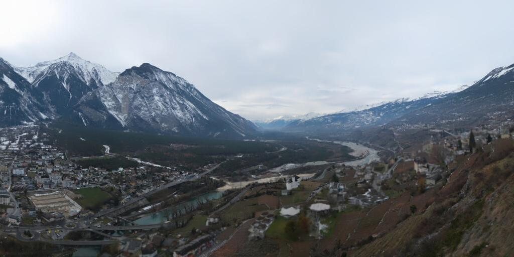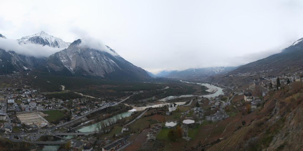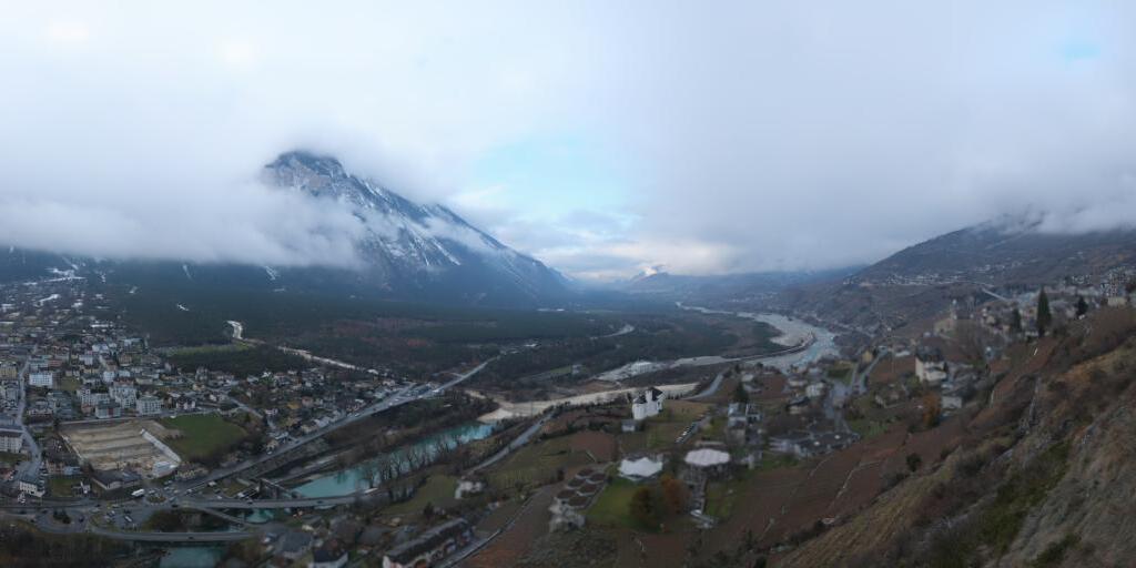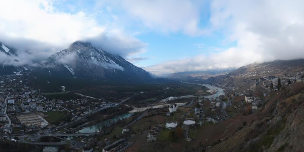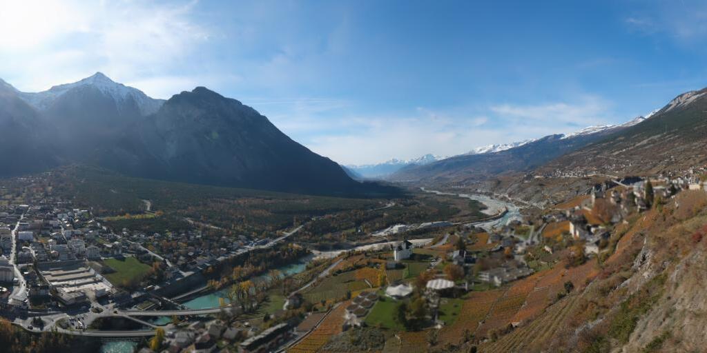 Leuk, Schweiz - 9.6 km von Fluhalp: 360°-Panorama Leuk - Dorf