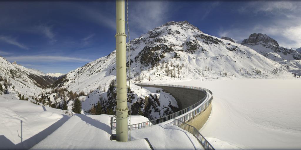 Oberems, Schweiz - 1.6 km von Gruben: 360°-Panorama Turtmann Damm