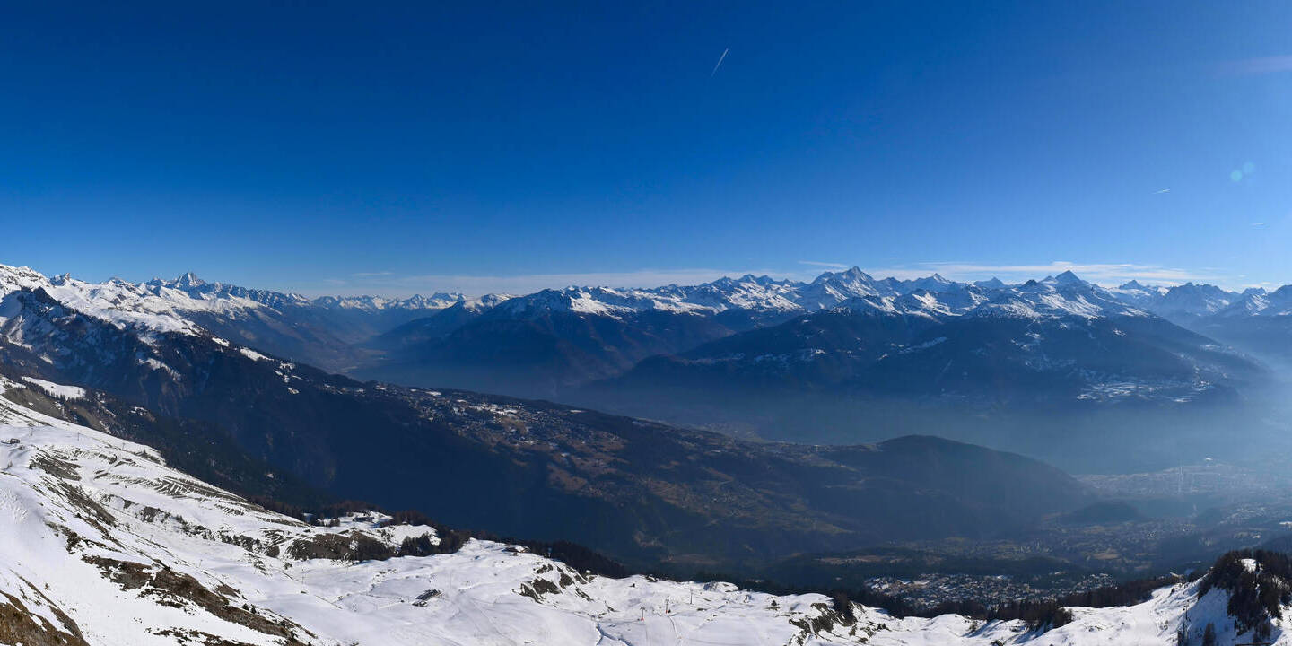 Crans-Montana, Schweiz - 7.2 km von Grun: 360°-Panorama