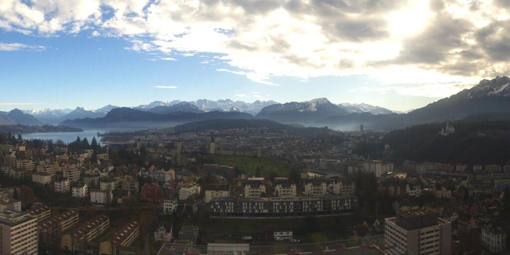 Lucerne, Schweiz - 13.5 km von Hochdorf: 340°-Panorama Vierwaldstättersee