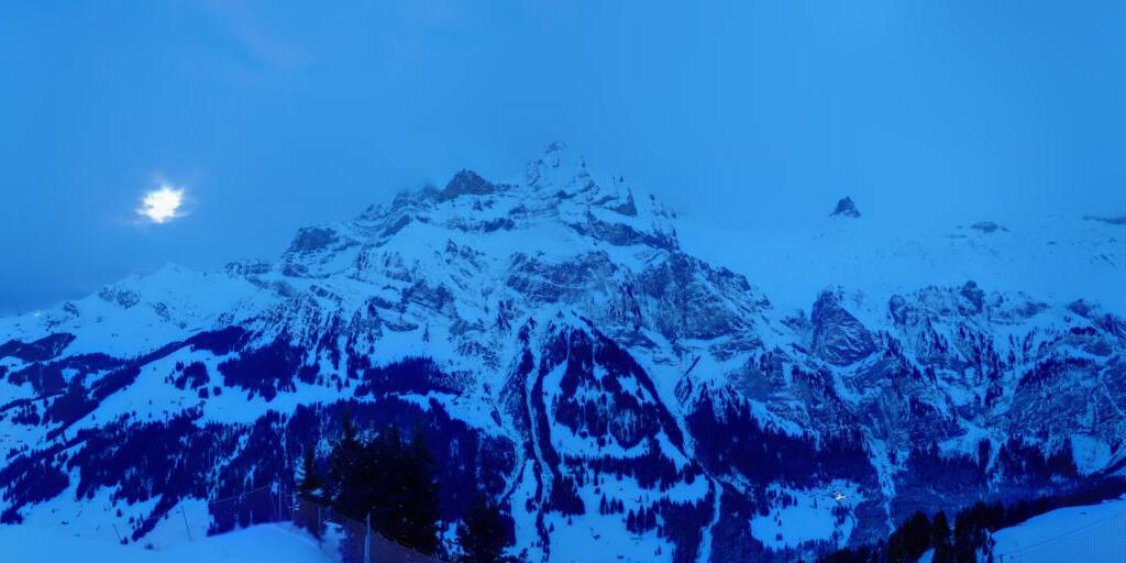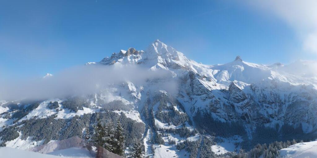 Adelboden, Schweiz - 10.2 km von Kendergrund: 270°-Panorama Höchstbahn - Adelboden - Lenk Bergbahnen