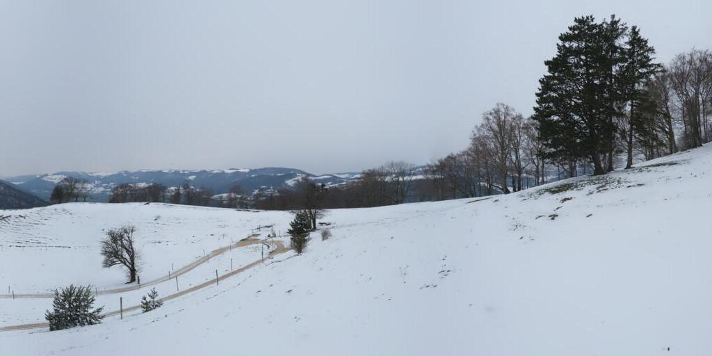 Laupersdorf, Schweiz - 7.8 km von La Scheulte: Blick Richtung Weissenstein / Jura - Blick von der Vorstadtstrasse 648 in Laupersdorf Richtung Matzendorf, Aedermannsdorf, Herbertswil und Welschenrohr. Links im Bild sind Rüttelhorn (1192 m), Chamben (1251 m), Röti (1395 m) und Weissenstein (1303 m) zu sehen.