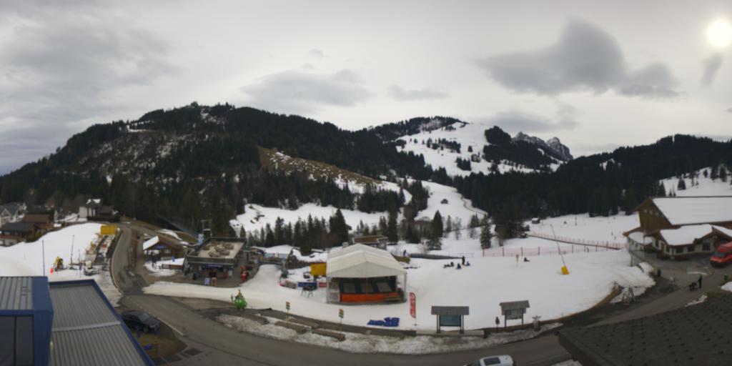Horgen, Schweiz - 8.6 km von Menzingen: Nördicher Himmel über dem linken Zürichseeufer - Webcam der Gleitschirm-Flugschule Magiclift zeigt zum Bisenstartplatz in Oberrieden.