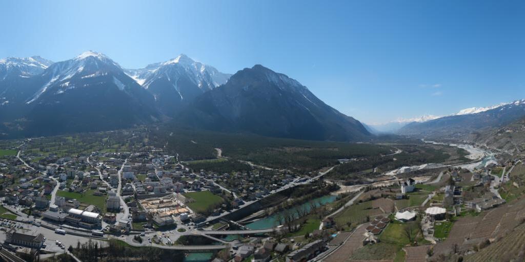 Oberems, Schweiz - 9.3 km von Oberems: 360°-Panorama Turtmann Damm